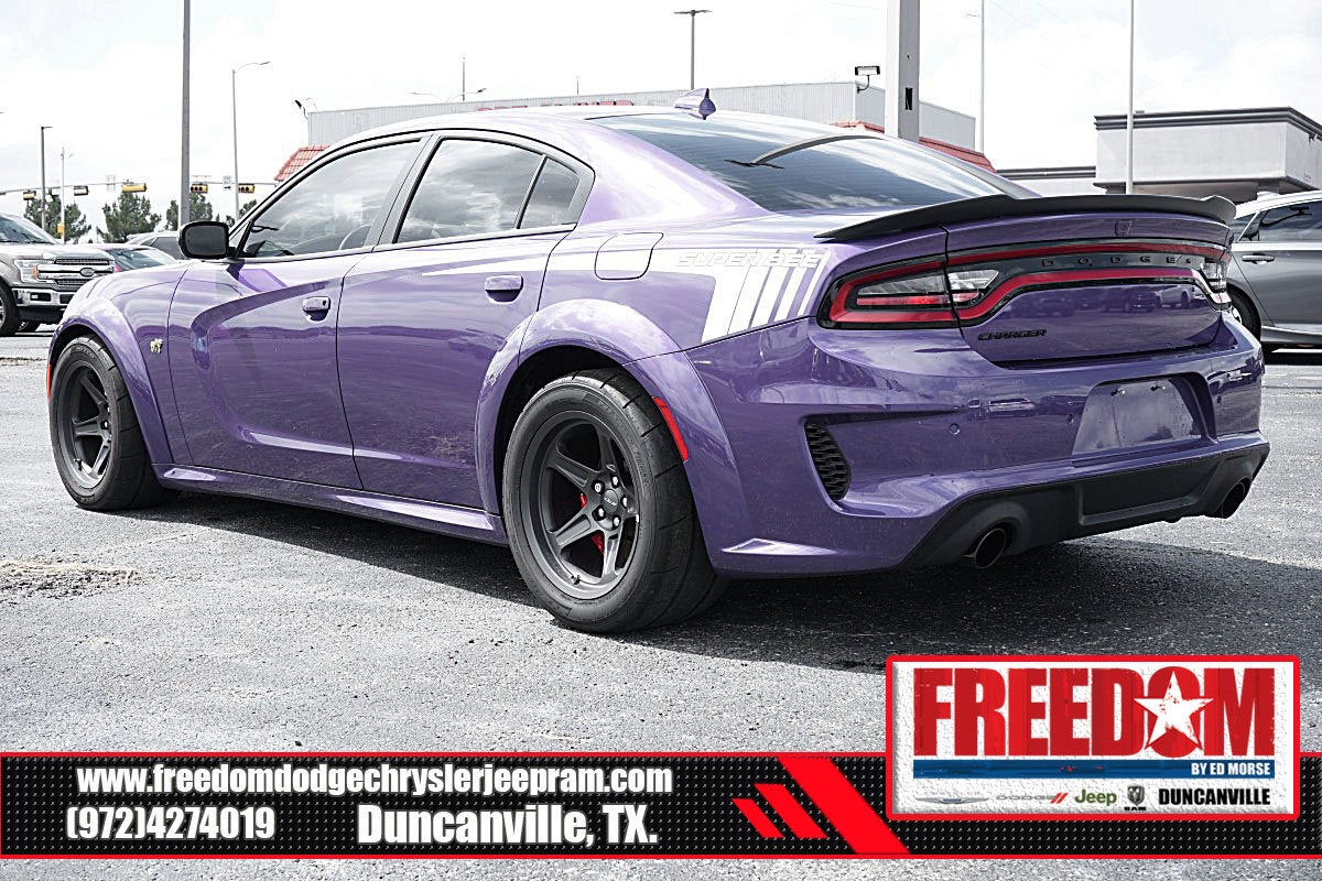 Big cash and no payments for 90 days! Our only Dealership add is GREAT CUSTOMER SERVICE. Real Deals, No Games and No Surprises. Price Includes only Rebates EVERYONE Qualifies for. We Make it Easy No Games. Equipped with Carbon/Suede Interior Package (Real Carbon Fiber Interior Accents and Suede Headliner), Navigation & Travel Group (1-Yr SiriusXM Guardian Trial, 2-Piece Shark Fin Antenna, 4G LTE Wi-Fi Hot Spot, 5-Year SiriusXM Traffic Service, 5-Year SiriusXM Travel Link Service, 8.4 Touchscreen Display, Apple CarPlay, Compass Gauge, For Details, Visit DriveUconnect.com, Google Android Auto, GPS Antenna Input, GPS Navigation, HD Radio, Integrated Center Stack Radio, Integrated Voice Command w/Bluetooth®, Media Hub (2 USB, AUX), Radio: Uconnect 4C Nav w/8.4 Display, SiriusXM Traffic Plus, SiriusXM Travel Link, and USB Host Flip), Plus Group (Auto Adjust In Reverse Exterior Mirrors, Auto-Dimming Exterior Driver Mirror, Black-Edged Premium Floormats, Blind Spot & Cross Path Detection, Blind Spot Memory/Power/Heat Mirror, Driver & Passenger Lower LED Lamps, Exterior Mirrors Courtesy Lamps, Exterior Mirrors w/Heating Element, Front Overhead LED Lighting, Heated Front Seats, Power 2-Way Driver Lumbar Adjust, Power 2-Way Passenger Lumbar Adjust, Power Front Driver/Passenger Seats, Power Tilt/Telescope Steering Column, Premium-Stitched Dash Panel, Radio/Driver Seat/Mirrors Memory, Rear Armrest w/Cupholder Seat, Scat Pack Logo Nappa/Alcantara Seat, and Ventilated Front Seats), Quick Order Package 21V Scat Pack Widebody (All Speed Traction Control, Body Color Fender Flares, Brembo 6-Pot Fixed Front Caliper Brakes, Flat-Bottom Steering Wheel, Performance Shift Indicator, Wheels: 20 x 11 Carbon Black Aluminum, and Widebody Competition Suspension), Super Bee Special Edition (Black Charger Exhaust Tips, Brake Calipers - Red, Drag Mode Suspension, MOPAR Black Hood Pin Kit, Nitto Brand Tires, Rhombi 2-Pc Wheel Center Cap, Satin Black Dodge Tail Lamp Badge, SRT Hood-Single Scoop w/Air Intake, Super Bee Badges, Super Bee Exterior Graphics, Super Bee I/P Badge, Super Bee Nappa/Alcantara Seats, and Wheels: 18 x 11 Aluminum), Technology Group (Adaptive Cruise Control w/Stop, Advanced Brake Assist, Auto High Beam Headlamp Control, Full Speed FWD Collision Warn Plus, Lane Departure Warning Plus, and Rain Sensitive Windshield Wipers), Widebody Package, Black, 4-Wheel Disc Brakes, 6 Speakers, ABS brakes, Adaptive Damping Suspension (DISC), Air Conditioning, Alloy wheels, AM/FM radio: SiriusXM, Anti-whiplash front head restraints, Apple CarPlay/Android Auto, Auto-dimming Rear-View mirror, Automatic temperature control, Brake assist, Bumpers: body-color, Cloth Performance Seats w/Heat, Compass, Delay-off headlights, Driver door bin, Driver vanity mirror, Dual front impact airbags, Dual front side impact airbags, Electronic Stability Control, Emergency communication system: SiriusXM Guardian, Four wheel independent suspension, Front anti-roll bar, Front Bucket Seats, Front Center Armrest, Front dual zone A/C, Front fog lights, Front License Plate Bracket, Front reading lights, Fully automatic headlights, Garage door transmitter: HomeLink, Heated door mirrors, Heated front seats, Heated steering wheel, Illuminated entry, Knee airbag, Leather Shift Knob, Low tire pressure warning, Occupant sensing airbag, Outside temperature display, Overhead airbag, Overhead console, Panic alarm, ParkView Rear Back-Up Camera, Passenger door bin, Passenger vanity mirror, Power door mirrors, Power driver seat, Power steering, Power windows, Radio: Uconnect 4C w/8.4 Display, Rear anti-roll bar, Rear reading lights, Rear seat center armrest, Rear window defroster, Remote keyless entry, Security system, Speed control, Speed-Sensitive Wipers, Split folding rear seat, Spoiler, Sport steering wheel, Steering wheel mounted audio controls, Tachometer, Telescoping steering
