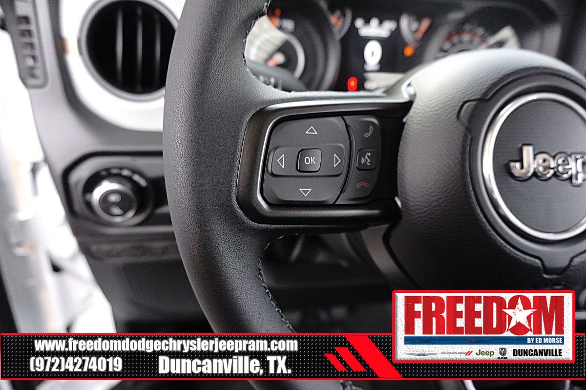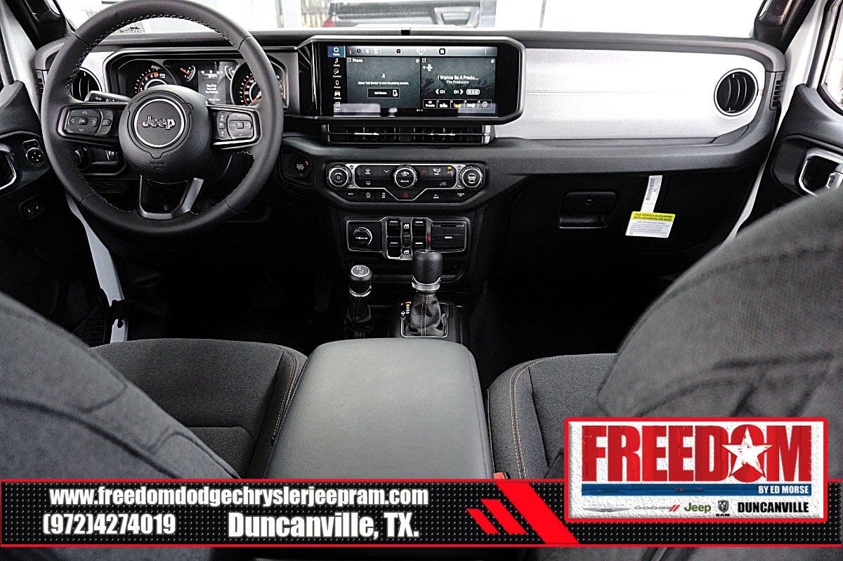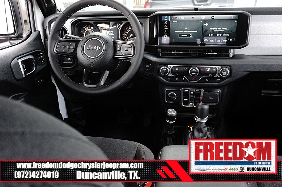 Big cash and no payments for 90 days! Our only Dealership add is GREAT CUSTOMER SERVICE. Real Deals, No Games and No Surprises. Price Includes only Rebates EVERYONE Qualifies for. We Make it Easy No Games. Equipped with Dark Sky Appearance Package (Body Color Fender Flares (2-Piece), Daytime Running Lamp System, Mold In Color Bumper w/Gloss Black, and Performance Hood), Quick Order Package 24S Sport S (Advanced Brake Assist, Automatic Headlamps, Deep Tint Sunscreen Windows, Enhanced Adaptive Cruise Control, Full Speed Forward Collision Warning Plus, Normal Duty Plus Suspension, Power Heated Mirrors, Premium Wrapped Steering Wheel, Security Alarm, Sun Visors w/Illuminated Vanity Mirrors, and Wheels: 17 x 7.5 Gray), 110 MPH Vehicle Max Speed Calibration, 12.3 Touchscreen Display, 3.73 Rear Axle Ratio, 4-Wheel Disc Brakes, 4G LTE Wi-Fi Hot Spot, 8 Speakers, ABS brakes, Air Conditioning, Alexa Built-In, AM/FM radio: SiriusXM, Apple CarPlay, Apple CarPlay/Android Auto, Body Color 3-Piece Hard Top, Brake assist, Cloth Low-Back Bucket Seats, Compass, Connectivity - US/Canada, Delay-off headlights, Driver door bin, Driver vanity mirror, Dual front impact airbags, Dual front side impact airbags, Electronic Stability Control, Freedom Panel Storage Bag, Front anti-roll bar, Front Bucket Seats, Front Center Armrest w/Storage, Front fog lights, Front License Plate Bracket, Front reading lights, Google Android Auto, Illuminated entry, Integrated roll-over protection, Low tire pressure warning, Manufacturer's Statement of Origin, MOPAR All-Weather Slush Mats, Normal Duty Suspension, Occupant sensing airbag, Outside temperature display, Overhead airbag, Panic alarm, ParkView Rear Back-Up Camera, Passenger door bin, Passenger vanity mirror, Power steering, Power windows, Radio data system, Radio: Uconnect 5 w/12.3 Display, Rear anti-roll bar, Rear reading lights, Rear Sliding Window, Rear Window Defroster, Remote keyless entry, Speed control, Split folding rear seat, Steering wheel mounted audio controls, Tachometer, Telescoping steering wheel, Tilt steering wheel, Traction control, Trip computer, USB Host Flip, Variably intermittent wipers, Voltmeter, and Wheels: 17 x 7.5 Black Steel Styled Freedom uses very reasonable effort to ensure the accuracy of information, we are not responsible for any errors or omissions contained on these pages. Please verify any information in question with Freedom Chrysler Dodge Jeep Ram * Images, prices, and options shown, including vehicle color, trim, options, pricing and other specifications are subject to availability, incentive offerings, current pricing and credit worthiness. * MSRP is the Manufacturer's Suggested Retail Price (MSRP) of the vehicle. It does not include any taxes, fees or other charges. Pricing and availability may vary based on a variety of factors, including options, dealer, specials, fees, and financing qualifications. Consult your dealer for actual price and complete details. Vehicles shown may have optional equipment at an additional cost. * The estimated selling price that appears after calculating dealer offers is for informational purposes, only. You may not qualify for the offers, incentives, discounts, or financing. Not all rebates are compatible with each other. Offers, incentives, discounts, or financing are subject to expiration and other restrictions. See dealer for qualifications and complete details. * In transit means that vehicles have been built but have not yet arrived at your dealer. Images shown may not necessarily represent identical vehicles in transit to the dealership. See dealer for actual price, payments and complete details. EPA Estimates are only estimating. Tax, title, license (unless itemized above) are extra. Not available with special finance, Price includes: $2250 - 2025 National Retail Bonus Cash . Exp. 02/02/2026 $500 - 2025 National 2025 Military Bonus Cash. Exp. 01/0