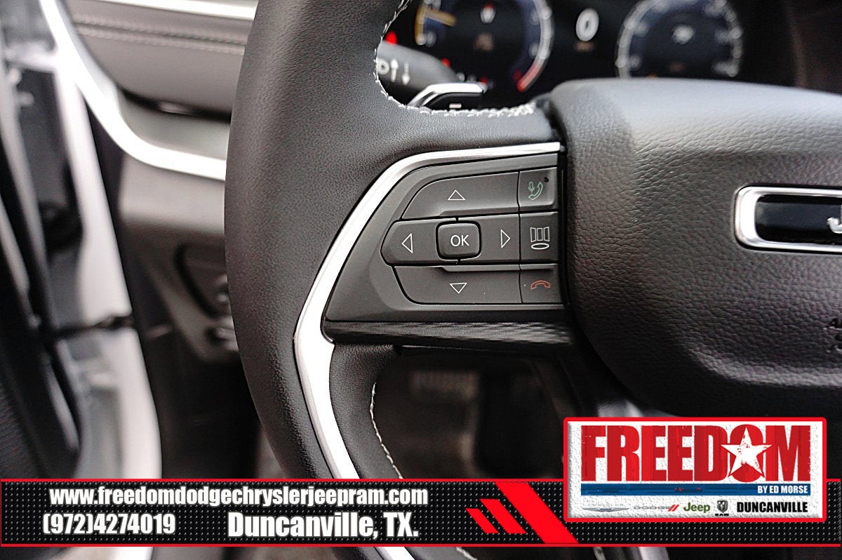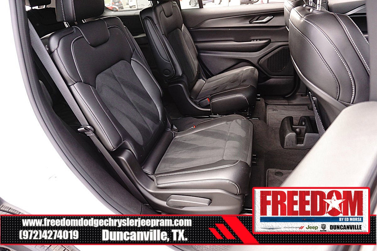 Big cash and no payments for 90 days! Our only Dealership add is GREAT CUSTOMER SERVICE. Real Deals, No Games and No Surprises. Price Includes only Rebates EVERYONE Qualifies for. We Make it Easy No Games. Equipped with Quick Order Package 23M Altitude X (115V Auxiliary Power Outlet, 3rd Row Charge-Only USB Ports, Altitude X, Black Headliner, Capri Leatherette/Suede Seats, Delete Laredo Badge, Gloss Black Exterior Accents, Heated Front Seats, Heated Steering Wheel, Power Liftgate, Power Sunroof, Rain Sensitive Windshield Wipers, Remote Start System, Selectable Tire Fill Alert, Wheels: 18 x 8.0 Fully Painted Aluminum 1, and Wireless Charging Pad), 3.45 Rear Axle Ratio, 3rd row seats: split-bench, 4-Wheel Disc Brakes, 6 Speakers, ABS brakes, Air Conditioning, Alloy wheels, AM/FM radio: SiriusXM, Anti-whiplash front head restraints, Automatic temperature control, Brake assist, Bumpers: body-color, Cloth Seats, Compass, Delay-off headlights, Driver door bin, Driver vanity mirror, Dual front impact airbags, Dual front side impact airbags, Electronic Stability Control, Emergency communication system, Four wheel independent suspension, Front anti-roll bar, Front Bucket Seats, Front Center Armrest w/Storage, Front dual zone A/C, Front License Plate Bracket, Front reading lights, Fully automatic headlights, Heated door mirrors, Illuminated entry, Knee airbag, Low tire pressure warning, Manual Fold Seatbacks, Model Year Tracking, Normal Duty Suspension, Occupant sensing airbag, Outside temperature display, Overhead airbag, Overhead console, Panic alarm, ParkView Rear Back-Up Camera, Passenger door bin, Passenger vanity mirror, Power door mirrors, Power driver seat, Power steering, Power windows, Radio data system, Radio: Uconnect 5 w/8.4 Display, Rear air conditioning, Rear anti-roll bar, Rear reading lights, Rear window defroster, Rear window wiper, Reclining 3rd row seat, Remote keyless entry, Security system, Speed control, Speed-Sensitive Wipers, Split folding rear seat, Spoiler, Steering wheel mounted audio controls, Tachometer, Telescoping steering wheel, Tilt steering wheel, Traction control, Trip computer, Variably intermittent wipers, Voltmeter, and Wheels: 18 x 8.0 Fully Painted Aluminum Freedom uses very reasonable effort to ensure the accuracy of information, we are not responsible for any errors or omissions contained on these pages. Please verify any information in question with Freedom Chrysler Dodge Jeep Ram * Images, prices, and options shown, including vehicle color, trim, options, pricing and other specifications are subject to availability, incentive offerings, current pricing and credit worthiness. * MSRP is the Manufacturer's Suggested Retail Price (MSRP) of the vehicle. It does not include any taxes, fees or other charges. Pricing and availability may vary based on a variety of factors, including options, dealer, specials, fees, and financing qualifications. Consult your dealer for actual price and complete details. Vehicles shown may have optional equipment at an additional cost. * The estimated selling price that appears after calculating dealer offers is for informational purposes, only. You may not qualify for the offers, incentives, discounts, or financing. Not all rebates are compatible with each other. Offers, incentives, discounts, or financing are subject to expiration and other restrictions. See dealer for qualifications and complete details. * In transit means that vehicles have been built but have not yet arrived at your dealer. Images shown may not necessarily represent identical vehicles in transit to the dealership. See dealer for act Price includes: $1000 - 2025 National Stellantis Loyalty Bonus Cash . Exp. 03/31/2026 $2000 - 2025 National Bonus Cash . Exp. 03/31/2026 $2500 - 2025 National Retail Bonus Cash . Exp. 03/31/2026 $500 - 2025 National 2025 Military Bonus Cash. Exp