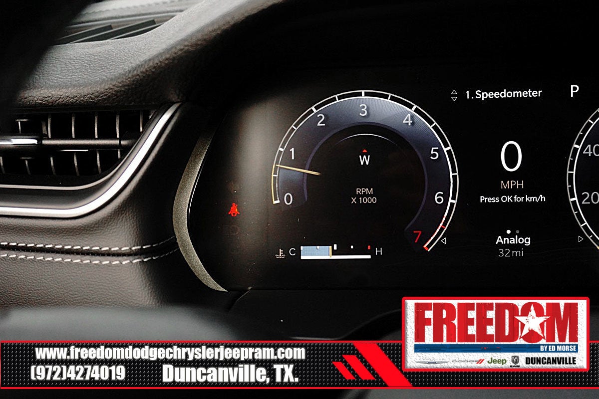 Big cash and no payments for 90 days! Our only Dealership add is GREAT CUSTOMER SERVICE. Real Deals, No Games and No Surprises. Price Includes only Rebates EVERYONE Qualifies for. We Make it Easy No Games. Equipped with Luxury Tech Group I (115V Auxiliary Power Outlet, 3rd Row Charge-Only USB Ports, Heated Front Seats, Heated Steering Wheel, Power Liftgate, Rain Sensitive Windshield Wipers, Remote Start System, Selectable Tire Fill Alert, and Wireless Charging Pad), Quick Order Package 23D Laredo X (Laredo X and Power Sunroof), 3.45 Rear Axle Ratio, 3rd row seats: split-bench, 4-Wheel Disc Brakes, 6 Speakers, ABS brakes, Air Conditioning, Alloy wheels, AM/FM radio: SiriusXM, Anti-whiplash front head restraints, Automatic temperature control, Brake assist, Bumpers: body-color, Cloth Seats, Compass, Delay-off headlights, Driver door bin, Driver vanity mirror, Dual front impact airbags, Dual front side impact airbags, Electronic Stability Control, Emergency communication system, Four wheel independent suspension, Front anti-roll bar, Front Bucket Seats, Front Center Armrest w/Storage, Front dual zone A/C, Front License Plate Bracket, Front reading lights, Fully automatic headlights, Heated door mirrors, Illuminated entry, Knee airbag, Low tire pressure warning, Manual Fold Seatbacks, Model Year Tracking, Normal Duty Suspension, Occupant sensing airbag, Outside temperature display, Overhead airbag, Overhead console, Panic alarm, ParkView Rear Back-Up Camera, Passenger door bin, Passenger vanity mirror, Power door mirrors, Power driver seat, Power steering, Power windows, Radio data system, Radio: Uconnect 5 w/8.4 Display, Rear air conditioning, Rear anti-roll bar, Rear reading lights, Rear window defroster, Rear window wiper, Reclining 3rd row seat, Remote keyless entry, Security system, Speed control, Speed-Sensitive Wipers, Split folding rear seat, Spoiler, Steering wheel mounted audio controls, Tachometer, Telescoping steering wheel, Tilt steering wheel, Traction control, Trip computer, Variably intermittent wipers, Voltmeter, and Wheels: 18 x 8.0 Fully Painted Aluminum Freedom uses very reasonable effort to ensure the accuracy of information, we are not responsible for any errors or omissions contained on these pages. Please verify any information in question with Freedom Chrysler Dodge Jeep Ram * Images, prices, and options shown, including vehicle color, trim, options, pricing and other specifications are subject to availability, incentive offerings, current pricing and credit worthiness. * MSRP is the Manufacturer's Suggested Retail Price (MSRP) of the vehicle. It does not include any taxes, fees or other charges. Pricing and availability may vary based on a variety of factors, including options, dealer, specials, fees, and financing qualifications. Consult your dealer for actual price and complete details. Vehicles shown may have optional equipment at an additional cost. * The estimated selling price that appears after calculating dealer offers is for informational purposes, only. You may not qualify for the offers, incentives, discounts, or financing. Not all rebates are compatible with each other. Offers, incentives, discounts, or financing are subject to expiration and other restrictions. See dealer for qualifications and complete details. * In transit means that vehicles have been built but have not yet arrived at your dealer. Images shown may not necessarily represent identical vehicles in transit to the dealership. See dealer for actual price, payments and complete details. EPA Estimates are only estimating. Tax, title, license (unless itemized above) are extra. Not available with special finance, lease and some other offers. Price includes: $1500 - 2025 National Stellantis Loyalty Retail Bonus Cash . Exp. 02/02/2026 $2500 - 2025 National Retail Bonus Cash . Exp. 02/02/2026