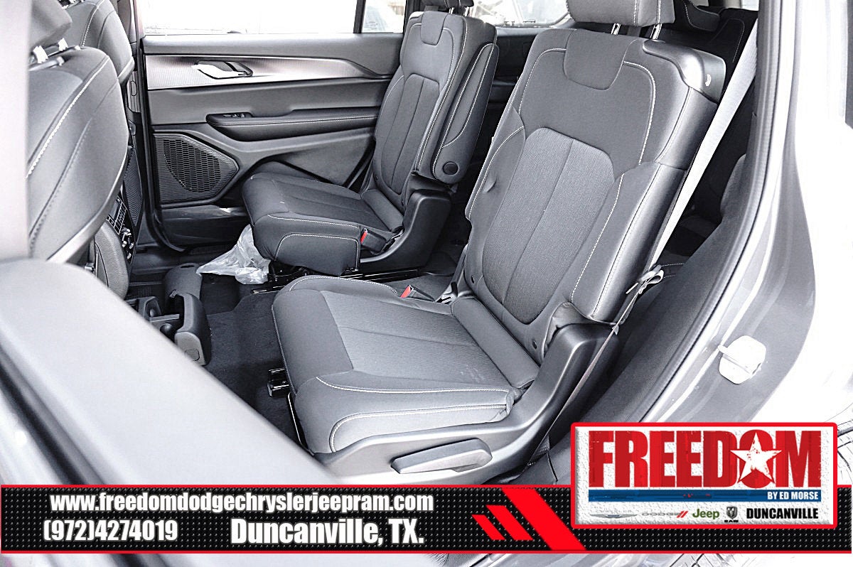 Big cash and no payments for 90 days! Our only Dealership add is GREAT CUSTOMER SERVICE. Real Deals, No Games and No Surprises. Price Includes only Rebates EVERYONE Qualifies for. We Make it Easy No Games. Equipped with Quick Order Package 23D Laredo X (Laredo X and Power Sunroof), 3.45 Rear Axle Ratio, 3rd row seats: split-bench, 4-Wheel Disc Brakes, 6 Speakers, ABS brakes, Air Conditioning, Alloy wheels, AM/FM radio: SiriusXM, Anti-whiplash front head restraints, Automatic temperature control, Brake assist, Bumpers: body-color, Cloth Seats, Compass, Delay-off headlights, Driver door bin, Driver vanity mirror, Dual front impact airbags, Dual front side impact airbags, Electronic Stability Control, Emergency communication system, Four wheel independent suspension, Front anti-roll bar, Front Bucket Seats, Front Center Armrest w/Storage, Front dual zone A/C, Front License Plate Bracket, Front reading lights, Fully automatic headlights, Heated door mirrors, Illuminated entry, Knee airbag, Low tire pressure warning, Manual Fold Seatbacks, Model Year Tracking, Normal Duty Suspension, Occupant sensing airbag, Outside temperature display, Overhead airbag, Overhead console, Panic alarm, ParkView Rear Back-Up Camera, Passenger door bin, Passenger vanity mirror, Power door mirrors, Power driver seat, Power steering, Power windows, Radio data system, Radio: Uconnect 5 w/8.4 Display, Rear air conditioning, Rear anti-roll bar, Rear reading lights, Rear window defroster, Rear window wiper, Reclining 3rd row seat, Remote keyless entry, Security system, Speed control, Speed-Sensitive Wipers, Split folding rear seat, Spoiler, Steering wheel mounted audio controls, Tachometer, Telescoping steering wheel, Tilt steering wheel, Traction control, Trip computer, Variably intermittent wipers, Voltmeter, and Wheels: 18 x 8.0 Fully Painted Aluminum Freedom uses very reasonable effort to ensure the accuracy of information, we are not responsible for any errors or omissions contained on these pages. Please verify any information in question with Freedom Chrysler Dodge Jeep Ram * Images, prices, and options shown, including vehicle color, trim, options, pricing and other specifications are subject to availability, incentive offerings, current pricing and credit worthiness. * MSRP is the Manufacturer's Suggested Retail Price (MSRP) of the vehicle. It does not include any taxes, fees or other charges. Pricing and availability may vary based on a variety of factors, including options, dealer, specials, fees, and financing qualifications. Consult your dealer for actual price and complete details. Vehicles shown may have optional equipment at an additional cost. * The estimated selling price that appears after calculating dealer offers is for informational purposes, only. You may not qualify for the offers, incentives, discounts, or financing. Not all rebates are compatible with each other. Offers, incentives, discounts, or financing are subject to expiration and other restrictions. See dealer for qualifications and complete details. * In transit means that vehicles have been built but have not yet arrived at your dealer. Images shown may not necessarily represent identical vehicles in transit to the dealership. See dealer for actual price, payments and complete details. EPA Estimates are only estimating. Tax, title, license (unless itemized above) are extra. Not available with special finance, lease and some other offers. Price includes: $1500 - 2025 National Stellantis Loyalty Retail Bonus Cash . Exp. 02/02/2026 $2500 - 2025 National Retail Bonus Cash . Exp. 02/02/2026