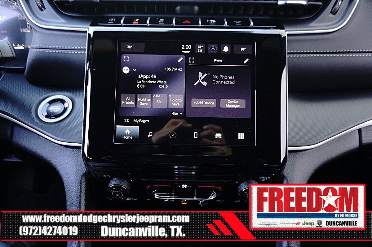 Big cash and no payments for 90 days! Our only Dealership add is GREAT CUSTOMER SERVICE. Real Deals, No Games and No Surprises. Price Includes only Rebates EVERYONE Qualifies for. We Make it Easy No Games. Equipped with Quick Order Package 23D Laredo X (Laredo X, Power Sunroof, and Wheels: 18 x 8 Fully Painted Aluminum), 4-Wheel Disc Brakes, 6 Speakers, ABS brakes, Air Conditioning, Alloy wheels, AM/FM radio: SiriusXM, Anti-whiplash front head restraints, Automatic temperature control, Brake assist, Bumpers: body-color, Cloth Seats, Compass, Delay-off headlights, Driver door bin, Driver vanity mirror, Dual front impact airbags, Dual front side impact airbags, Electronic Stability Control, Emergency communication system, Four wheel independent suspension, Front anti-roll bar, Front Bucket Seats, Front Center Armrest w/Storage, Front dual zone A/C, Front License Plate Bracket, Front reading lights, Fully automatic headlights, Heated door mirrors, Illuminated entry, Knee airbag, Low tire pressure warning, Model Year Tracking, Normal Duty Suspension, Occupant sensing airbag, Outside temperature display, Overhead airbag, Overhead console, Panic alarm, ParkView Rear Back-Up Camera, Passenger door bin, Passenger vanity mirror, Power door mirrors, Power driver seat, Power steering, Power windows, Radio data system, Radio: Uconnect 5 with 8.4 Display, Rear anti-roll bar, Rear reading lights, Rear window defroster, Rear window wiper, Remote keyless entry, Security system, Speed control, Speed-Sensitive Wipers, Split folding rear seat, Spoiler, Steering wheel mounted audio controls, Tachometer, Telescoping steering wheel, Tilt steering wheel, Traction control, Trip computer, Variably intermittent wipers, Voltmeter, and Wheels: 17 x 6.5 Fully Painted Aluminum Freedom uses very reasonable effort to ensure the accuracy of information, we are not responsible for any errors or omissions contained on these pages. Please verify any information in question with Freedom Chrysler Dodge Jeep Ram * Images, prices, and options shown, including vehicle color, trim, options, pricing and other specifications are subject to availability, incentive offerings, current pricing and credit worthiness. * MSRP is the Manufacturer's Suggested Retail Price (MSRP) of the vehicle. It does not include any taxes, fees or other charges. Pricing and availability may vary based on a variety of factors, including options, dealer, specials, fees, and financing qualifications. Consult your dealer for actual price and complete details. Vehicles shown may have optional equipment at an additional cost. * The estimated selling price that appears after calculating dealer offers is for informational purposes, only. You may not qualify for the offers, incentives, discounts, or financing. Not all rebates are compatible with each other. Offers, incentives, discounts, or financing are subject to expiration and other restrictions. See dealer for qualifications and complete details. * In transit means that vehicles have been built but have not yet arrived at your dealer. Images shown may not necessarily represent identical vehicles in transit to the dealership. See dealer for actual price, payments and complete details. EPA Estimates are only estimating. Tax, title, license (unless itemized above) are extra. Not available with special finance, lease and some other offers. Price includes: $1000 - 2025 Southwest BC Retail Bonus Cash . Exp. 02/02/2026 $1500 - 2025 National Stellantis Loyalty Retail Bonus Cash . Exp. 02/02/2026 $2250 - 2025 National Retail Bonus Cash . Exp. 02/02/2026