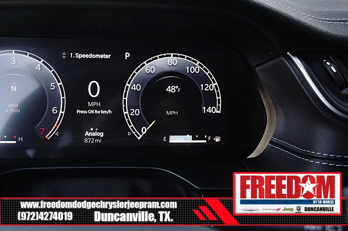 Big cash and no payments for 90 days! Our only Dealership add is GREAT CUSTOMER SERVICE. Real Deals, No Games and No Surprises. Price Includes only Rebates EVERYONE Qualifies for. We Make it Easy No Games. Equipped with Blackout Model (Black Painted Roof, Delete Limited Badge, Dual-Pane Panoramic Sunroof, Gloss Black Exterior Accents, and Wheels: 20 x 8.5 Black Painted Aluminum), Quick Order Package 23E, 4WD, 4-Wheel Disc Brakes, 6 Speakers, ABS brakes, Active Noise Control System, Air Conditioning, Alloy wheels, AM/FM radio: SiriusXM with 360L, Anti-whiplash front head restraints, Audio memory, Auto High-beam Headlights, Automatic temperature control, Brake assist, Bumpers: body-color, Capri Leatherette Seats, Compass, Delay-off headlights, Driver door bin, Driver vanity mirror, Dual front impact airbags, Dual front side impact airbags, Electronic Stability Control, Emergency communication system, Four wheel independent suspension, Front anti-roll bar, Front Bucket Seats, Front Center Armrest w/Storage, Front dual zone A/C, Front fog lights, Front License Plate Bracket, Front reading lights, Fully automatic headlights, Garage door transmitter, Heated door mirrors, Heated front seats, Heated rear seats, Heated steering wheel, Illuminated entry, Knee airbag, Low tire pressure warning, Memory seat, Model Year Tracking, Navigation System, Normal Duty Suspension, Occupant sensing airbag, Outside temperature display, Overhead airbag, Overhead console, Panic alarm, ParkView Rear Back-Up Camera, Passenger door bin, Passenger vanity mirror, Power door mirrors, Power driver seat, Power Liftgate, Power passenger seat, Power steering, Power windows, Radio data system, Radio: Uconnect 5 Nav with 10.1 Display, Rear anti-roll bar, Rear reading lights, Rear window defroster, Rear window wiper, Remote keyless entry, Security system, Speed control, Speed-Sensitive Wipers, Split folding rear seat, Spoiler, Steering wheel mounted audio controls, Tachometer, Telescoping steering wheel, Tilt steering wheel, Traction control, Trip computer, Turn signal indicator mirrors, Variably intermittent wipers, Voltmeter, and Wheels: 18 x 8 Polished/Painted Aluminum Freedom uses very reasonable effort to ensure the accuracy of information, we are not responsible for any errors or omissions contained on these pages. Please verify any information in question with Freedom Chrysler Dodge Jeep Ram * Images, prices, and options shown, including vehicle color, trim, options, pricing and other specifications are subject to availability, incentive offerings, current pricing and credit worthiness. * MSRP is the Manufacturer's Suggested Retail Price (MSRP) of the vehicle. It does not include any taxes, fees or other charges. Pricing and availability may vary based on a variety of factors, including options, dealer, specials, fees, and financing qualifications. Consult your dealer for actual price and complete details. Vehicles shown may have optional equipment at an additional cost. * The estimated selling price that appears after calculating dealer offers is for informational purposes, only. You may not qualify for the offers, incentives, discounts, or financing. Not all rebates are compatible with each other. Offers, incentives, discounts, or financing are subject to expiration and other restrictions. See dealer for qualifications and complete details. * In transit means that vehicles have been built but have not yet arrived at your dealer. Images shown may not necessarily represent identical v Price includes: $1000 - 2025 Southwest BC Regional Bonus Cash . Exp. 03/31/2026 $1000 - 2025 National Stellantis Loyalty Bonus Cash . Exp. 03/31/2026 $1000 - 2025 Southwest BC Bonus Cash . Exp. 03/31/2026 $2000 - 2025 National Bonus Cash . Exp. 03/31/2026 $2250 - 2025 National Retail Bonus Cash . Exp. 03/31/2026 $500 - 2025 National 2025 Military Bonus Cash. Exp