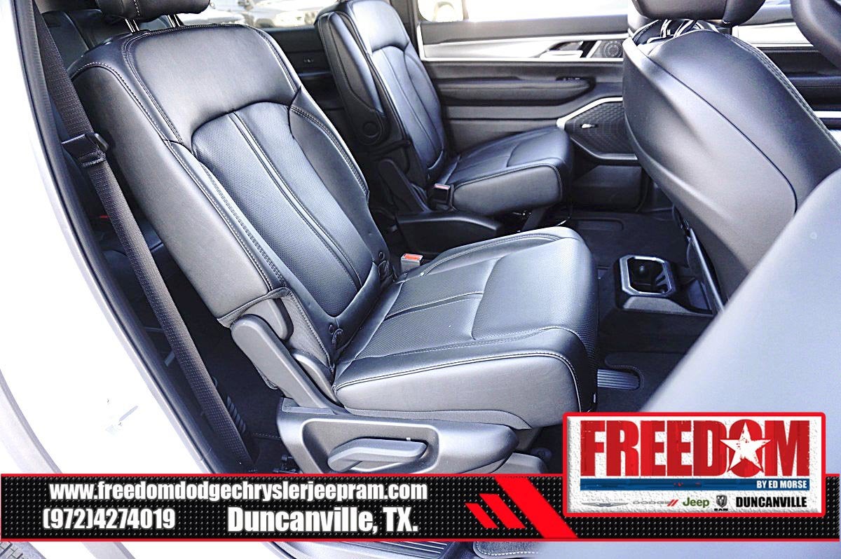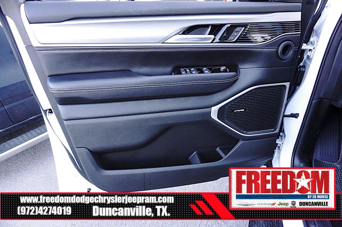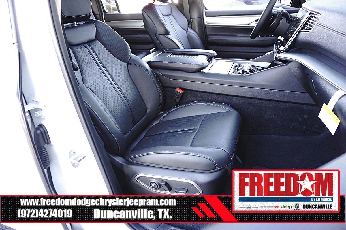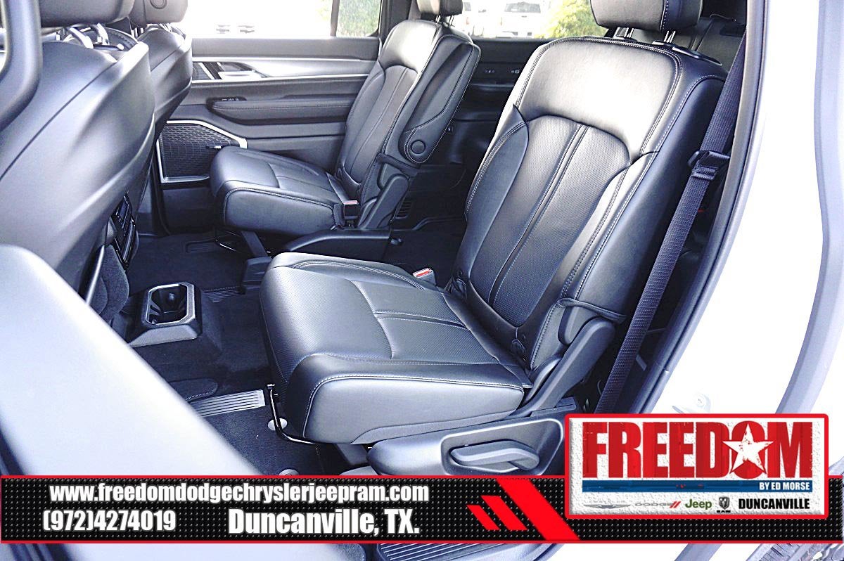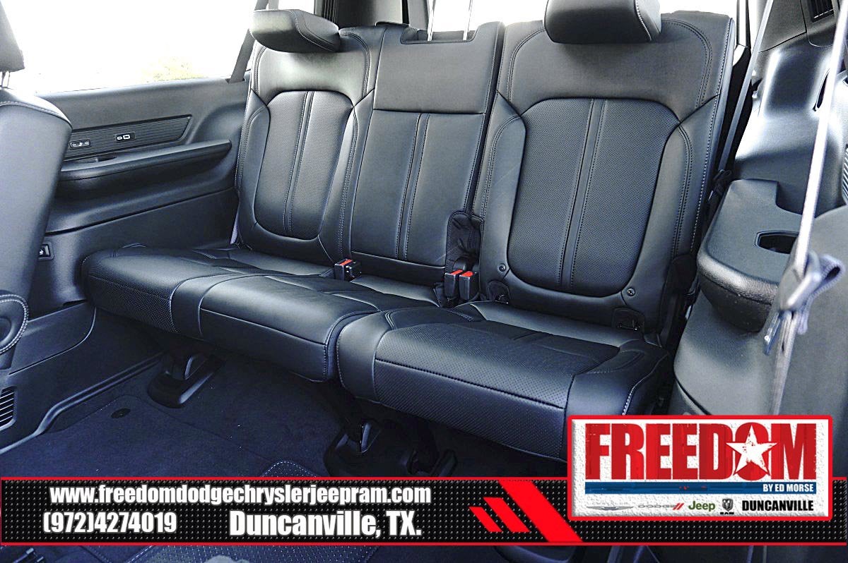 Big cash and no payments for 90 days! Our only Dealership add is GREAT CUSTOMER SERVICE. Real Deals, No Games and No Surprises. Price Includes only Rebates EVERYONE Qualifies for. We Make it Easy No Games. Equipped with Carbide Appearance Package, Premium Group I (118 MPH Maximum Speed Calibration, 3 Panel Sunroof, Adjustable Roof Rail Crossbars, and Reversible Carpet/Vinyl Cargo Mat), Quick Order Package 25F Carbide (Piano Black Exterior Accents and Wheels: 20 x 9.0 Aluminum Painted Gloss Black), 10 Speakers, 3.55 Rear Axle Ratio, 3rd row seats: bench, 4-Wheel Disc Brakes, ABS brakes, Air Conditioning, Alloy wheels, AM/FM radio: SiriusXM with 360L, Anti-whiplash front head restraints, Apple CarPlay/Android Auto, Audio memory, Auto Adjust In Reverse Exterior Mirrors, Auto-dimming door mirrors, Auto-Dimming Exterior Driver Mirror, Auto-dimming Rear-View mirror, Auto-leveling suspension, Automatic temperature control, Brake assist, Bumpers: body-color, Compass, Delay-off headlights, Driver door bin, Driver vanity mirror, Driver's Seat Mounted Armrest, Dual front impact airbags, Dual front side impact airbags, Electronic Stability Control, Emergency communication system: Jeep Connect, Exterior Mirrors Approach Lamps, Exterior Mirrors w/Memory, Exterior Mirrors w/Supplemental Signals, Four wheel independent suspension, Front anti-roll bar, Front Bucket Seats, Front Center Armrest w/Storage, Front dual zone A/C, Front fog lights, Front License Plate Bracket, Front reading lights, Fully automatic headlights, Garage door transmitter, Genuine wood console insert, Genuine wood dashboard insert, Genuine wood door panel insert, Heated door mirrors, Heated Exterior Mirrors, Heated front seats, Heated rear seats, Heated steering wheel, Illuminated entry, Knee airbag, Leather Trimmed Bucket Seats, Low tire pressure warning, Memory seat, Navigation System, Normal Duty Suspension, Occupant sensing airbag, Outside temperature display, Overhead airbag, Overhead console, Panic alarm, ParkView Rear Back-Up Camera, Passenger door bin, Passenger seat mounted armrest, Passenger vanity mirror, Power adjustable front head restraints, Power door mirrors, Power driver seat, Power Liftgate, Power passenger seat, Power steering, Power windows, Radio data system, Radio: Uconnect 5 Nav w/10.1 Display, Rain sensing wipers, Rear air conditioning, Rear anti-roll bar, Rear reading lights, Rear seat center armrest, Rear window defroster, Rear window wiper, Reclining 3rd row seat, Remote keyless entry, Security system, Speed control, Speed-sensing steering, Speed-Sensitive Wipers, Split folding rear seat, Steering wheel memory, Steering wheel mounted audio controls, Tachometer, Telescoping steering wheel, Tilt steering wheel, Traction control, Trip computer, Turn signal indicator mirrors, Variably intermittent wipers, Ventilated front seats, Voltmeter, Wheels: 20 x 9.0 Premium 2 Aluminum, and Wheels: 22 x 9.0 Painted Gloss Black Freedom uses very reasonable effort to ensure the accuracy of information, we are not responsible for any errors or omissions contained on these pages. Please verify any information in question with Freedom Chrysler Dodge Jeep Ram * Images, prices, and options shown, including vehicle color, trim, options, pricing and other specifications are subject to availability, incentive offerings, current pricing and credit worthiness. * MSRP is the Manufacturer's Suggested Retail Price (MSRP) of the vehicle. It does not include any taxes, fees or other charges. Pricing and availability may vary based on a variety of factors, including options, dealer, specials, fees, and financing qualifications. Consult your dealer for actual price and complete details. Vehicles shown Price includes: $1000 - 2025 National Stellantis Loyalty Bonus Cash . Exp. 03/31/2026 $2000 - 2025 National Bonus Cash . Exp. 03/31/2026 $500 - 2025 National 2025 Military Bonus Cash. Exp. 01/0