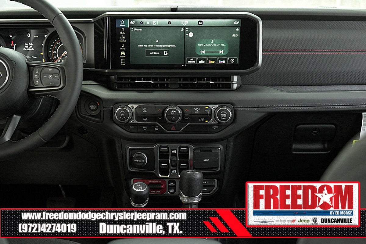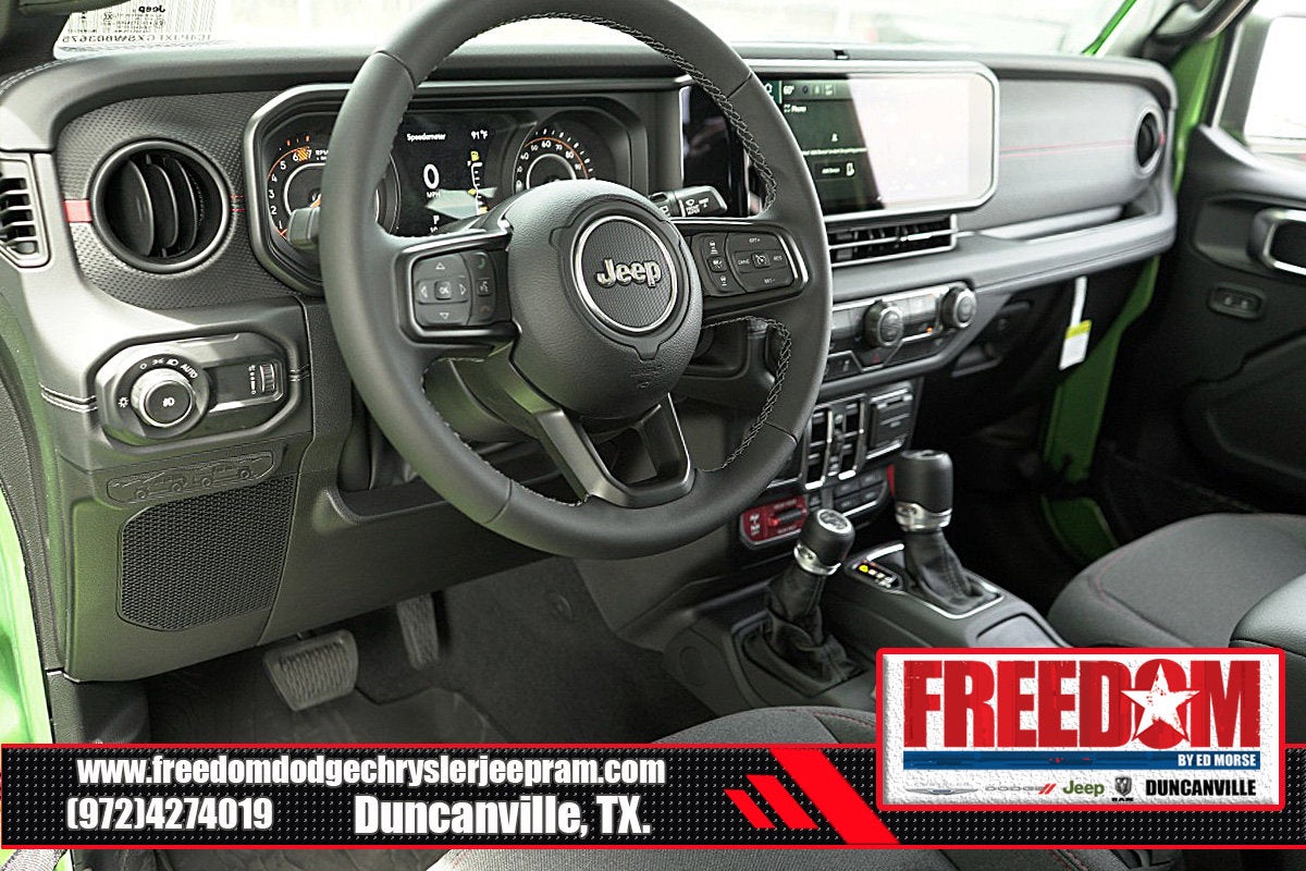 Big cash and no payments for 90 days! Our only Dealership add is GREAT CUSTOMER SERVICE. Real Deals, No Games and No Surprises. Price Includes only Rebates EVERYONE Qualifies for. We Make it Easy No Games. Equipped with Quick Order Package 24R Rubicon, 4-Wheel Disc Brakes, 4.10 Rear Axle Ratio, 4G LTE Wi-Fi Hot Spot, 8 Speakers, 97 MPH Vehicle Max Speed Calibration, ABS brakes, Air Conditioning, Alloy wheels, AM/FM radio: SiriusXM, Apple CarPlay, Apple CarPlay/Android Auto, Automatic temperature control, Aux Battery, Auxiliary Switches, Body Color 3-Piece Hard Top, Brake assist, Class II Receiver Hitch, Cloth Low-Back Bucket Seats, Compass, Connectivity - US/Canada, Delay-off headlights, Driver door bin, Driver vanity mirror, Dual front impact airbags, Dual front side impact airbags, Electronic Stability Control, Emergency communication system: Jeep Connect, Freedom Panel Storage Bag, Front anti-roll bar, Front Bucket Seats, Front Center Armrest w/Storage, Front dual zone A/C, Front fog lights, Front License Plate Bracket (DISC), Front reading lights, Fully automatic headlights, Google Android Auto, Heated door mirrors, Illuminated entry, Integrated roll-over protection, Low tire pressure warning, MOPAR All-Weather Floor Mats, Non-Lock Fuel Cap w/o Discriminator, Occupant sensing airbag, Outside temperature display, Overhead airbag, Panic alarm, ParkView Rear Back-Up Camera, Passenger door bin, Passenger vanity mirror, Performance Suspension, Power door mirrors, Power steering, Power windows, Radio data system, Radio: Uconnect 5 w/12.3 Display, Rear anti-roll bar, Rear reading lights, Rear Window Defroster, Rear Window Wiper/Washer, Remote keyless entry, Security system, Speed control, Split folding rear seat, Steering wheel mounted audio controls, Stop-Start Dual Battery System, Tachometer, Telescoping steering wheel, Tilt steering wheel, Traction control, Trip computer, Variably intermittent wipers, Voltmeter, and Wheels: 17 x 7.5 Machined/Painted Black Freedom uses very reasonable effort to ensure the accuracy of information, we are not responsible for any errors or omissions contained on these pages. Please verify any information in question with Freedom Chrysler Dodge Jeep Ram * Images, prices, and options shown, including vehicle color, trim, options, pricing and other specifications are subject to availability, incentive offerings, current pricing and credit worthiness. * MSRP is the Manufacturer's Suggested Retail Price (MSRP) of the vehicle. It does not include any taxes, fees or other charges. Pricing and availability may vary based on a variety of factors, including options, dealer, specials, fees, and financing qualifications. Consult your dealer for actual price and complete details. Vehicles shown may have optional equipment at an additional cost. * The estimated selling price that appears after calculating dealer offers is for informational purposes, only. You may not qualify for the offers, incentives, discounts, or financing. Not all rebates are compatible with each other. Offers, incentives, discounts, or financing are subject to expiration and other restrictions. See dealer for qualifications and complete details. * In transit means that vehicles have been built but have not yet arrived at your dealer. Images shown may not necessarily represent identical vehicles in transit to the dealership. See dealer for actual price, payments and complete details. EPA Estimates are only estimating. Tax, title, license (unless itemized above) are extra. Not available with special finance, lease and some other offers. Price includes: $1500 - 2025 National Bonus Cash . Exp. 02/02/2026 $1500 - 2025 National Stellantis Loyalty Retail Bonus Cash . Exp. 02/02/2026 $2500 - 2025 National Retail Bonus Cash . Exp. 02/02/2026
