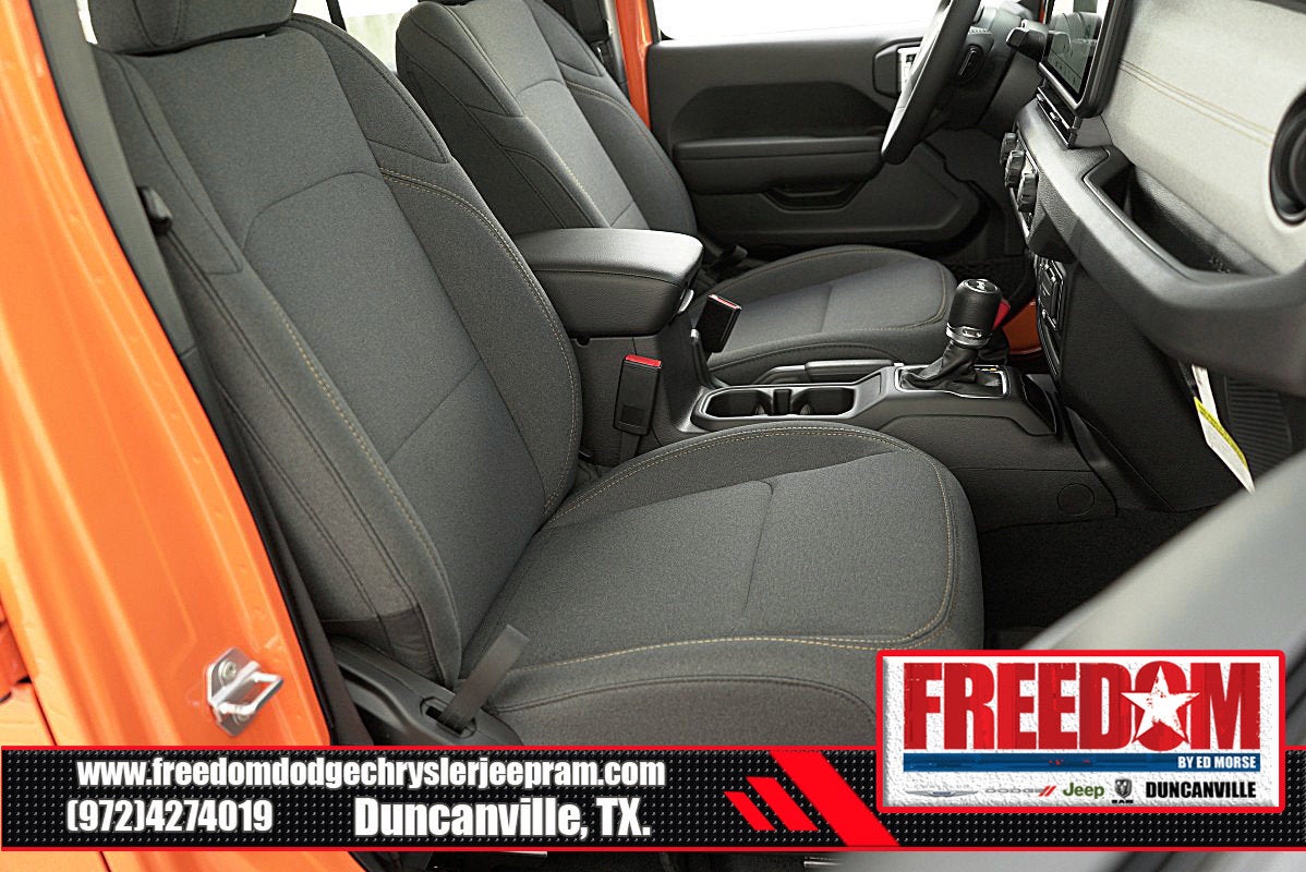 Big cash and no payments for 90 days! Our only Dealership add is GREAT CUSTOMER SERVICE. Real Deals, No Games and No Surprises. Price Includes only Rebates EVERYONE Qualifies for. We Make it Easy No Games. Equipped with Quick Order Package 24S Sport S (Advanced Brake Assist, Automatic Headlamps, Corning Gorilla Glass, Deep Tint Sunscreen Windows, Enhanced Adaptive Cruise Control, Full Speed Forward Collision Warning Plus, Power Heated Mirrors, Premium Wrapped Steering Wheel, Security Alarm, Sun Visors w/Illuminated Vanity Mirrors, and Wheels: 17 x 7.5 Gray), 110 MPH Vehicle Max Speed Calibration, 3.45 Overall Top Gear Ratio, 4-Wheel Disc Brakes, 8 Speakers, ABS brakes, Air Conditioning, AM/FM radio: SiriusXM, Apple CarPlay/Android Auto, Aux Battery, Black 3-Piece Hard Top, Brake assist, Cloth Low-Back Bucket Seats, Compass, Delay-off headlights, Driver door bin, Driver vanity mirror, Dual front impact airbags, Dual front side impact airbags, Electronic Stability Control, Freedom Panel Storage Bag, Front anti-roll bar, Front Bucket Seats, Front Center Armrest w/Storage, Front fog lights, Front reading lights, Illuminated entry, Integrated roll-over protection, Low tire pressure warning, MOPAR All-Weather Floor Mats, Non-Lock Fuel Cap w/o Discriminator, Normal Duty Suspension, Occupant sensing airbag, Outside temperature display, Overhead airbag, Panic alarm, ParkView Rear Back-Up Camera, Passenger door bin, Passenger vanity mirror, Power steering, Power windows, Radio data system, Radio: Uconnect 5 w/12.3 Display, Rear anti-roll bar, Rear reading lights, Rear Window Defroster, Rear Window Wiper/Washer, Remote keyless entry, Speed control, Split folding rear seat, Steering wheel mounted audio controls, Stop-Start Dual Battery System, Tachometer, Telescoping steering wheel, Tilt steering wheel, Traction control, Trip computer, Variably intermittent wipers, and Wheels: 17 x 7.5 Black Steel Styled Freedom uses very reasonable effort to ensure the accuracy of information, we are not responsible for any errors or omissions contained on these pages. Please verify any information in question with Freedom Chrysler Dodge Jeep Ram * Images, prices, and options shown, including vehicle color, trim, options, pricing and other specifications are subject to availability, incentive offerings, current pricing and credit worthiness. * MSRP is the Manufacturer's Suggested Retail Price (MSRP) of the vehicle. It does not include any taxes, fees or other charges. Pricing and availability may vary based on a variety of factors, including options, dealer, specials, fees, and financing qualifications. Consult your dealer for actual price and complete details. Vehicles shown may have optional equipment at an additional cost. * The estimated selling price that appears after calculating dealer offers is for informational purposes, only. You may not qualify for the offers, incentives, discounts, or financing. Not all rebates are compatible with each other. Offers, incentives, discounts, or financing are subject to expiration and other restrictions. See dealer for qualifications and complete details. * In transit means that vehicles have been built but have not yet arrived at your dealer. Images shown may not necessarily represent identical vehicles in transit to the dealership. See dealer for actual price, payments and complete details. EPA Estimates are only estimating. Tax, title, license (unless itemized above) are extra. Not available with special finance, lease and some other offers. Price includes: $1000 - 2025 Southwest BC Retail Bonus Cash . Exp. 02/02/2026 $1500 - 2025 National Bonus Cash . Exp. 02/02/2026 $1500 - 2025 National Stellantis Loyalty Retail Bonus Cash . Exp. 02/02/2026 $2000 - 2025 National Select Inventory Bonus Cash w/ 3FV . Exp. 02/02/2026 $2500 - 2025 National Retail Bonus Cash . Exp. 02/02/2026