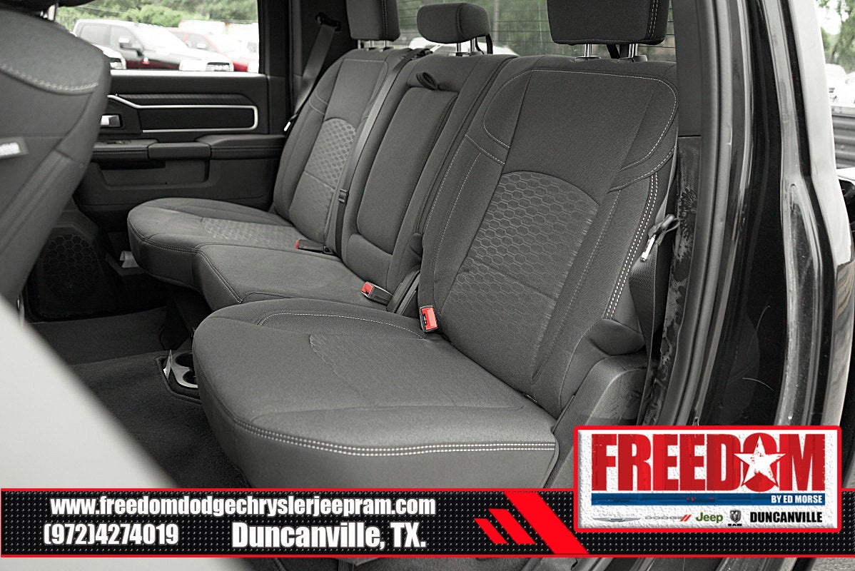 Big cash and no payments for 90 days! Our only Dealership add is GREAT CUSTOMER SERVICE. Real Deals, No Games and No Surprises. Price Includes only Rebates EVERYONE Qualifies for. We Make it Easy No Games. Equipped with Big Horn Level 1 Plus Equipment Group (12 Touchscreen Display, 2 Way Rear Headrest Seat, 2nd Row In Floor Storage Bins, 4 Way Front Headrests, 40/20/40 Split Bench Seat, 4G LTE Wi-Fi Hot Spot, 9 Alpine Speakers w/Subwoofer, Air Conditioning ATC w/Dual Zone Control, Alexa Built-In, Anti-Spin Differential Rear Axle, Apple CarPlay, Auto Power-Folding Mirrors, Auto-Dimming Rear-View Mirror, Black Exterior Mirrors, Connected Travel & Traffic Services, Connectivity - US/Canada, Dual Glove Boxes, Emergency Vehicle Alert System (EVAS), Exterior Mirrors Courtesy Lamps, Exterior Mirrors w/Heating Element, Exterior Mirrors w/Supplemental Signals, Foam Bottle Insert (Door Trim Panel), Folding Flat Load Floor Storage, Footwell Courtesy Lamp, Forward & Reverse Utility Lights, Front Armrest w/Cupholders, Front Center Seat Cushion Storage, Front Seat Back Map Pockets, Global Telematics Box Module (TBM), Glove Box Lamp, Google Android Auto, GPS Antenna Input, GPS Navigation, HD Radio, Integrated Voice Command w/Bluetooth®, LED Bed Lighting, Locking Lower Glove Box, Luxury Steering Wheel, Manual Adjust 4-Way Front Passenger Seat, Mirror Running Lights, MOPAR Deployable Bed Step, MOPAR Spray In Bedliner, Off-Road Info Pages, Power 2-Way Driver Lumbar Adjust, Power Adjust 8-Way Driver Seat, Power Adjust Mirrors, Power Adjustable Convex Aux Mirrors, Power Heated Folding Telescopic Mirrors, Power Telescoping Mirrors, Premium Cloth 40/20/40 Bench Seat, Radio: Uconnect 5 Nav w/12.0 Display, Rear 60/40 Folding Seat, Rear Dome w/On/Off Switch Lamp, Remote Start System, Remote USB Port - Charge Only, Selectable Tire Fill Alert, SiriusXM Radio Service, SiriusXM w/360L, Steering Wheel Mounted Audio Controls, Storage Tray, and Trailer Tow Pages), Quick Order Package 24Y Lone Star (Regional) (Lone Star Badge), Sport Appearance Package (Black Interior Accents, Body Color Grille Surround, Painted Front Bumper, Painted Rear Bumper, and Sport Decal), 4-Wheel Disc Brakes, 6 Speakers, ABS brakes, Air Conditioning, Alloy wheels, AM/FM radio: SiriusXM, Apple CarPlay/Android Auto, Brake assist, Bumpers: chrome, Cloth 40/20/40 Bench Seat, Compass, Dash Pass Thru Wire Circuits, Delay-off headlights, Delete Deployable Bed Step (DISC), Driver door bin, Dual front impact airbags, Dual front side impact airbags, Electronic Stability Control, Engine Block Heater, Front anti-roll bar, Front Center Armrest w/Storage, Front fog lights, Front License Plate Bracket, Front reading lights, Fully automatic headlights, Heated door mirrors, I/P Mounted Auxiliary Switches, Illuminated entry, Low tire pressure warning, Manual Adjust 4-Way Driver Seat, Manufacturer's Statement of Origin, Occupant sensing airbag, Outside temperature display, Overhead airbag, Overhead console, Panic alarm, ParkView Rear Back-Up Camera, Passenger door bin, Passenger vanity mirror, Power door mirrors, Power steering, Power windows, Radio data system, Radio: Uconnect 5 w/8.4 Display, Rear anti-roll bar, Rear Folding Seat, Rear seat center armrest, Rear step bumper, Rear window defroster, Remote keyless entry, Security system, Speed control, Tachometer, Tilt steering wheel, Traction control, Trip computer, Turn signal indicator mirrors, Variably intermittent wipers, Vinyl 2nd Row Seat, Voltmeter, and Wheels: 18 x 8.0 Polished Aluminum Freedom uses very reasonable effort to ensure the accuracy of information, we are not responsible for any errors or omissions contained on these pages. Please verify any information in question with Freedom Chrysler Dodge Jeep Ram * Images, p Price includes: $2000 - 2025 National Bonus Cash . Exp. 02/02/2026 $2000 - 2025 National Select Inventory Bonus Cash w/ 3FV . Exp. 02/0