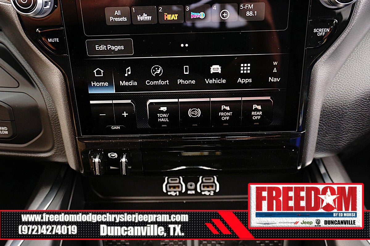 Big cash and no payments for 90 days! Our only Dealership add is GREAT CUSTOMER SERVICE. Real Deals, No Games and No Surprises. Price Includes only Rebates EVERYONE Qualifies for. We Make it Easy No Games. Equipped with Laramie Level 2 Equipment Group (#1 Seat Foam Cushion, 115V Auxiliary Rear Power Outlet, 14.4 Touchscreen Display, 17 Speaker harman/kardon Premium Sound, 2 Way Rear Headrest Seat, 2nd Row In Floor Storage Bins, 4 Way Front Headrests, 4G LTE Wi-Fi Hot Spot, Alexa Built-In, Anti-Spin Differential Rear Axle, Apple CarPlay, Auto Adjust In Reverse Exterior Mirrors, Auto Dim Exterior Mirror, Auto High Beam Headlamp Control, Auto Power-Folding Mirrors, Auto-Dimming Exterior Passenger Mirror, Bucket Seats, Chrome Exterior Mirrors, Connected Travel & Traffic Services, Connectivity - US/Canada, Disassociated Touchscreen Display, Dual Wireless Charging Pad, Emergency Vehicle Alert System (EVAS), Exterior Mirrors Courtesy Lamps, Exterior Mirrors w/Heating Element, Exterior Mirrors w/Memory, Exterior Mirrors w/Supplemental Signals, Foam Bottle Insert (Door Trim Panel), Folding Flat Load Floor Storage, Forward & Reverse Utility Lights, Front Seat Back Map Pockets, Full Length Upgraded Floor Console, Global Telematics Box Module (TBM), Google Android Auto, GPS Antenna Input, GPS Navigation, HD Radio, Heated Front Seats, Heated Steering Wheel, High Back Seats, Integrated Voice Command w/Bluetooth®, Leather Trimmed Bucket Seats, Mirror Running Lights, Off-Road Info Pages, Power 2-Way Driver Lumbar Adjust, Power 2-Way Passenger Lumbar Adjust, Power Adjust 8-Way Driver Seat, Power Adjust 8-Way Front Passenger Seat, Power Adjust Mirrors, Power Adjustable Convex Aux Mirrors, Power Adjustable Pedals w/Memory, Power Heated Fold Telescopic Mirrors w/Memory, Power Telescoping Mirrors, Radio: Uconnect 5 Nav w/14.4 Display, Rain Sensitive Windshield Wipers, Rear 60/40 Folding Seat, Remote Tailgate Release, Selectable Tire Fill Alert, SiriusXM Radio Service, SiriusXM w/360L, and Trailer Tow Pages), Quick Order Package 24H Laramie, Safety Group (Active Lane Management System, Adaptive Steering System, Drowsy Driver Detection, and Traffic Sign Recognition), Towing Technology Group (CTR Stop Lamp w/Cargo View Camera, Surround View Camera System, Trailer Reverse Guidance, and Trailer Tire Pressure Monitoring System), 10 Speakers, 4-Wheel Disc Brakes, 5th Wheel/Gooseneck Towing Prep Group, ABS brakes, Air Conditioning, Alloy wheels, AM/FM radio: SiriusXM with 360L, Apple CarPlay/Android Auto, Auto-dimming Rear-View mirror, Automatic temperature control, Black Wheel Center Hub, Brake assist, Bumpers: body-color, Clearance Lamps, Compass, Delay-off headlights, Driver door bin, Driver vanity mirror, Dual front impact airbags, Dual front side impact airbags, Electronic Stability Control, Front anti-roll bar, Front Center Armrest w/Storage, Front dual zone A/C, Front fog lights, Front License Plate Bracket, Front reading lights, Fully automatic headlights, Garage door transmitter, Heated door mirrors, Heated front seats, Heated steering wheel, Illuminated entry, Leather Trim 40/20/40 Bench Seat, Low tire pressure warning, Navigation System, Occupant sensing airbag, Outside temperature display, Overhead airbag, Overhead console, Panic alarm, ParkView Rear Back-Up Camera, Passenger door bin, Passenger vanity mirror, Power door mirrors, Power driver seat, Power passenger seat, Power steering, Power windows, Radio data system, Radio: Uconnect 5 Nav w/12.0 Display, Rear anti-roll bar, Rear Backup Alarm, Rear reading lights, Rear seat center armrest, Rear step bumper, Rear window defroster, Remote keyless entry, Security system, Speed control, Split folding rear seat, Steering wheel mounted audio controls, Tachometer, Tilt steering wheel, Traction control, Trip computer, Turn signal indicator mirrors, Variably Price includes: $2000 - 2025 National Bonus Cash . Exp. 02/0