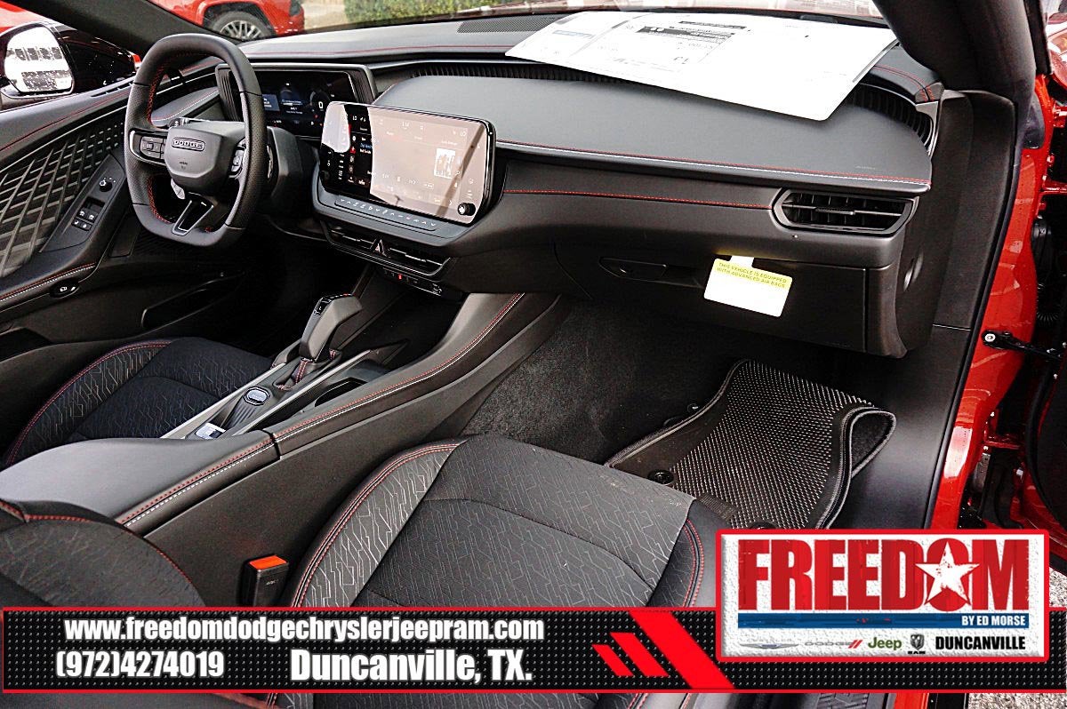 Big cash and no payments for 90 days! Our only Dealership add is GREAT CUSTOMER SERVICE. Real Deals, No Games and No Surprises. Price Includes only Rebates EVERYONE Qualifies for. We Make it Easy No Games. Equipped with Blacktop Package (Dark Exterior Badging, Dual Rear Exhaust with Black Tips, and Wheels: 20 x 10 Dark Finish Aluminum), Quick Order Package 22P Scat Pack, Two Tone Paint Group, AWD, Black Artificial Leather, 10 Speakers, 2-Way Manual Adjust Front Head Restraints, 2-Way Power Driver Lumbar Adjust, 4-Wheel Disc Brakes, 4G LTE Wi-Fi Hot Spot, 8-Way Power Driver Seat Adjust, ABS brakes, Active Noise Control System, Air Conditioning, Alloy wheels, AM/FM radio: SiriusXM w/360L, Apple CarPlay/Android Auto, Auto-dimming Rear-View mirror, Automatic temperature control, Black Seats, Brake assist, Bumpers: body-color, Compass, Connectivity - US/Canada, Delay-off headlights, Disassociated Touchscreen Display, Driver door bin, Driver vanity mirror, Dual front impact airbags, Dual front side impact airbags, Electronic Stability Control, Emergency communication system: Dodge Connect, Four wheel independent suspension, Front anti-roll bar, Front Bucket Seats, Front Center Armrest, Front dual zone A/C, Front License Plate Bracket, Front reading lights, Fully automatic headlights, Garage door transmitter, Heated door mirrors, Heated Exterior Mirrors, Heated Front Seats, Heated front seats, Heated steering wheel, Illuminated entry, Integrated Center Stack Radio, Knee airbag, Leather Shift Knob, Leatherette/Cloth Performance Seats, Low Back Bucket Seats, Low tire pressure warning, Occupant sensing airbag, Outside temperature display, Overhead airbag, Overhead console, Panic alarm, ParkView Rear Back-Up Camera, Passenger door bin, Passenger vanity mirror, Power Adjust Mirrors, Power door mirrors, Power driver seat, Power steering, Power windows, Radio data system, Radio: Uconnect 5 with 12.3 Display, Rear anti-roll bar, Rear reading lights, Rear seat center armrest, Rear window defroster, Remote keyless entry, Security system, Speed control, Split folding rear seat, Spoiler, Sport steering wheel, Steering wheel mounted audio controls, Tachometer, Telescoping steering wheel, Tilt steering wheel, Traction control, Trip computer, Variably intermittent wipers, Wheels: 20 x 10 Aluminum, Wireless Apple CarPlay, and Wireless Google Android Auto Freedom uses very reasonable effort to ensure the accuracy of information, we are not responsible for any errors or omissions contained on these pages. Please verify any information in question with Freedom Chrysler Dodge Jeep Ram * Images, prices, and options shown, including vehicle color, trim, options, pricing and other specifications are subject to availability, incentive offerings, current pricing and credit worthiness. * MSRP is the Manufacturer's Suggested Retail Price (MSRP) of the vehicle. It does not include any taxes, fees or other charges. Pricing and availability may vary based on a variety of factors, including options, dealer, specials, fees, and financing qualifications. Consult your dealer for actual price and complete details. Vehicles shown may have optional equipment at an additional cost. * The estimated selling price that appears after calculating dealer offers is for informational purposes, only. You may not qualify for the offers, incentives, discounts, or financing. Not all rebates are compatible with each other. Offers, incentives, discounts, or financing are subject to expiration and other restrictions. See dealer for qualifications and complete details. * In transit means that vehicles have been built but have not yet arrived at your dealer. Images shown may not necessarily represent identical vehicles in transit to the dealer Price includes: $500 - 2026 National 2026 Military Bonus Cash . Exp. 01/04/2027 $550 - 2026 National Burning Gas Conquest Bonus Cash. Exp