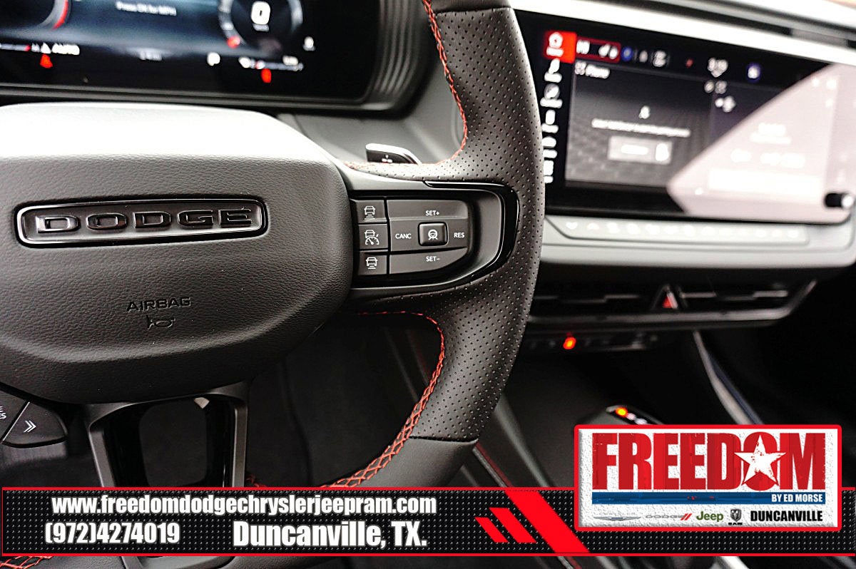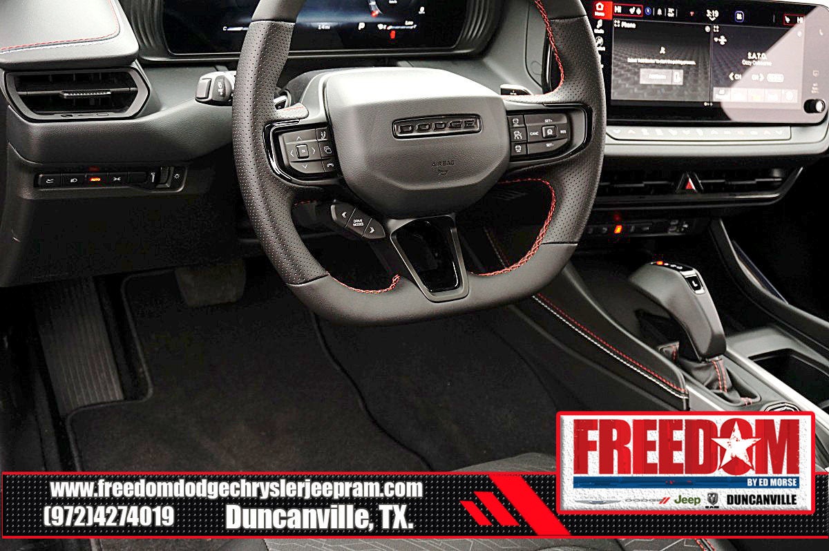 Big cash and no payments for 90 days! Our only Dealership add is GREAT CUSTOMER SERVICE. Real Deals, No Games and No Surprises. Price Includes only Rebates EVERYONE Qualifies for. We Make it Easy No Games. Equipped with Blacktop Package (Dark Exterior Badging, Dual Rear Exhaust with Black Tips, and Wheels: 20 x 10 Dark Finish Aluminum), Quick Order Package 22P Scat Pack, Two Tone Paint Group, AWD, Black Artificial Leather, 10 Speakers, 2-Way Manual Adjust Front Head Restraints, 2-Way Power Driver Lumbar Adjust, 4-Wheel Disc Brakes, 4G LTE Wi-Fi Hot Spot, 8-Way Power Driver Seat Adjust, ABS brakes, Active Noise Control System, Air Conditioning, Alloy wheels, AM/FM radio: SiriusXM w/360L, Apple CarPlay/Android Auto, Auto-dimming Rear-View mirror, Automatic temperature control, Black Seats, Brake assist, Bumpers: body-color, Compass, Connectivity - US/Canada, Delay-off headlights, Disassociated Touchscreen Display, Driver door bin, Driver vanity mirror, Dual front impact airbags, Dual front side impact airbags, Electronic Stability Control, Emergency communication system: Dodge Connect, Four wheel independent suspension, Front anti-roll bar, Front Bucket Seats, Front Center Armrest, Front dual zone A/C, Front License Plate Bracket, Front reading lights, Fully automatic headlights, Garage door transmitter, Heated door mirrors, Heated Exterior Mirrors, Heated Front Seats, Heated front seats, Heated steering wheel, Illuminated entry, Integrated Center Stack Radio, Knee airbag, Leather Shift Knob, Leatherette/Cloth Performance Seats, Low Back Bucket Seats, Low tire pressure warning, Occupant sensing airbag, Outside temperature display, Overhead airbag, Overhead console, Panic alarm, ParkView Rear Back-Up Camera, Passenger door bin, Passenger vanity mirror, Power Adjust Mirrors, Power door mirrors, Power driver seat, Power steering, Power windows, Radio data system, Radio: Uconnect 5 with 12.3 Display, Rear anti-roll bar, Rear reading lights, Rear seat center armrest, Rear window defroster, Remote keyless entry, Security system, Speed control, Split folding rear seat, Spoiler, Sport steering wheel, Steering wheel mounted audio controls, Tachometer, Telescoping steering wheel, Tilt steering wheel, Traction control, Trip computer, Variably intermittent wipers, Wheels: 20 x 10 Aluminum, Wireless Apple CarPlay, and Wireless Google Android Auto Freedom uses very reasonable effort to ensure the accuracy of information, we are not responsible for any errors or omissions contained on these pages. Please verify any information in question with Freedom Chrysler Dodge Jeep Ram * Images, prices, and options shown, including vehicle color, trim, options, pricing and other specifications are subject to availability, incentive offerings, current pricing and credit worthiness. * MSRP is the Manufacturer's Suggested Retail Price (MSRP) of the vehicle. It does not include any taxes, fees or other charges. Pricing and availability may vary based on a variety of factors, including options, dealer, specials, fees, and financing qualifications. Consult your dealer for actual price and complete details. Vehicles shown may have optional equipment at an additional cost. * The estimated selling price that appears after calculating dealer offers is for informational purposes, only. You may not qualify for the offers, incentives, discounts, or financing. Not all rebates are compatible with each other. Offers, incentives, discounts, or financing are subject to expiration and other restrictions. See dealer for qualifications and complete details. * In transit means that vehicles have been built but have not yet arrived at your dealer. Images shown may not necessarily represent identical vehicles in transit to the de Price includes: $500 - 2026 National 2026 Military Bonus Cash . Exp. 01/04/2027 $550 - 2026 National Burning Gas Conquest Bonus Cash. Exp