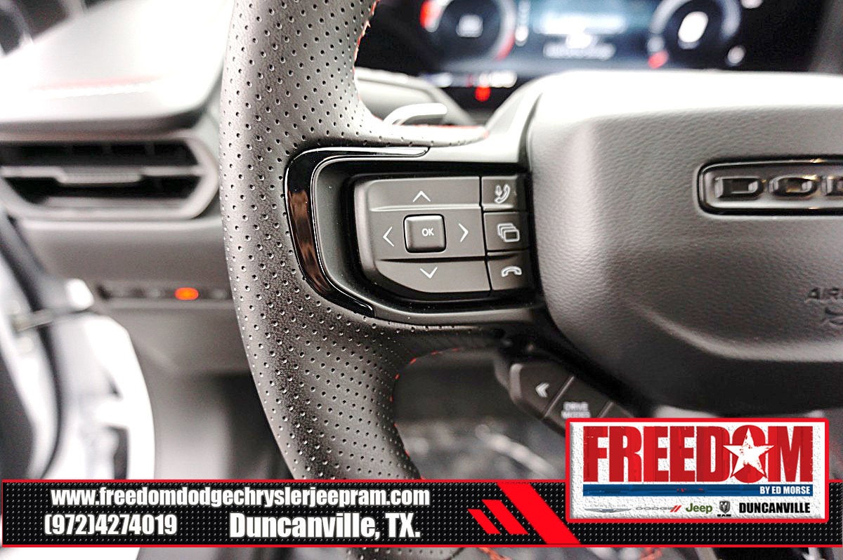 Big cash and no payments for 90 days! Our only Dealership add is GREAT CUSTOMER SERVICE. Real Deals, No Games and No Surprises. Price Includes only Rebates EVERYONE Qualifies for. We Make it Easy No Games. Equipped with Blacktop Package (Dark Exterior Badging, Dual Rear Exhaust with Black Tips, and Wheels: 20 x 10 Dark Finish Aluminum), Quick Order Package 22P Scat Pack, Two Tone Paint Group, AWD, Black Artificial Leather, 10 Speakers, 2-Way Manual Adjust Front Head Restraints, 2-Way Power Driver Lumbar Adjust, 4-Wheel Disc Brakes, 4G LTE Wi-Fi Hot Spot, 8-Way Power Driver Seat Adjust, ABS brakes, Active Noise Control System, Air Conditioning, Alloy wheels, AM/FM radio: SiriusXM w/360L, Apple CarPlay/Android Auto, Auto-dimming Rear-View mirror, Automatic temperature control, Black Seats, Brake assist, Bumpers: body-color, Compass, Connectivity - US/Canada, Delay-off headlights, Disassociated Touchscreen Display, Driver door bin, Driver vanity mirror, Dual front impact airbags, Dual front side impact airbags, Electronic Stability Control, Emergency communication system: Dodge Connect, Four wheel independent suspension, Front anti-roll bar, Front Bucket Seats, Front Center Armrest, Front dual zone A/C, Front License Plate Bracket, Front reading lights, Fully automatic headlights, Garage door transmitter, Heated door mirrors, Heated Exterior Mirrors, Heated Front Seats, Heated front seats, Heated steering wheel, Illuminated entry, Integrated Center Stack Radio, Knee airbag, Leather Shift Knob, Leatherette/Cloth Performance Seats, Low Back Bucket Seats, Low tire pressure warning, Occupant sensing airbag, Outside temperature display, Overhead airbag, Overhead console, Panic alarm, ParkView Rear Back-Up Camera, Passenger door bin, Passenger vanity mirror, Power Adjust Mirrors, Power door mirrors, Power driver seat, Power steering, Power windows, Radio data system, Radio: Uconnect 5 with 12.3 Display, Rear anti-roll bar, Rear reading lights, Rear seat center armrest, Rear window defroster, Remote keyless entry, Security system, Speed control, Split folding rear seat, Spoiler, Sport steering wheel, Steering wheel mounted audio controls, Tachometer, Telescoping steering wheel, Tilt steering wheel, Traction control, Trip computer, Variably intermittent wipers, Wheels: 20 x 10 Aluminum, Wireless Apple CarPlay, and Wireless Google Android Auto Freedom uses very reasonable effort to ensure the accuracy of information, we are not responsible for any errors or omissions contained on these pages. Please verify any information in question with Freedom Chrysler Dodge Jeep Ram * Images, prices, and options shown, including vehicle color, trim, options, pricing and other specifications are subject to availability, incentive offerings, current pricing and credit worthiness. * MSRP is the Manufacturer's Suggested Retail Price (MSRP) of the vehicle. It does not include any taxes, fees or other charges. Pricing and availability may vary based on a variety of factors, including options, dealer, specials, fees, and financing qualifications. Consult your dealer for actual price and complete details. Vehicles shown may have optional equipment at an additional cost. * The estimated selling price that appears after calculating dealer offers is for informational purposes, only. You may not qualify for the offers, incentives, discounts, or financing. Not all rebates are compatible with each other. Offers, incentives, discounts, or financing are subject to expiration and other restrictions. See dealer for qualifications and complete details. * In transit means that vehicles have been built but have not yet arrived at your dealer. Images shown may not necessarily represent identical vehicles in trans Price includes: $500 - 2026 National 2026 Military Bonus Cash . Exp. 01/04/2027 $550 - 2026 National Burning Gas Conquest Bonus Cash. Exp