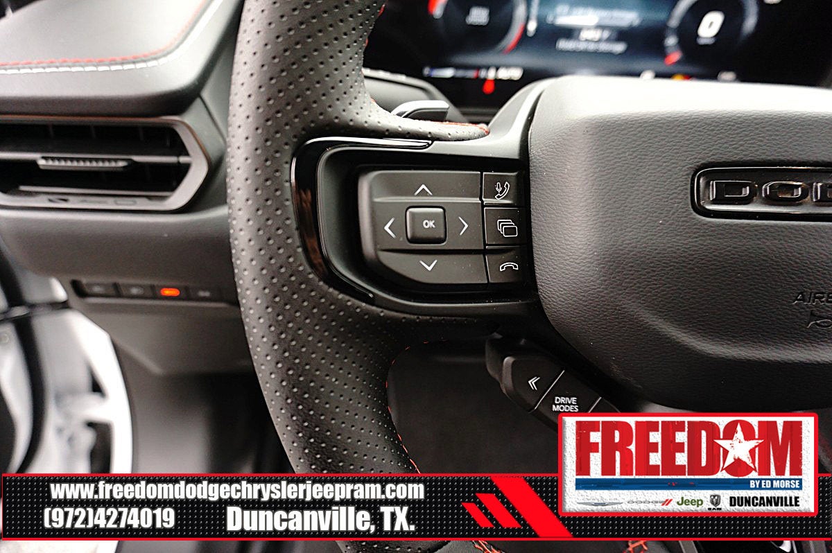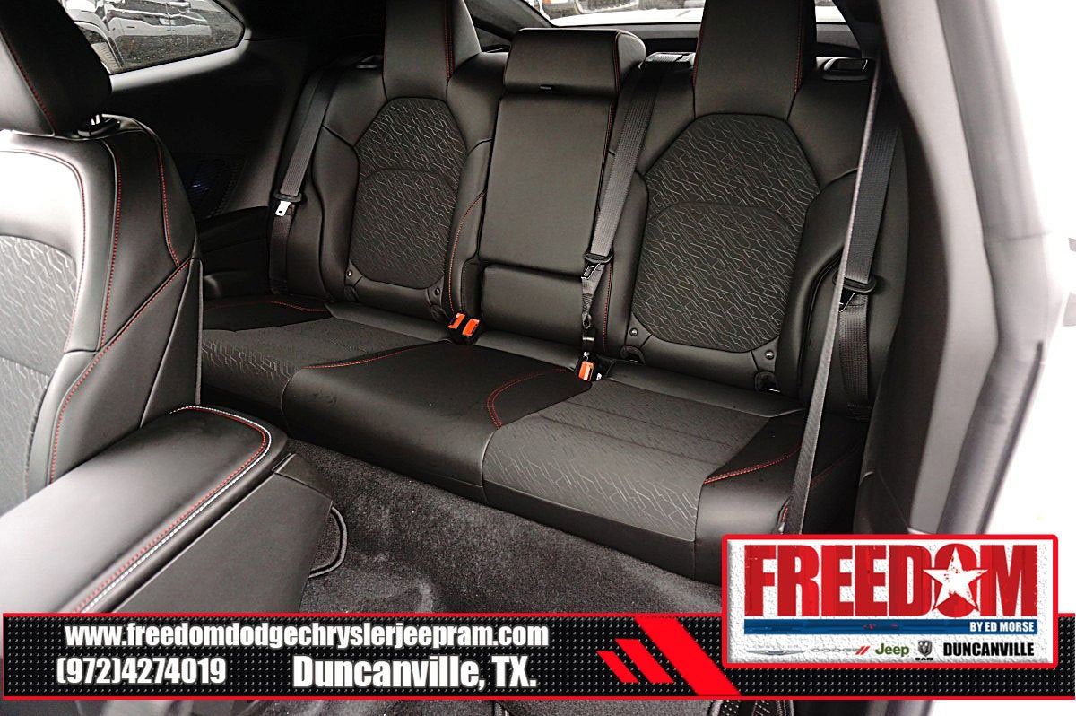 Big cash and no payments for 90 days! Our only Dealership add is GREAT CUSTOMER SERVICE. Real Deals, No Games and No Surprises. Price Includes only Rebates EVERYONE Qualifies for. We Make it Easy No Games. Equipped with Blacktop Package (Dark Exterior Badging, Dual Rear Exhaust with Black Tips, and Wheels: 20 x 10 Dark Finish Aluminum), Quick Order Package 22P Scat Pack, Two Tone Paint Group, AWD, Black Artificial Leather, 10 Speakers, 2-Way Manual Adjust Front Head Restraints, 2-Way Power Driver Lumbar Adjust, 4-Wheel Disc Brakes, 4G LTE Wi-Fi Hot Spot, 8-Way Power Driver Seat Adjust, ABS brakes, Active Noise Control System, Air Conditioning, Alloy wheels, AM/FM radio: SiriusXM w/360L, Apple CarPlay/Android Auto, Auto-dimming Rear-View mirror, Automatic temperature control, Black Seats, Brake assist, Bumpers: body-color, Compass, Connectivity - US/Canada, Delay-off headlights, Disassociated Touchscreen Display, Driver door bin, Driver vanity mirror, Dual front impact airbags, Dual front side impact airbags, Electronic Stability Control, Emergency communication system: Dodge Connect, Four wheel independent suspension, Front anti-roll bar, Front Bucket Seats, Front Center Armrest, Front dual zone A/C, Front License Plate Bracket, Front reading lights, Fully automatic headlights, Garage door transmitter, Heated door mirrors, Heated Exterior Mirrors, Heated Front Seats, Heated front seats, Heated steering wheel, Illuminated entry, Integrated Center Stack Radio, Knee airbag, Leather Shift Knob, Leatherette/Cloth Performance Seats, Low Back Bucket Seats, Low tire pressure warning, Occupant sensing airbag, Outside temperature display, Overhead airbag, Overhead console, Panic alarm, ParkView Rear Back-Up Camera, Passenger door bin, Passenger vanity mirror, Power Adjust Mirrors, Power door mirrors, Power driver seat, Power steering, Power windows, Radio data system, Radio: Uconnect 5 with 12.3 Display, Rear anti-roll bar, Rear reading lights, Rear seat center armrest, Rear window defroster, Remote keyless entry, Security system, Speed control, Split folding rear seat, Spoiler, Sport steering wheel, Steering wheel mounted audio controls, Tachometer, Telescoping steering wheel, Tilt steering wheel, Traction control, Trip computer, Variably intermittent wipers, Wheels: 20 x 10 Aluminum, Wireless Apple CarPlay, and Wireless Google Android Auto Freedom uses very reasonable effort to ensure the accuracy of information, we are not responsible for any errors or omissions contained on these pages. Please verify any information in question with Freedom Chrysler Dodge Jeep Ram * Images, prices, and options shown, including vehicle color, trim, options, pricing and other specifications are subject to availability, incentive offerings, current pricing and credit worthiness. * MSRP is the Manufacturer's Suggested Retail Price (MSRP) of the vehicle. It does not include any taxes, fees or other charges. Pricing and availability may vary based on a variety of factors, including options, dealer, specials, fees, and financing qualifications. Consult your dealer for actual price and complete details. Vehicles shown may have optional equipment at an additional cost. * The estimated selling price that appears after calculating dealer offers is for informational purposes, only. You may not qualify for the offers, incentives, discounts, or financing. Not all rebates are compatible with each other. Offers, incentives, discounts, or financing are subject to expiration and other restrictions. See dealer for qualifications and complete details. * In transit means that vehicles have been built but have not yet arrived at your dealer. Images shown may not necessarily represent identical vehicles in trans Price includes: $500 - 2026 National 2026 Military Bonus Cash . Exp. 01/04/2027 $550 - 2026 National Burning Gas Conquest Bonus Cash. Exp