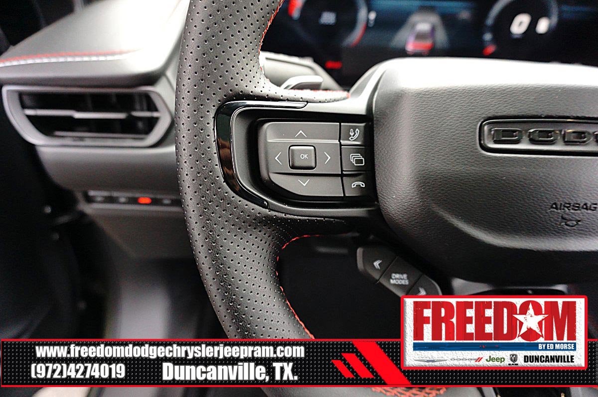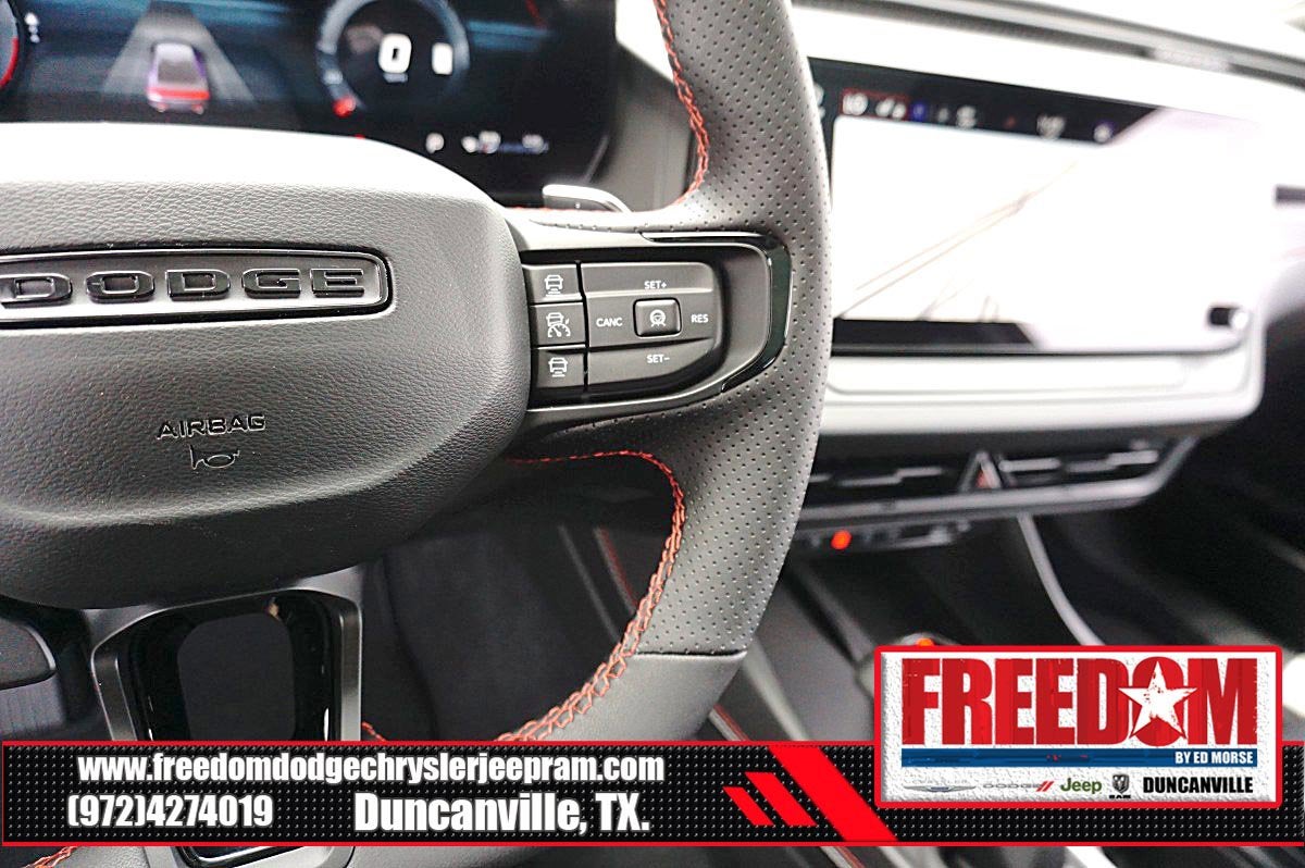 Big cash and no payments for 90 days! Our only Dealership add is GREAT CUSTOMER SERVICE. Real Deals, No Games and No Surprises. Price Includes only Rebates EVERYONE Qualifies for. We Make it Easy No Games. Equipped with Blacktop Package (Dark Exterior Badging, Dual Rear Exhaust with Black Tips, and Wheels: 20 x 10 Dark Finish Aluminum), Quick Order Package 22B Scat Pack Plus (16 Color Driver Display, 2-Way Manual Adjust Front Head Restraints, 2-Way Power Driver Lumbar Adjust, 4G LTE Wi-Fi Hot Spot, 8-Way Power Driver Seat Adjust, 800 Amp Maintenance Free Battery, Alexa Built-in, Attitude Adjustment Lighting, Automatic High-Beam Headlamp Control, Black Color Multi-Function Mirrors, Bright Pedals, Connected Travel and Traffic Services, Connectivity - US/Canada, Disassociated Touchscreen Display, Exterior Mirrors Logo Lamps, Exterior Mirrors with Memory, Front Cubby Bin with Light, Glove Box Lamp, GPS Navigation, HD Radio, Heads-Up Display, Heated Exterior Mirrors, Heated Front Seats, Heated Second Row Seats, Illuminated Door Pull Handles, Integrated Center Stack Radio, Integrated Voice Command with Bluetooth®, Leatherette Seats, LED Footwell Lighting, LED Map Pockets, Low Back Bucket Seats, Map-in-Cluster Display, Performance Pages, Power 2-Way Passenger Lumbar Adjust, Power Adjust 8-Way Front Passenger Seat, Power Adjust Mirrors, Power Hatch, Power Tilt/Telescope Steering Column, Power Windows Global Down w/Key Fob, Premium LED Low-High Reflective Headlamps, Radio, Driver Seat, Mirrors and Steering Column Memory, Radio: Uconnect 5 Navigation with 12.3 Display, Rain Sensitive Windshield Wipers, Surround View Camera System, Traffic Sign Information, Ventilated Front Seats, Windshield Wiper De-Icer, Wireless Apple CarPlay, Wireless Charging Pad, and Wireless Google Android Auto), AWD, Black Artificial Leather, 10 Speakers, 4-Wheel Disc Brakes, ABS brakes, Active Noise Control System, Air Conditioning, Alloy wheels, AM/FM radio: SiriusXM w/360L, Apple CarPlay/Android Auto, Auto-dimming Rear-View mirror, Automatic temperature control, Black Seats, Brake assist, Bumpers: body-color, Compass, Delay-off headlights, Driver door bin, Driver vanity mirror, Dual front impact airbags, Dual front side impact airbags, Electronic Stability Control, Emergency communication system: Dodge Connect, Four wheel independent suspension, Front anti-roll bar, Front Bucket Seats, Front Center Armrest, Front dual zone A/C, Front License Plate Bracket, Front reading lights, Full Glass Roof, Fully automatic headlights, Garage door transmitter, Heated door mirrors, Heated front seats, Heated steering wheel, Illuminated entry, Knee airbag, Leather Shift Knob, Leatherette/Cloth Performance Seats, Low tire pressure warning, Occupant sensing airbag, Outside temperature display, Overhead airbag, Overhead console, Panic alarm, ParkView Rear Back-Up Camera, Passenger door bin, Passenger vanity mirror, Power door mirrors, Power driver seat, Power steering, Power windows, Radio data system, Radio: Uconnect 5 with 12.3 Display, Rear anti-roll bar, Rear reading lights, Rear seat center armrest, Rear window defroster, Remote keyless entry, Security system, Speed control, Split folding rear seat, Spoiler, Sport steering wheel, Steering wheel mounted audio controls, Tachometer, Telescoping steering wheel, Tilt steering wheel, Traction control, Trip computer, Variably intermittent wipers, and Wheels: 20 x 10 Aluminum Freedom uses very reasonable effort to ensure the accuracy of information, we are not responsible for any errors or omissions contained on these pages. Please verify any information in question with Freedom Chrysler Dodge Jeep Ram * Images, prices, and options shown, including vehicle color, trim, options, p Price includes: $500 - 2026 National 2026 Military Bonus Cash . Exp. 01/04/2027 $550 - 2026 National Burning Gas Conquest Bonus Cash. Exp
