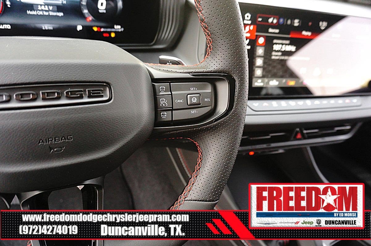 Big cash and no payments for 90 days! Our only Dealership add is GREAT CUSTOMER SERVICE. Real Deals, No Games and No Surprises. Price Includes only Rebates EVERYONE Qualifies for. We Make it Easy No Games. Equipped with Blacktop Package (Dark Exterior Badging, Dual Rear Exhaust with Black Tips, and Wheels: 20 x 10 Dark Finish Aluminum), Quick Order Package 22P Scat Pack, AWD, Black Artificial Leather, 10 Speakers, 2-Way Manual Adjust Front Head Restraints, 2-Way Power Driver Lumbar Adjust, 4-Wheel Disc Brakes, 4G LTE Wi-Fi Hot Spot, 8-Way Power Driver Seat Adjust, ABS brakes, Active Noise Control System, Air Conditioning, Alloy wheels, AM/FM radio: SiriusXM w/360L, Apple CarPlay/Android Auto, Auto-dimming Rear-View mirror, Automatic temperature control, Black Seats, Brake assist, Bumpers: body-color, Compass, Connectivity - US/Canada, Delay-off headlights, Disassociated Touchscreen Display, Driver door bin, Driver vanity mirror, Dual front impact airbags, Dual front side impact airbags, Electronic Stability Control, Emergency communication system: Dodge Connect, Four wheel independent suspension, Front anti-roll bar, Front Bucket Seats, Front Center Armrest, Front dual zone A/C, Front License Plate Bracket, Front reading lights, Fully automatic headlights, Garage door transmitter, Heated door mirrors, Heated Exterior Mirrors, Heated Front Seats, Heated front seats, Heated steering wheel, Illuminated entry, Integrated Center Stack Radio, Knee airbag, Leather Shift Knob, Leatherette/Cloth Performance Seats, Low Back Bucket Seats, Low tire pressure warning, Occupant sensing airbag, Outside temperature display, Overhead airbag, Overhead console, Panic alarm, ParkView Rear Back-Up Camera, Passenger door bin, Passenger vanity mirror, Power Adjust Mirrors, Power door mirrors, Power driver seat, Power steering, Power windows, Radio data system, Radio: Uconnect 5 with 12.3 Display, Rear anti-roll bar, Rear reading lights, Rear seat center armrest, Rear window defroster, Remote keyless entry, Security system, Speed control, Split folding rear seat, Spoiler, Sport steering wheel, Steering wheel mounted audio controls, Tachometer, Telescoping steering wheel, Tilt steering wheel, Traction control, Trip computer, Variably intermittent wipers, Wheels: 20 x 10 Aluminum, Wireless Apple CarPlay, and Wireless Google Android Auto Freedom uses very reasonable effort to ensure the accuracy of information, we are not responsible for any errors or omissions contained on these pages. Please verify any information in question with Freedom Chrysler Dodge Jeep Ram * Images, prices, and options shown, including vehicle color, trim, options, pricing and other specifications are subject to availability, incentive offerings, current pricing and credit worthiness. * MSRP is the Manufacturer's Suggested Retail Price (MSRP) of the vehicle. It does not include any taxes, fees or other charges. Pricing and availability may vary based on a variety of factors, including options, dealer, specials, fees, and financing qualifications. Consult your dealer for actual price and complete details. Vehicles shown may have optional equipment at an additional cost. * The estimated selling price that appears after calculating dealer offers is for informational purposes, only. You may not qualify for the offers, incentives, discounts, or financing. Not all rebates are compatible with each other. Offers, incentives, discounts, or financing are subject to expiration and other restrictions. See dealer for qualifications and complete details. * In transit means that vehicles have been built but have not yet arrived at your dealer. Images shown may not necessarily represent identical vehicles in transit to the dea Price includes: $500 - 2026 National 2026 Military Bonus Cash . Exp. 01/04/2027 $550 - 2026 National Burning Gas Conquest Bonus Cash. Exp