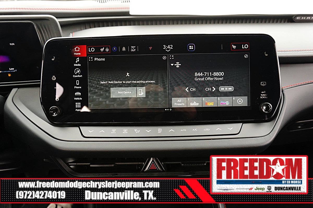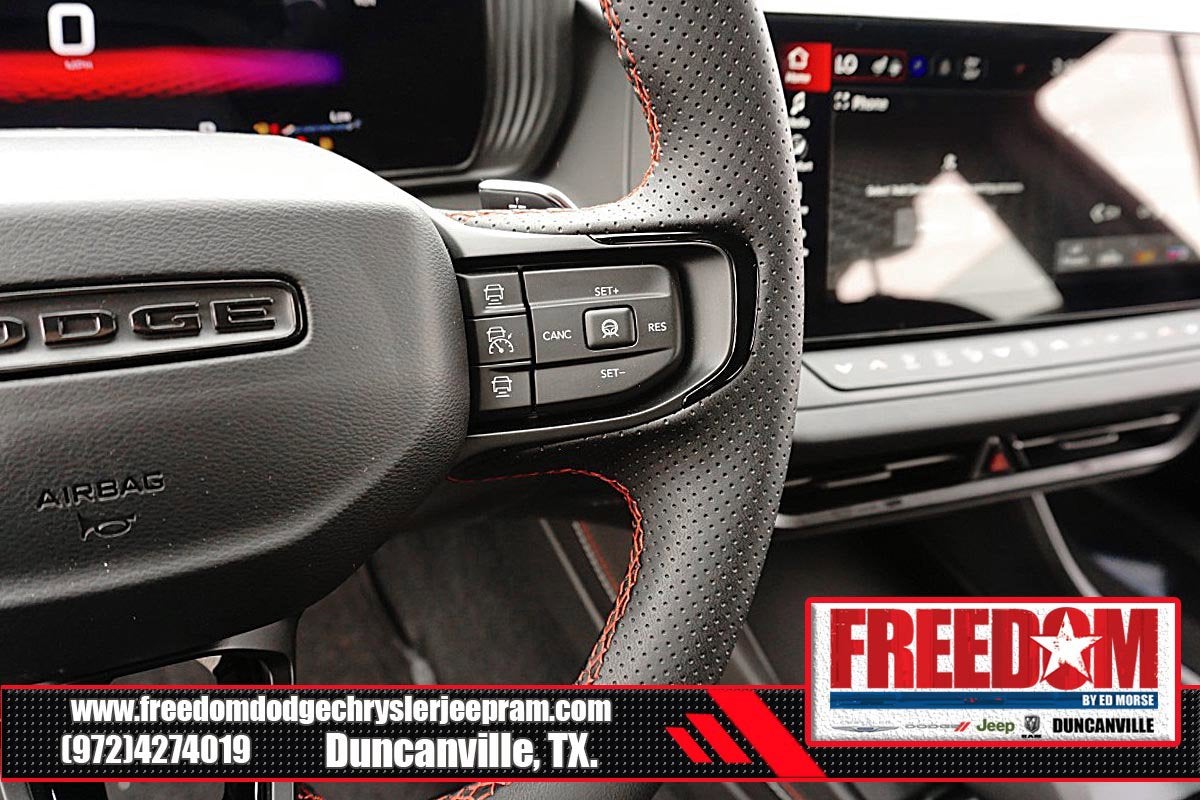 Big cash and no payments for 90 days! Our only Dealership add is GREAT CUSTOMER SERVICE. Real Deals, No Games and No Surprises. Price Includes only Rebates EVERYONE Qualifies for. We Make it Easy No Games. Equipped with Blacktop Package (Dark Exterior Badging, Dual Rear Exhaust with Black Tips, and Wheels: 20 x 10 Dark Finish Aluminum), Quick Order Package 22P Scat Pack, AWD, Black Artificial Leather, 10 Speakers, 2-Way Manual Adjust Front Head Restraints, 2-Way Power Driver Lumbar Adjust, 4-Wheel Disc Brakes, 4G LTE Wi-Fi Hot Spot, 8-Way Power Driver Seat Adjust, ABS brakes, Active Noise Control System, Air Conditioning, Alloy wheels, AM/FM radio: SiriusXM w/360L, Apple CarPlay/Android Auto, Auto-dimming Rear-View mirror, Automatic temperature control, Black Seats, Brake assist, Bumpers: body-color, Compass, Connectivity - US/Canada, Delay-off headlights, Disassociated Touchscreen Display, Driver door bin, Driver vanity mirror, Dual front impact airbags, Dual front side impact airbags, Electronic Stability Control, Emergency communication system: Dodge Connect, Four wheel independent suspension, Front anti-roll bar, Front Bucket Seats, Front Center Armrest, Front dual zone A/C, Front License Plate Bracket, Front reading lights, Fully automatic headlights, Garage door transmitter, Heated door mirrors, Heated Exterior Mirrors, Heated Front Seats, Heated front seats, Heated steering wheel, Illuminated entry, Integrated Center Stack Radio, Knee airbag, Leather Shift Knob, Leatherette/Cloth Performance Seats, Low Back Bucket Seats, Low tire pressure warning, Manufacturer's Statement of Origin, Occupant sensing airbag, Outside temperature display, Overhead airbag, Overhead console, Panic alarm, ParkView Rear Back-Up Camera, Passenger door bin, Passenger vanity mirror, Power Adjust Mirrors, Power door mirrors, Power driver seat, Power steering, Power windows, Radio data system, Radio: Uconnect 5 with 12.3 Display, Rear anti-roll bar, Rear reading lights, Rear seat center armrest, Rear window defroster, Remote keyless entry, Security system, Speed control, Split folding rear seat, Spoiler, Sport steering wheel, Steering wheel mounted audio controls, Tachometer, Telescoping steering wheel, Tilt steering wheel, Traction control, Trip computer, Variably intermittent wipers, Wheels: 20 x 10 Aluminum, Wireless Apple CarPlay, and Wireless Google Android Auto Freedom uses very reasonable effort to ensure the accuracy of information, we are not responsible for any errors or omissions contained on these pages. Please verify any information in question with Freedom Chrysler Dodge Jeep Ram * Images, prices, and options shown, including vehicle color, trim, options, pricing and other specifications are subject to availability, incentive offerings, current pricing and credit worthiness. * MSRP is the Manufacturer's Suggested Retail Price (MSRP) of the vehicle. It does not include any taxes, fees or other charges. Pricing and availability may vary based on a variety of factors, including options, dealer, specials, fees, and financing qualifications. Consult your dealer for actual price and complete details. Vehicles shown may have optional equipment at an additional cost. * The estimated selling price that appears after calculating dealer offers is for informational purposes, only. You may not qualify for the offers, incentives, discounts, or financing. Not all rebates are compatible with each other. Offers, incentives, discounts, or financing are subject to expiration and other restrictions. See dealer for qualifications and complete details. * In transit means that vehicles have been built but have not yet arrived at your dealer. Images shown may not necessarily represent iden Price includes: $500 - 2026 National 2026 Military Bonus Cash . Exp. 01/04/2027 $550 - 2026 National Burning Gas Conquest Bonus Cash. Exp