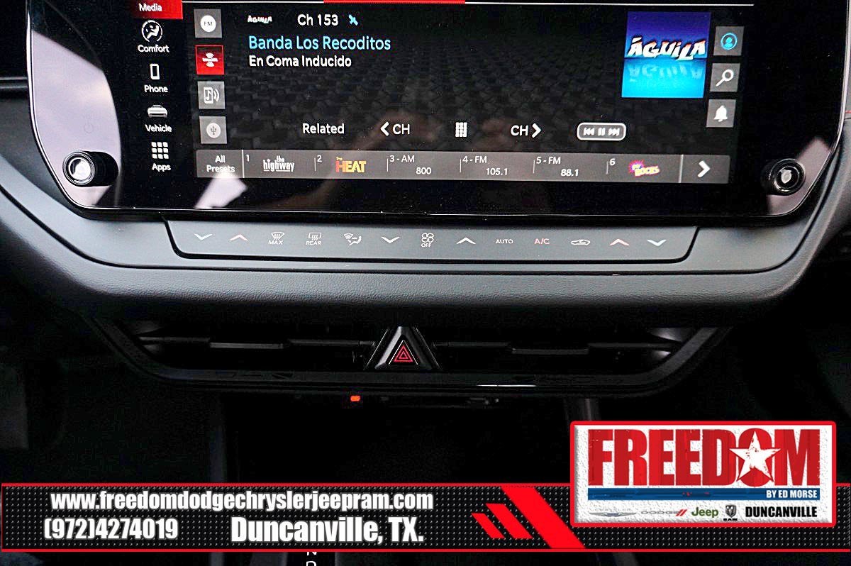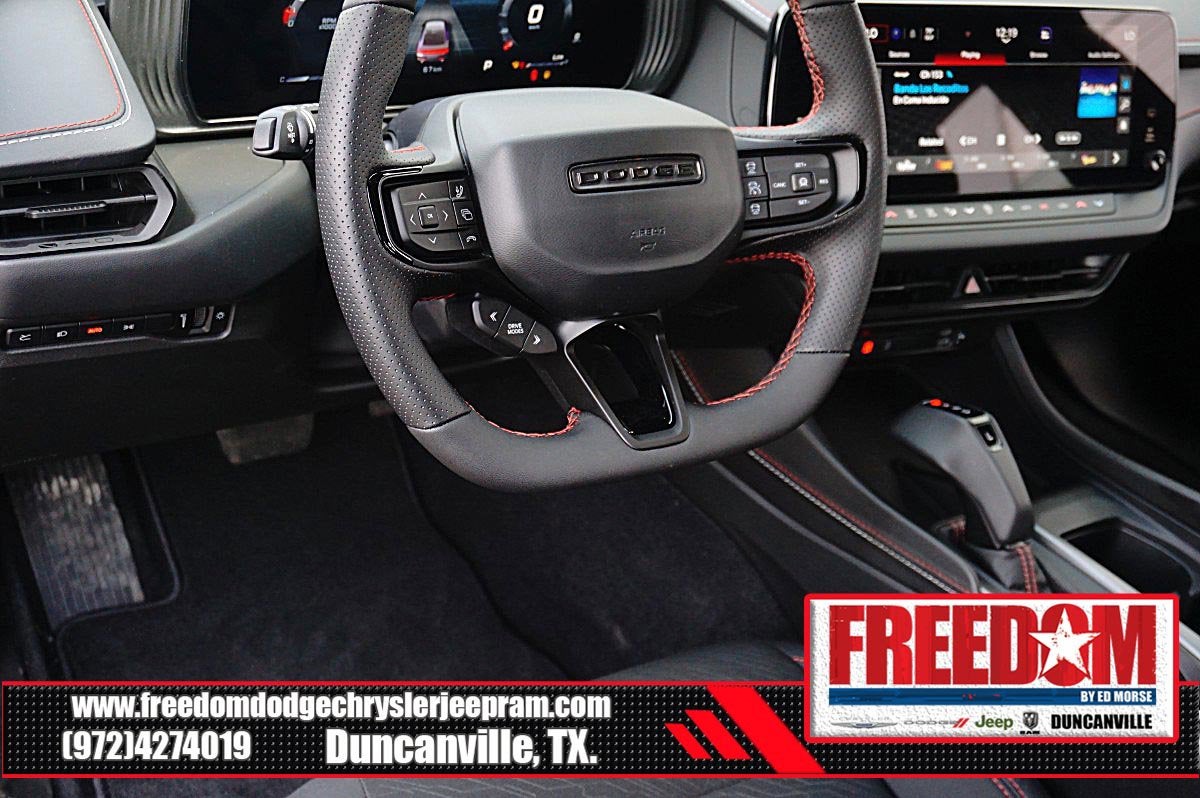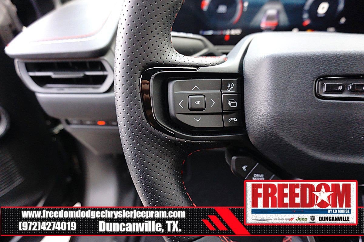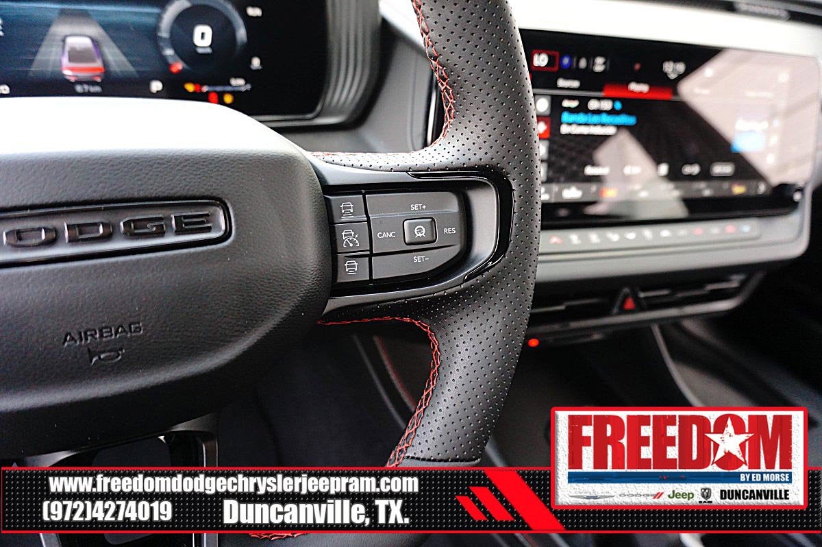 Big cash and no payments for 90 days! Our only Dealership add is GREAT CUSTOMER SERVICE. Real Deals, No Games and No Surprises. Price Includes only Rebates EVERYONE Qualifies for. We Make it Easy No Games. Equipped with Blacktop Package (Dark Exterior Badging, Dual Rear Exhaust with Black Tips, and Sport Suspension), Quick Order Package 21L R/T, AWD, Black Cloth, 12.3 Touchscreen Display, 18 x 8.5 Aluminum Wheels, 2-Way Manual Adjust Front Head Restraints, 4-Way Manual Adjust Front Passenger Seat, 4-Wheel Disc Brakes, 4G LTE Wi-Fi Hot Spot, 6 Speakers, ABS brakes, Air Conditioning, Alloy wheels, AM/FM radio: SiriusXM w/360L, Apple CarPlay/Android Auto, Automatic temperature control, Black Seats, Brake assist, Bumpers: body-color, Cloth Sport Seats, Compass, Connectivity - US/Canada, Delay-off headlights, Disassociated Touchscreen Display, Driver door bin, Driver vanity mirror, Dual front impact airbags, Dual front side impact airbags, Electronic Stability Control, Emergency communication system: Dodge Connect, Four wheel independent suspension, Front anti-roll bar, Front Bucket Seats, Front Center Armrest, Front dual zone A/C, Front License Plate Bracket, Front reading lights, Fully automatic headlights, Heated door mirrors, Heated Exterior Mirrors, Illuminated entry, Integrated Center Stack Radio, Knee airbag, Leather Shift Knob, Low Back Bucket Seats, Low tire pressure warning, Occupant sensing airbag, Outside temperature display, Overhead airbag, Overhead console, Panic alarm, ParkView Rear Back-Up Camera, Passenger door bin, Passenger vanity mirror, Power Adjust Mirrors, Power door mirrors, Power steering, Power windows, Radio data system, Radio: Uconnect 5 with 12.3 Display, Rear anti-roll bar, Rear reading lights, Rear seat center armrest, Rear window defroster, Remote keyless entry, Security system, Speed control, Split folding rear seat, Sport steering wheel, Steering wheel mounted audio controls, Tachometer, Telescoping steering wheel, Tilt steering wheel, Traction control, Trip computer, Variably intermittent wipers, Wheels: 20 x 9 Black Aluminum, Wireless Apple CarPlay, and Wireless Google Android Auto Freedom uses very reasonable effort to ensure the accuracy of information, we are not responsible for any errors or omissions contained on these pages. Please verify any information in question with Freedom Chrysler Dodge Jeep Ram * Images, prices, and options shown, including vehicle color, trim, options, pricing and other specifications are subject to availability, incentive offerings, current pricing and credit worthiness. * MSRP is the Manufacturer's Suggested Retail Price (MSRP) of the vehicle. It does not include any taxes, fees or other charges. Pricing and availability may vary based on a variety of factors, including options, dealer, specials, fees, and financing qualifications. Consult your dealer for actual price and complete details. Vehicles shown may have optional equipment at an additional cost. * The estimated selling price that appears after calculating dealer offers is for informational purposes, only. You may not qualify for the offers, incentives, discounts, or financing. Not all rebates are compatible with each other. Offers, incentives, discounts, or financing are subject to expiration and other restrictions. See dealer for qualifications and complete details. * In transit means that vehicles have been built but have not yet arrived at your dealer. Images shown may not necessarily represent identical vehicles in transit to the dealership. See dealer for actual price, payments and complete details. EPA Estimates are only estimating. Tax, title, license (unless itemized above) are extra. Not available with special finance, lease and some other offers.
