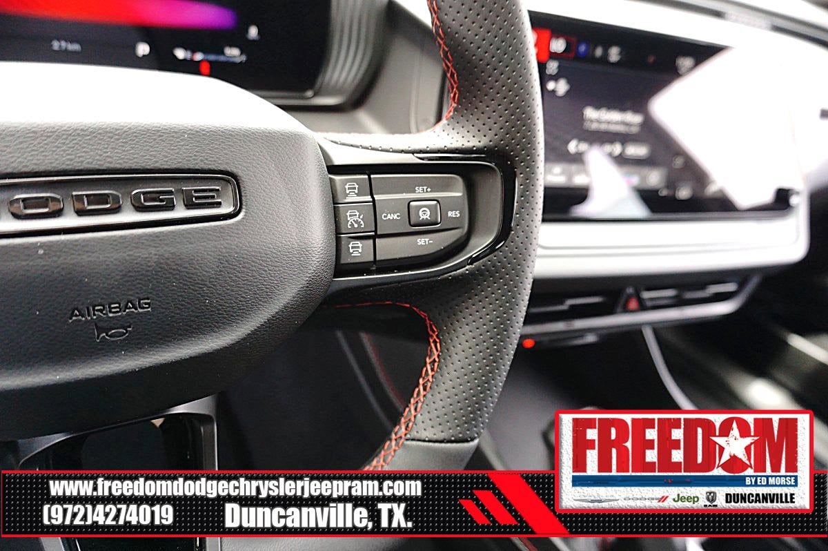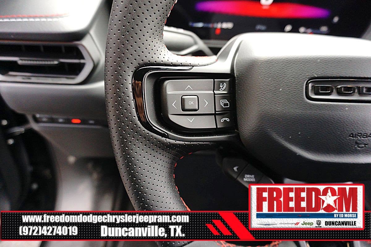 Big cash and no payments for 90 days! Our only Dealership add is GREAT CUSTOMER SERVICE. Real Deals, No Games and No Surprises. Price Includes only Rebates EVERYONE Qualifies for. We Make it Easy No Games. Equipped with Blacktop Package (Dark Exterior Badging, Dual Rear Exhaust with Black Tips, and Sport Suspension), Quick Order Package 21L R/T, AWD, Black Cloth, 12.3 Touchscreen Display, 18 x 8.5 Aluminum Wheels, 2-Way Manual Adjust Front Head Restraints, 4-Way Manual Adjust Front Passenger Seat, 4-Wheel Disc Brakes, 4G LTE Wi-Fi Hot Spot, 6 Speakers, ABS brakes, Air Conditioning, Alloy wheels, AM/FM radio: SiriusXM w/360L, Apple CarPlay/Android Auto, Automatic temperature control, Black Seats, Brake assist, Bumpers: body-color, Cloth Sport Seats, Compass, Connectivity - US/Canada, Delay-off headlights, Disassociated Touchscreen Display, Driver door bin, Driver vanity mirror, Dual front impact airbags, Dual front side impact airbags, Electronic Stability Control, Emergency communication system: Dodge Connect, Four wheel independent suspension, Front anti-roll bar, Front Bucket Seats, Front Center Armrest, Front dual zone A/C, Front License Plate Bracket, Front reading lights, Fully automatic headlights, Heated door mirrors, Heated Exterior Mirrors, Illuminated entry, Integrated Center Stack Radio, Knee airbag, Leather Shift Knob, Low Back Bucket Seats, Low tire pressure warning, Occupant sensing airbag, Outside temperature display, Overhead airbag, Overhead console, Panic alarm, ParkView Rear Back-Up Camera, Passenger door bin, Passenger vanity mirror, Power Adjust Mirrors, Power door mirrors, Power steering, Power windows, Radio data system, Radio: Uconnect 5 with 12.3 Display, Rear anti-roll bar, Rear reading lights, Rear seat center armrest, Rear window defroster, Remote keyless entry, Security system, Speed control, Split folding rear seat, Sport steering wheel, Steering wheel mounted audio controls, Tachometer, Telescoping steering wheel, Tilt steering wheel, Traction control, Trip computer, Variably intermittent wipers, Wheels: 20 x 9 Black Aluminum, Wireless Apple CarPlay, and Wireless Google Android Auto Freedom uses very reasonable effort to ensure the accuracy of information, we are not responsible for any errors or omissions contained on these pages. Please verify any information in question with Freedom Chrysler Dodge Jeep Ram * Images, prices, and options shown, including vehicle color, trim, options, pricing and other specifications are subject to availability, incentive offerings, current pricing and credit worthiness. * MSRP is the Manufacturer's Suggested Retail Price (MSRP) of the vehicle. It does not include any taxes, fees or other charges. Pricing and availability may vary based on a variety of factors, including options, dealer, specials, fees, and financing qualifications. Consult your dealer for actual price and complete details. Vehicles shown may have optional equipment at an additional cost. * The estimated selling price that appears after calculating dealer offers is for informational purposes, only. You may not qualify for the offers, incentives, discounts, or financing. Not all rebates are compatible with each other. Offers, incentives, discounts, or financing are subject to expiration and other restrictions. See dealer for qualifications and complete details. * In transit means that vehicles have been built but have not yet arrived at your dealer. Images shown may not necessarily represent identical vehicles in transit to the dealership. See dealer for actual price, payments and complete details. EPA Estimates are only estimating. Tax, title, license (unless itemized above) are extra. Not available with special finance, lease and some other offers.