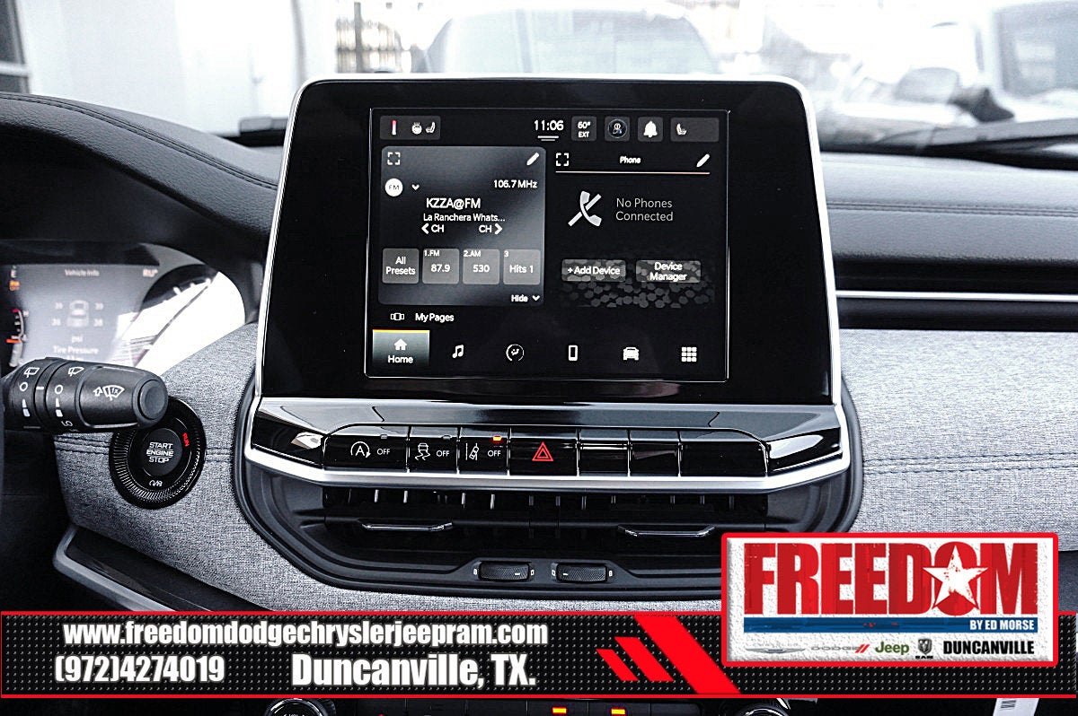 Big cash and no payments for 90 days! Our only Dealership add is GREAT CUSTOMER SERVICE. Real Deals, No Games and No Surprises. Price Includes only Rebates EVERYONE Qualifies for. We Make it Easy No Games. Equipped with Quick Order Package 29J Latitude, 4WD, 17 x 7 Aluminum Wheels, 3.73 Final Drive Ratio, 4-Wheel Disc Brakes, 4G LTE Wi-Fi Hot Spot, 6 Speakers, ABS brakes, Air Conditioning, AM/FM radio: SiriusXM, Auto High-beam Headlights, Automatic temperature control, Bluetooth® Handsfree Phone and Audio, Brake assist, Bumpers: body-color, Compass, Delay-off headlights, Driver door bin, Driver vanity mirror, Dual front impact airbags, Dual front side impact airbags, Electronic Stability Control, Emergency communication system: SiriusXM Guardian, Four wheel independent suspension, Front anti-roll bar, Front Bucket Seats, Front Center Armrest w/Storage, Front fog lights, Front License Plate Bracket, Front reading lights, Fully automatic headlights, Global Telematics Box Module, Heated door mirrors, Heated front seats, Heated steering wheel, Illuminated entry, Knee airbag, Leather Shift Knob, Leather steering wheel, Low tire pressure warning, Occupant sensing airbag, Outside temperature display, Overhead airbag, Overhead console, Panic alarm, ParkView Rear Back-Up Camera, Passenger door bin, Passenger vanity mirror, Power door mirrors, Power steering, Power windows, Premium audio system: UConnect 5, Premium Cloth/Vinyl Bucket Seats, Radio: Uconnect 5 with 8.4 Display, Rear anti-roll bar, Rear seat center armrest, Rear window defroster, Rear window wiper, Remote keyless entry, Security system, SiriusXM Satellite Radio, Speed control, Split folding rear seat, Spoiler, Steering wheel mounted audio controls, Tachometer, Telescoping steering wheel, Tilt steering wheel, Traction control, Trip computer, and Variably intermittent wipers Freedom uses very reasonable effort to ensure the accuracy of information, we are not responsible for any errors or omissions contained on these pages. Please verify any information in question with Freedom Chrysler Dodge Jeep Ram * Images, prices, and options shown, including vehicle color, trim, options, pricing and other specifications are subject to availability, incentive offerings, current pricing and credit worthiness. * MSRP is the Manufacturer's Suggested Retail Price (MSRP) of the vehicle. It does not include any taxes, fees or other charges. Pricing and availability may vary based on a variety of factors, including options, dealer, specials, fees, and financing qualifications. Consult your dealer for actual price and complete details. Vehicles shown may have optional equipment at an additional cost. * The estimated selling price that appears after calculating dealer offers is for informational purposes, only. You may not qualify for the offers, incentives, discounts, or financing. Not all rebates are compatible with each other. Offers, incentives, discounts, or financing are subject to expiration and other restrictions. See dealer for qualifications and complete details. * In transit means that vehicles have been built but have not yet arrived at your dealer. Images shown may not necessarily represent identical vehicles in transit to the dealership. See dealer for actual price, payments and complete details. EPA Estimates are only estimating. Tax, title, license (unless itemized above) are extra. Not available with special finance, lease and some other offers. Price includes: $1000 - 2026 National Retail Bonus Cash . Exp. 02/02/2026 $1000 - 2026 Southwest BC Bonus Cash . Exp. 02/02/2026 $1500 - 2026 National Stellantis Loyalty Retail Bonus Cash . Exp. 02/02/2026