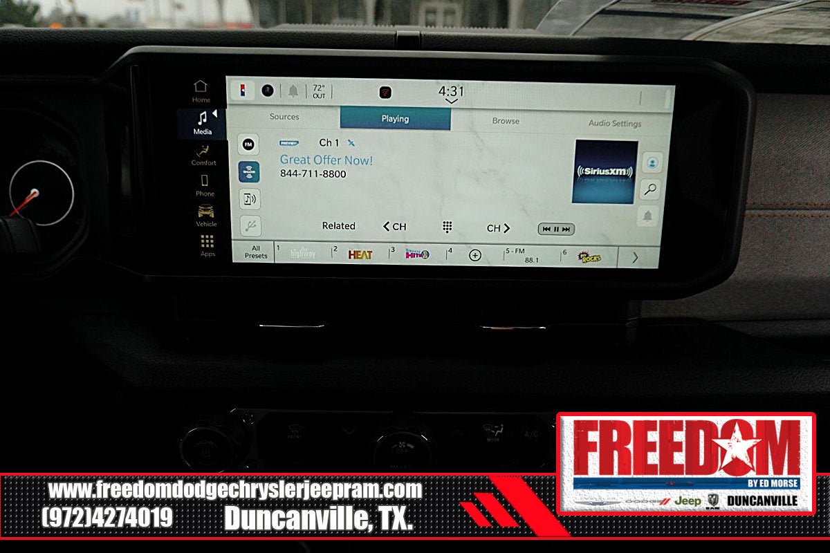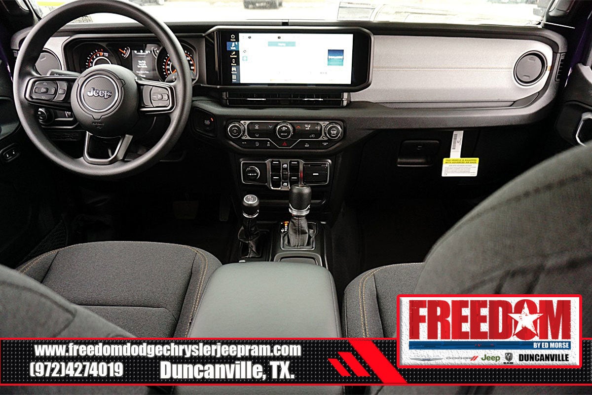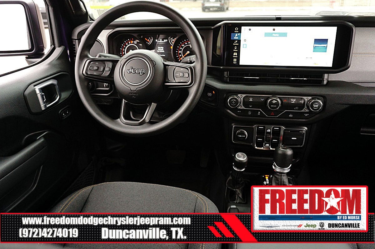 Big cash and no payments for 90 days! Our only Dealership add is GREAT CUSTOMER SERVICE. Real Deals, No Games and No Surprises. Price Includes only Rebates EVERYONE Qualifies for. We Make it Easy No Games. Equipped with Quick Order Package 24B Sport, 110 Mph Vehicle Max Speed Calibration, 12.3 Touchscreen Display, 3.73 Rear Axle Ratio, 4-Wheel Disc Brakes, 4G LTE Wi-Fi Hot Spot, 8 Speakers, ABS brakes, Air Conditioning, Alexa Built-in, AM/FM radio: SiriusXM with 360L, Apple CarPlay, Apple CarPlay/Android Auto, Black 3-Piece Hard Top, Brake assist, Compass, Connectivity - US/Canada, Delay-off headlights, Driver door bin, Driver vanity mirror, Dual front impact airbags, Dual front side impact airbags, Electronic Stability Control, For Details, Visit DriveUconnect.com, Freedom Panel Storage Bag, Front anti-roll bar, Front Bucket Seats, Front Center Armrest w/Storage, Front fog lights, Front License Plate Bracket, Front reading lights, Google Android Auto, Illuminated entry, Integrated Center Stack Radio, Integrated roll-over protection, Low tire pressure warning, Manufacturer's Statement of Origin, MOPAR All-Weather Slush Mats, Normal Duty Suspension, Occupant sensing airbag, Outside temperature display, Overhead airbag, Panic alarm, ParkView Rear Back-Up Camera, Passenger door bin, Passenger vanity mirror, Power steering, Power windows, Radio data system, Radio: Uconnect 5 with 12.3 Display, Rear anti-roll bar, Rear reading lights, Rear Sliding Window, Rear Window Defroster, Remote keyless entry, SiriusXM Radio Service, SiriusXM with 360L, Speed control, Split folding rear seat, Steering wheel mounted audio controls, Tachometer, Telescoping steering wheel, Tilt steering wheel, Traction control, Trip computer, USB Host Flip, Variably intermittent wipers, Voltmeter, Wheels: 17 x 7.5 Black Steel Styled, and Wheels: 17 x 7.5 Gray Freedom uses very reasonable effort to ensure the accuracy of information, we are not responsible for any errors or omissions contained on these pages. Please verify any information in question with Freedom Chrysler Dodge Jeep Ram * Images, prices, and options shown, including vehicle color, trim, options, pricing and other specifications are subject to availability, incentive offerings, current pricing and credit worthiness. * MSRP is the Manufacturer's Suggested Retail Price (MSRP) of the vehicle. It does not include any taxes, fees or other charges. Pricing and availability may vary based on a variety of factors, including options, dealer, specials, fees, and financing qualifications. Consult your dealer for actual price and complete details. Vehicles shown may have optional equipment at an additional cost. * The estimated selling price that appears after calculating dealer offers is for informational purposes, only. You may not qualify for the offers, incentives, discounts, or financing. Not all rebates are compatible with each other. Offers, incentives, discounts, or financing are subject to expiration and other restrictions. See dealer for qualifications and complete details. * In transit means that vehicles have been built but have not yet arrived at your dealer. Images shown may not necessarily represent identical vehicles in transit to the dealership. See dealer for actual price, payments and complete details. EPA Estimates are only estimating. Tax, title, license (unless itemized above) are extra. Not available with special finance, lease and some other offers. Price includes: $1000 - 2026 National Retail Bonus Cash . Exp. 04/30/2026 $1000 - 2026 National Stellantis Loyalty Bonus Cash . Exp. 04/30/2026 $500 - 2026 National 2026 Military Bonus Cash . Exp. 01/04/2027 $750 - 2026 Southwest BC Bonus Cash . Exp. 04/30/2026