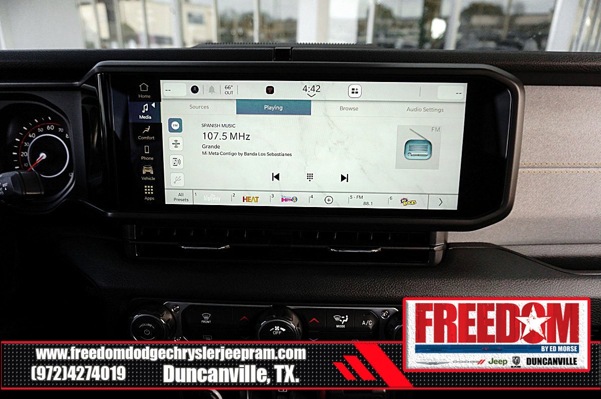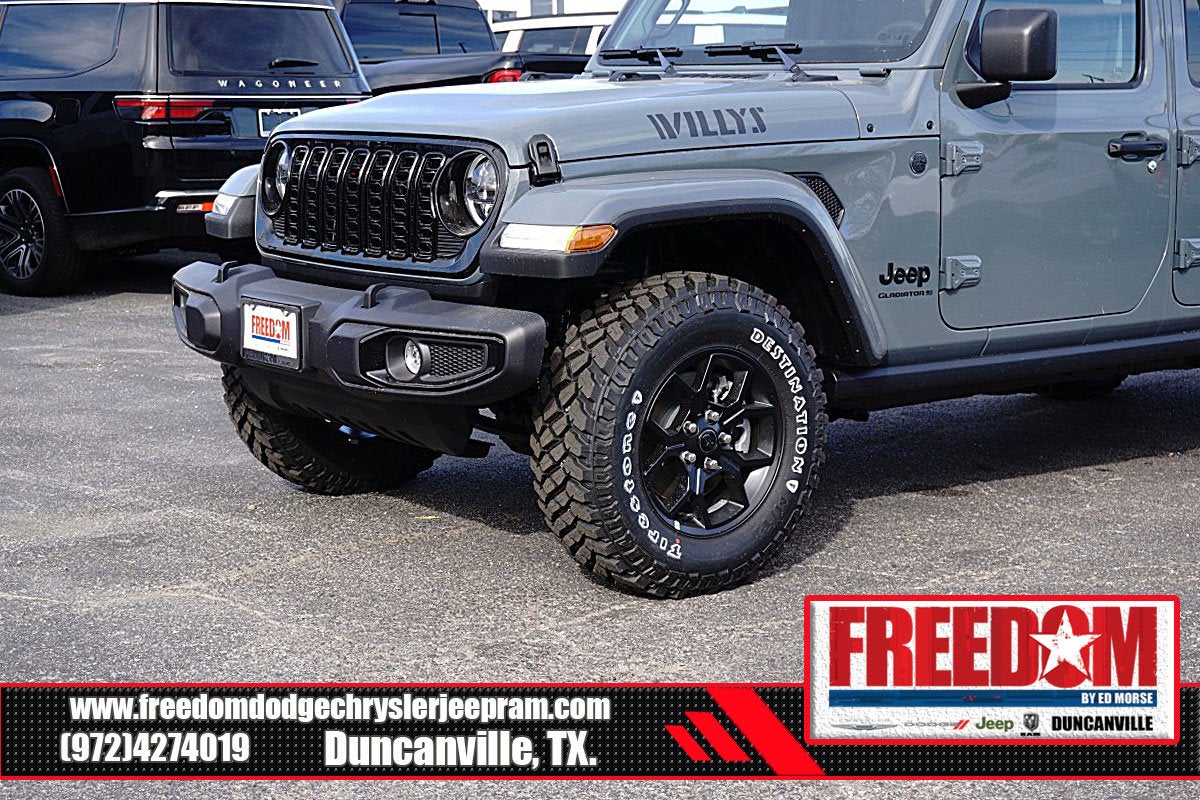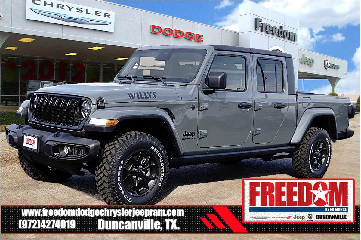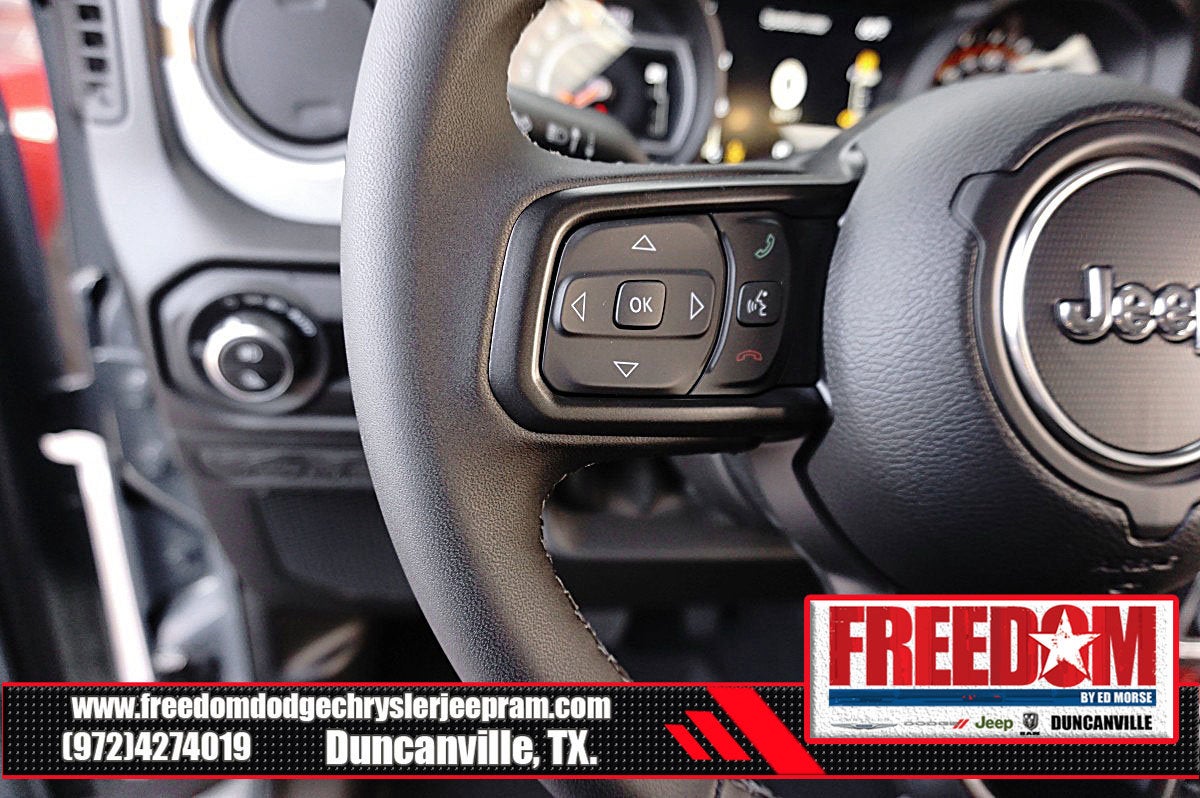 Big cash and no payments for 90 days! Our only Dealership add is GREAT CUSTOMER SERVICE. Real Deals, No Games and No Surprises. Price Includes only Rebates EVERYONE Qualifies for. We Make it Easy No Games. Equipped with Quick Order Package 24W Willys (2-Piece Body Color Fender Flares, 4-Wheel Drive Decal, Advanced Brake Assist, Air Conditioning with Auto Temp Control, Automatic Headlamps, Auxiliary Switches, Black Grille with Gloss Black Rings, Class IV Receiver Hitch, Cluster 7.0 TFT Color Display, Corning Gorilla Glass, Daytime Running Lamps LED Accents, Deep Tint Sunscreen Windows, E-Locker Rear Axle, Front Door Locks 2-Door Passive Entry, Front Heavy Duty Red Accent Shock Absorbers, Front LED Fog Lamps, Full Speed Forward Collision Warning Plus, Heavy-Duty Engine Cooling, LED Premium Reflector Headlamps, LED Taillamps, Mold in Color Bumper with Gloss Black, MOPAR All-Weather Slush Mats, Off-Road Plus Mode, Power Heated Mirrors, Premium Wrapped Steering Wheel, Protection Sill Rails, Rear Heavy Duty Red Accent Shock Absorbers, Security Alarm, Sun Visors with Illuminated Vanity Mirrors, Trailer Hitch Zoom, Wheels: 17 x 7.5 Painted Black, Willys Hood Decal, and Willys Suspension), 110 Mph Vehicle Max Speed Calibration, 12.3 Touchscreen Display, 3.73 Rear Axle Ratio, 4-Wheel Disc Brakes, 4G LTE Wi-Fi Hot Spot, 8 Speakers, ABS brakes, Air Conditioning, Alexa Built-in, AM/FM radio: SiriusXM with 360L, Apple CarPlay, Apple CarPlay/Android Auto, Black 3-Piece Hard Top, Brake assist, Compass, Connectivity - US/Canada, Delay-off headlights, Driver door bin, Driver vanity mirror, Dual front impact airbags, Dual front side impact airbags, Electronic Stability Control, Freedom Panel Storage Bag, Front anti-roll bar, Front Bucket Seats, Front Center Armrest w/Storage, Front fog lights, Front License Plate Bracket, Front reading lights, Google Android Auto, Illuminated entry, Integrated roll-over protection, Low tire pressure warning, Manufacturer's Statement of Origin, Normal Duty Suspension, Occupant sensing airbag, Outside temperature display, Overhead airbag, Panic alarm, ParkView Rear Back-Up Camera, Passenger door bin, Passenger vanity mirror, Power steering, Power windows, Radio data system, Radio: Uconnect 5 with 12.3 Display, Rear anti-roll bar, Rear reading lights, Rear Sliding Window, Rear Window Defroster, Remote keyless entry, Speed control, Split folding rear seat, Steering wheel mounted audio controls, Tachometer, Telescoping steering wheel, Tilt steering wheel, Traction control, Trip computer, USB Host Flip, Variably intermittent wipers, Voltmeter, and Wheels: 17 x 7.5 Black Steel Styled Freedom uses very reasonable effort to ensure the accuracy of information, we are not responsible for any errors or omissions contained on these pages. Please verify any information in question with Freedom Chrysler Dodge Jeep Ram * Images, prices, and options shown, including vehicle color, trim, options, pricing and other specifications are subject to availability, incentive offerings, current pricing and credit worthiness. * MSRP is the Manufacturer's Suggested Retail Price (MSRP) of the vehicle. It does not include any taxes, fees or other charges. Pricing and availability may vary based on a variety of factors, including options, dealer, specials, fees, and financing qualifications. Consult your dealer for actual price and complete details. Vehicles shown may have optional equipment at an additional cost. * The estimated selling price that appears after calculating dealer offers is for informational purposes, only. You may not qualify for the offers, incentives, discounts, or financing. Not all rebates are compatible with each other. Offers, incentives, discounts, or financing are subject to expiration and other restrictions. See dealer for qualifications and complete details. * In transit means that vehicles have been built but have not yet arrived at your