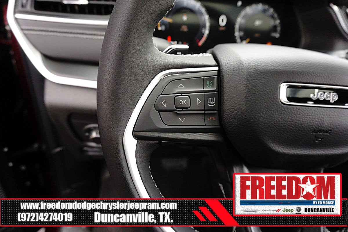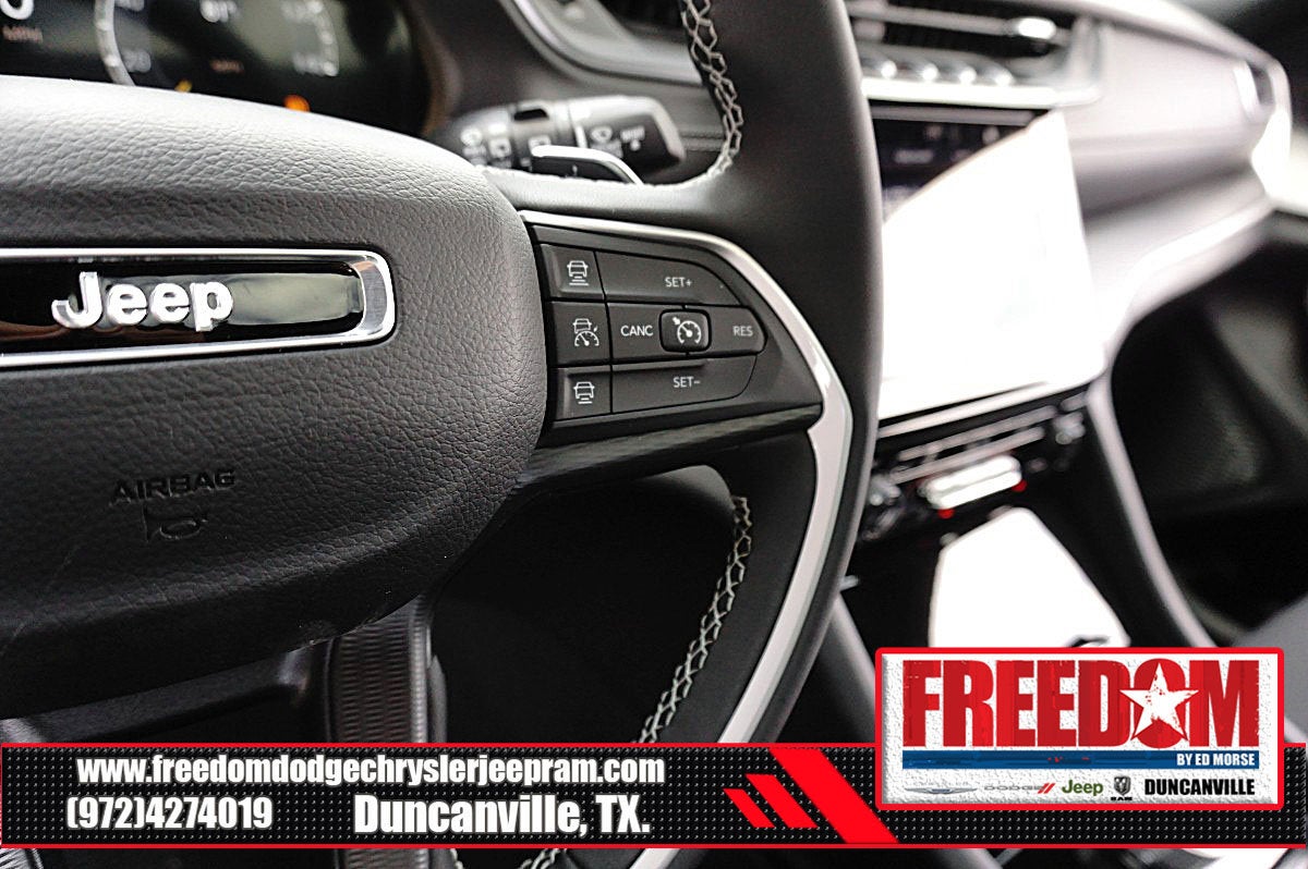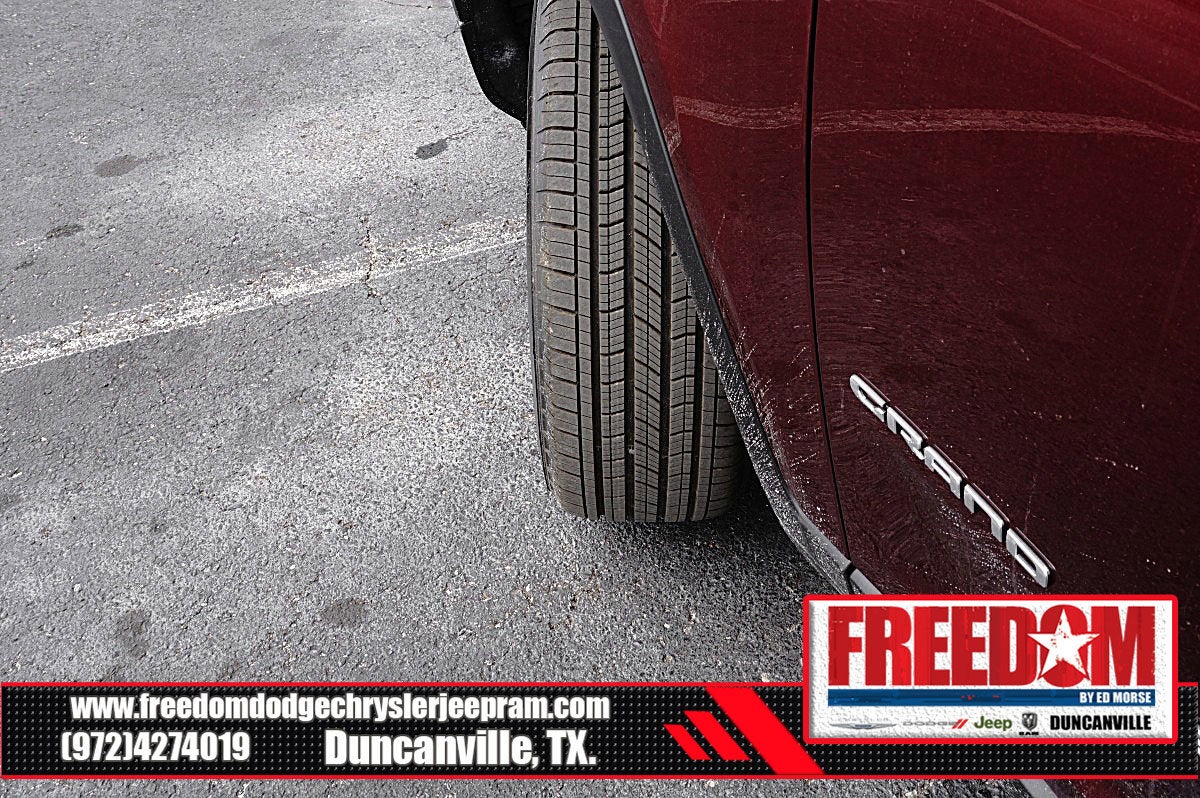 Big cash and no payments for 90 days! Our only Dealership add is GREAT CUSTOMER SERVICE. Real Deals, No Games and No Surprises. Price Includes only Rebates EVERYONE Qualifies for. We Make it Easy No Games. Equipped with Quick Order Package 22J Laredo X (115V Auxiliary Power Outlet, Heated Front Seats, Heated Steering Wheel, Power Liftgate, Power Sunroof, Rain Sensitive Windshield Wipers, Remote Start System, Selectable Tire Fill Alert, and Wireless Charging Pad), 3.45 Rear Axle Ratio, 4-Wheel Disc Brakes, 4G LTE Wi-Fi Hot Spot, 6 Speakers, ABS brakes, Air Conditioning, Alloy wheels, AM/FM radio: SiriusXM, Anti-whiplash front head restraints, Apple CarPlay, AppLink/Apple CarPlay and Android Auto, Automatic temperature control, Auxiliary Battery, Brake assist, Bumpers: body-color, Cloth Seats, Compass, Connectivity - US/Canada, Delay-off headlights, Disassociated Touchscreen Display, Driver door bin, Driver vanity mirror, Dual front impact airbags, Dual front side impact airbags, Electronic Stability Control, Emergency communication system, For Details, Visit DriveUconnect.com, Four wheel independent suspension, Front anti-roll bar, Front Bucket Seats, Front Center Armrest w/Storage, Front dual zone A/C, Front License Plate Bracket, Front reading lights, Fully automatic headlights, Global Telematics Box Module (TBM), Gloss Black Exterior Mirrors, Google Android Auto, GPS Antenna Input, Heated door mirrors, Heated Exterior Mirrors, Illuminated entry, Integrated Center Stack Radio, Integrated Voice Command with Bluetooth®, Knee airbag, Low tire pressure warning, Manual Folding Exterior Mirrors, Normal Duty Suspension, Occupant sensing airbag, Outside temperature display, Overhead airbag, Overhead console, Panic alarm, ParkView Rear Back-Up Camera, Passenger door bin, Passenger vanity mirror, Power door mirrors, Power driver seat, Power steering, Power windows, Radio data system, Radio: Uconnect 5 with 8.4 Display, Rear anti-roll bar, Rear reading lights, Rear window defroster, Rear window wiper, Remote keyless entry, Security system, Speed control, Speed-Sensitive Wipers, Split folding rear seat, Spoiler, Steering wheel mounted audio controls, Tachometer, Telescoping steering wheel, Tilt steering wheel, Traction control, Trip computer, USB Host Flip, Variably intermittent wipers, Voltmeter, and Wheels: 18 x 8.0 Fully Painted Aluminum Freedom uses very reasonable effort to ensure the accuracy of information, we are not responsible for any errors or omissions contained on these pages. Please verify any information in question with Freedom Chrysler Dodge Jeep Ram * Images, prices, and options shown, including vehicle color, trim, options, pricing and other specifications are subject to availability, incentive offerings, current pricing and credit worthiness. * MSRP is the Manufacturer's Suggested Retail Price (MSRP) of the vehicle. It does not include any taxes, fees or other charges. Pricing and availability may vary based on a variety of factors, including options, dealer, specials, fees, and financing qualifications. Consult your dealer for actual price and complete details. Vehicles shown may have optional equipment at an additional cost. * The estimated selling price that appears after calculating dealer offers is for informational purposes, only. You may not qualify for the offers, incentives, discounts, or financing. Not all rebates are compatible with each other. Offers, incentives, discounts, or financing are subject to expiration and other restrictions. See dealer for qualifications and complete details. * In transit means that vehicles have been built but have not yet arrived at your dealer. Images shown may not necessarily represent identical vehicles in transit to the dealership. See dealer for actual price, payments and complete details. EPA Estimates are only estimating. Tax, title, license (unless itemize