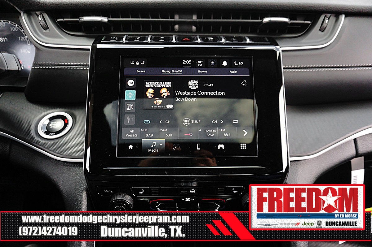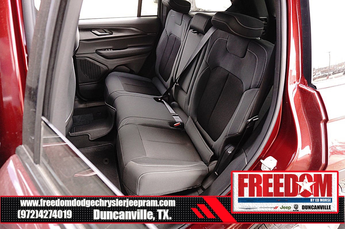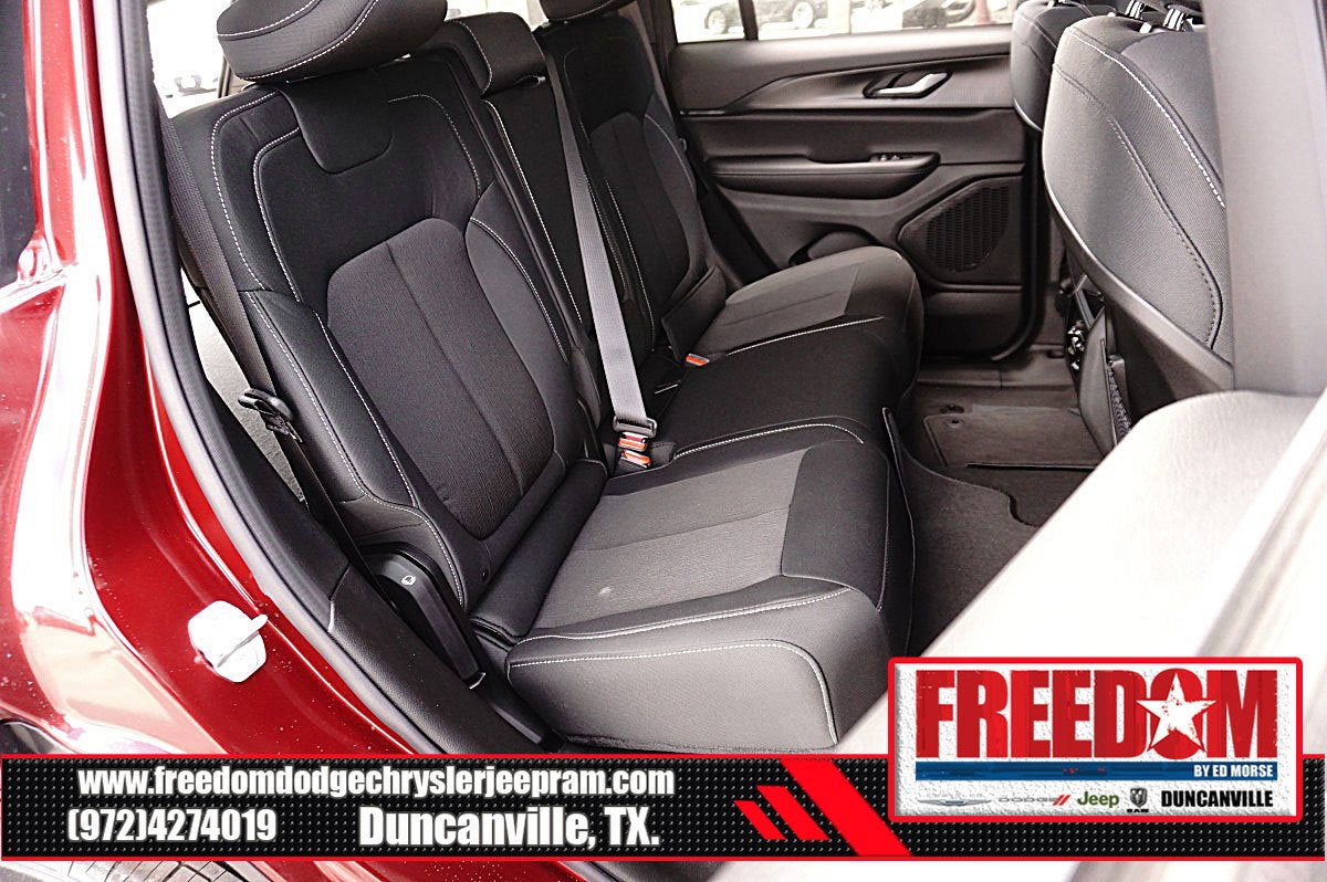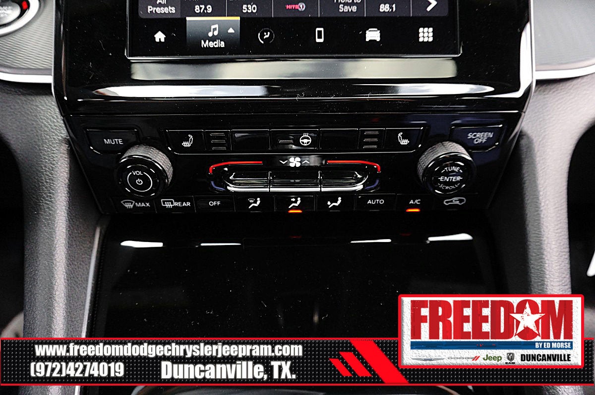 Big cash and no payments for 90 days! Our only Dealership add is GREAT CUSTOMER SERVICE. Real Deals, No Games and No Surprises. Price Includes only Rebates EVERYONE Qualifies for. We Make it Easy No Games. Equipped with Quick Order Package 22J Laredo X (115V Auxiliary Power Outlet, Heated Front Seats, Heated Steering Wheel, Power Liftgate, Power Sunroof, Rain Sensitive Windshield Wipers, Remote Start System, Selectable Tire Fill Alert, and Wireless Charging Pad), 3.45 Rear Axle Ratio, 4-Wheel Disc Brakes, 4G LTE Wi-Fi Hot Spot, 6 Speakers, ABS brakes, Air Conditioning, Alloy wheels, AM/FM radio: SiriusXM, Anti-whiplash front head restraints, Apple CarPlay, AppLink/Apple CarPlay and Android Auto, Automatic temperature control, Auxiliary Battery, Brake assist, Bumpers: body-color, Cloth Seats, Compass, Connectivity - US/Canada, Delay-off headlights, Disassociated Touchscreen Display, Driver door bin, Driver vanity mirror, Dual front impact airbags, Dual front side impact airbags, Electronic Stability Control, Emergency communication system, For Details, Visit DriveUconnect.com, Four wheel independent suspension, Front anti-roll bar, Front Bucket Seats, Front Center Armrest w/Storage, Front dual zone A/C, Front License Plate Bracket, Front reading lights, Fully automatic headlights, Global Telematics Box Module (TBM), Gloss Black Exterior Mirrors, Google Android Auto, GPS Antenna Input, Heated door mirrors, Heated Exterior Mirrors, Illuminated entry, Integrated Center Stack Radio, Integrated Voice Command with Bluetooth®, Knee airbag, Low tire pressure warning, Manual Folding Exterior Mirrors, Normal Duty Suspension, Occupant sensing airbag, Outside temperature display, Overhead airbag, Overhead console, Panic alarm, ParkView Rear Back-Up Camera, Passenger door bin, Passenger vanity mirror, Power door mirrors, Power driver seat, Power steering, Power windows, Radio data system, Radio: Uconnect 5 with 8.4 Display, Rear anti-roll bar, Rear reading lights, Rear window defroster, Rear window wiper, Remote keyless entry, Security system, Speed control, Speed-Sensitive Wipers, Split folding rear seat, Spoiler, Steering wheel mounted audio controls, Tachometer, Telescoping steering wheel, Tilt steering wheel, Traction control, Trip computer, USB Host Flip, Variably intermittent wipers, Voltmeter, and Wheels: 18 x 8.0 Fully Painted Aluminum Freedom uses very reasonable effort to ensure the accuracy of information, we are not responsible for any errors or omissions contained on these pages. Please verify any information in question with Freedom Chrysler Dodge Jeep Ram * Images, prices, and options shown, including vehicle color, trim, options, pricing and other specifications are subject to availability, incentive offerings, current pricing and credit worthiness. * MSRP is the Manufacturer's Suggested Retail Price (MSRP) of the vehicle. It does not include any taxes, fees or other charges. Pricing and availability may vary based on a variety of factors, including options, dealer, specials, fees, and financing qualifications. Consult your dealer for actual price and complete details. Vehicles shown may have optional equipment at an additional cost. * The estimated selling price that appears after calculating dealer offers is for informational purposes, only. You may not qualify for the offers, incentives, discounts, or financing. Not all rebates are compatible with each other. Offers, incentives, discounts, or financing are subject to expiration and other restrictions. See dealer for qualifications and complete details. * In transit means that vehicles have been built but have not yet arrived at your dealer. Images shown may not necessarily represent identical vehicles in transit to the dealership. See dealer for actual price, payments and complete details. EPA Estimates are only estimating. Tax, title, license (unless itemize