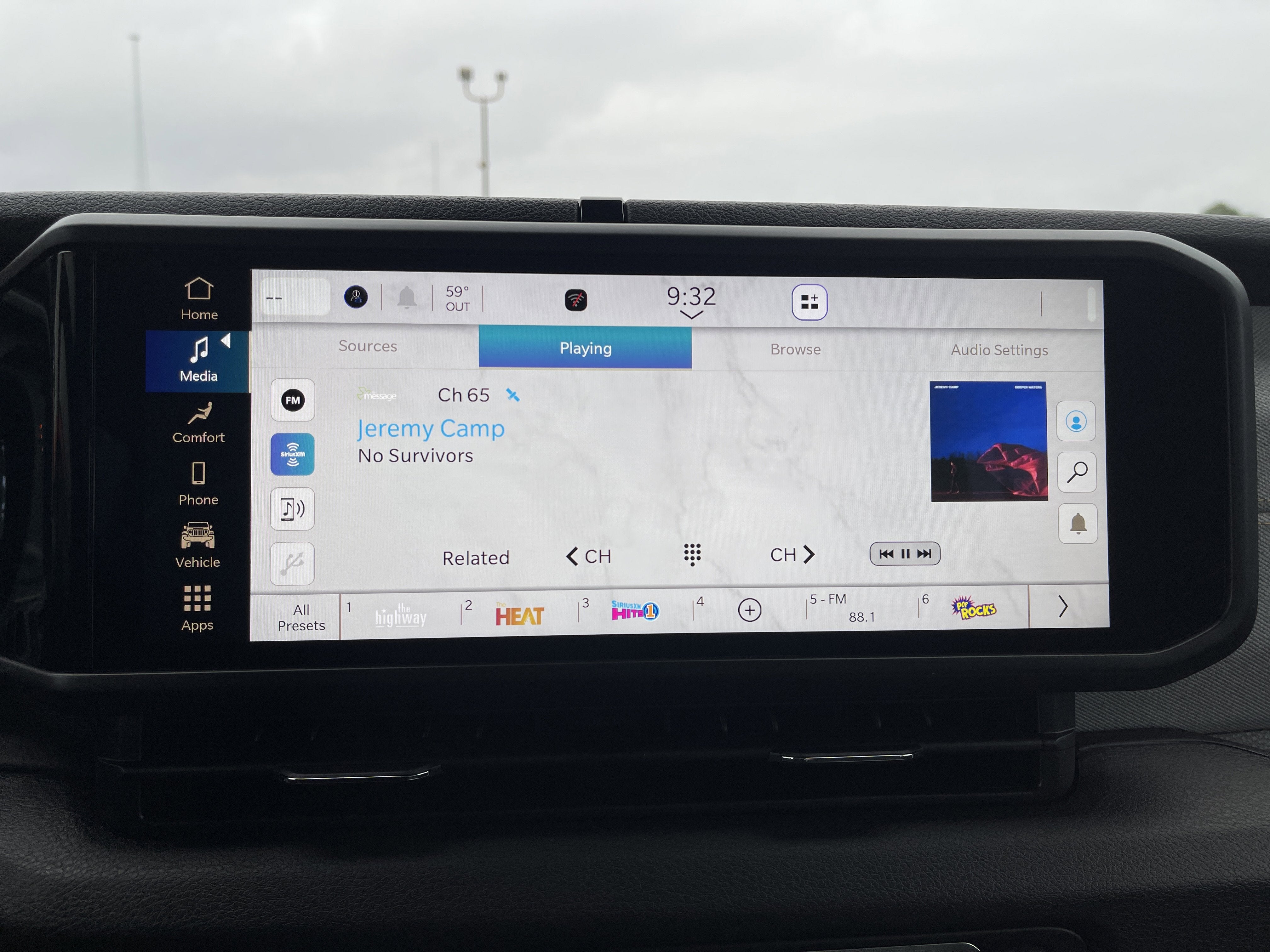 - Radio w/Seek-Scan, Clock, Speed Compensated Volume Control, Aux Audio Input Jack, Steering Wheel Controls, Voice Activation, Radio Data System and Uconnect External Memory Control