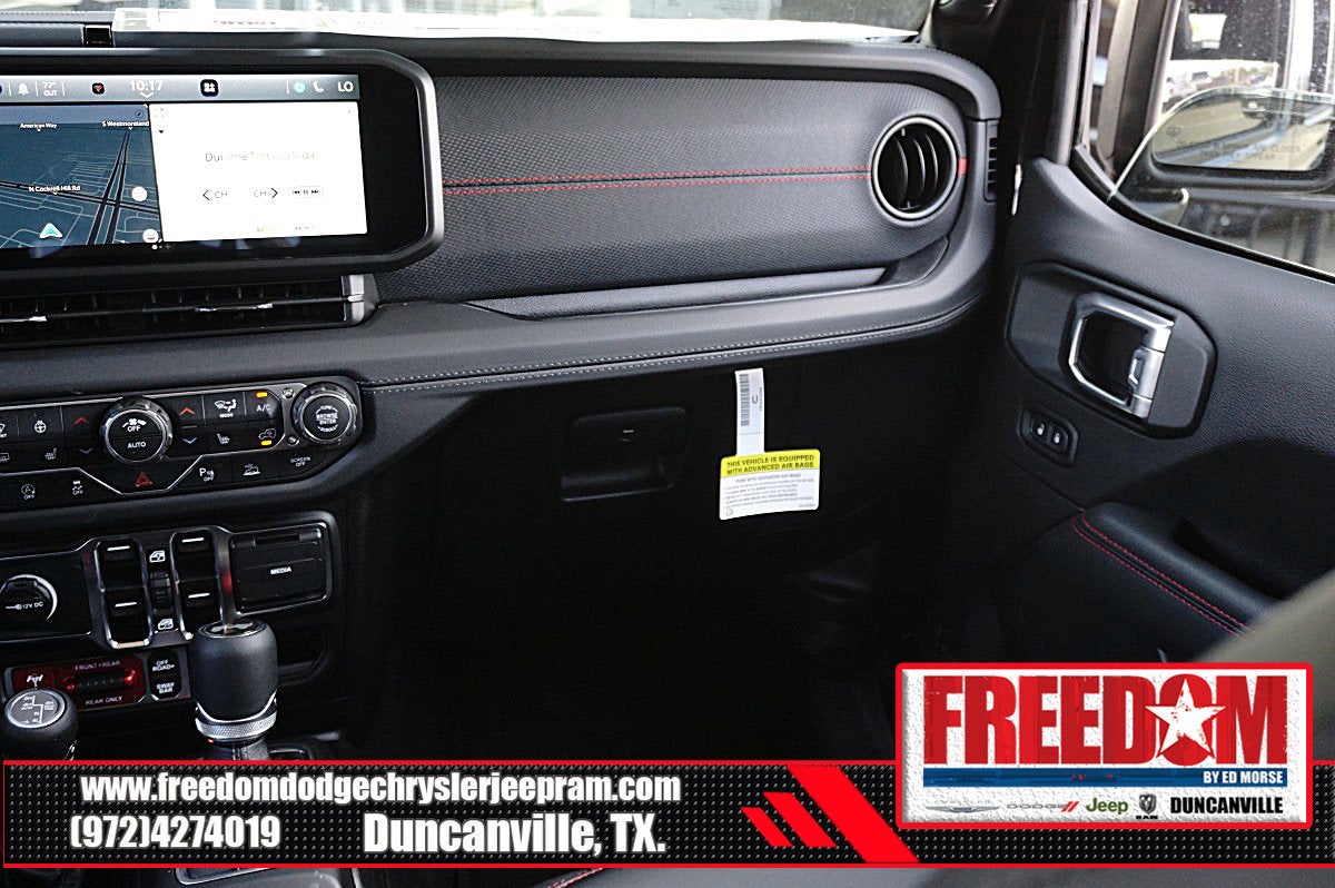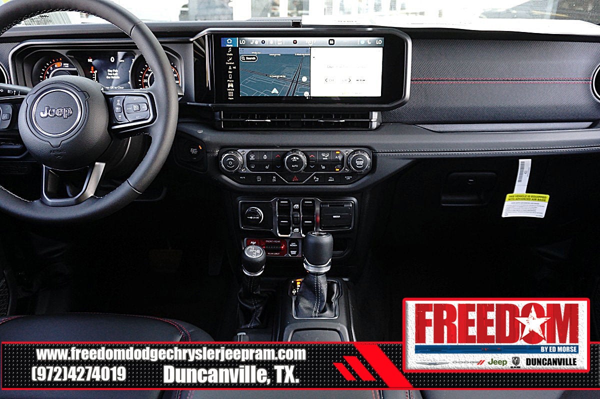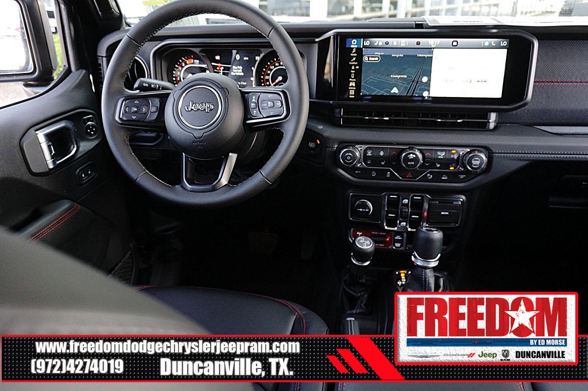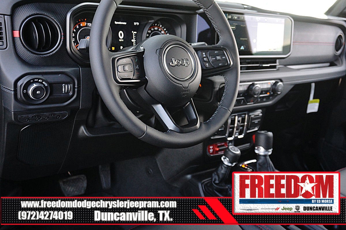 Big cash and no payments for 90 days! Our only Dealership add is GREAT CUSTOMER SERVICE. Real Deals, No Games and No Surprises. Price Includes only Rebates EVERYONE Qualifies for. We Make it Easy No Games. Equipped with Quick Order Package 24Y Rubicon X (12.3 Touchscreen Display, 4G LTE Wi-Fi Hot Spot, Acoustic Front Seat Area Carpet, Acoustic Laminated Front Door Glass, Alpine Premium Audio System, Apple CarPlay, Auto High Beam Headlamp Control, Auto-Dimming Rear-View Mirror, Blind Spot and Cross Path Detection, Body Color 3-Piece Hard Top, Body Color Rubicon Highline Flare, Connected Travel and Traffic Services, Connectivity - US/Canada, Freedom Panel Storage Bag, Google Android Auto, HD Radio, Heated Front Seats, Heated Steering Wheel, Integrated Off-Road Camera, Integrated Voice Command with Bluetooth®, Leather Wrapped Park Brake Handle, Leather Wrapped Shift Knob, MOPAR Hardtop Headliner, Nappa Leather Seats, No Soft Top, ParkSense Rear Park Assist System, Power 4-Way Driver Lumbar Adjust, Power 4-Way Passenger Lumbar Adjust, Power Adjust 8-Way Driver Seat, Power Adjust 8-Way Front Passenger Seat, Premium Door Trim Panel, Radio: Uconnect 5 Navigation with 12.3 Display, Rear Window Defroster, Rear Window Wiper/Washer, SiriusXM with 360L, Steel Front Bumper, Steel Rear Bumper, and Universal Garage Door Opener), Steel Performance Hood Package (Performance Hood), Trailer Tow Prep Package, 35 Tire Suspension, 4-Wheel Disc Brakes, 8 Speakers, ABS brakes, Air Conditioning, Alloy wheels, AM/FM radio: SiriusXM with 360L, Apple CarPlay/Android Auto, Automatic temperature control, Aux Battery, Auxiliary Switches, Brake assist, Class II Receiver Hitch, Cloth Low-Back Bucket Seats, Compass, Delay-off headlights, Driver door bin, Driver vanity mirror, Dual front impact airbags, Dual front side impact airbags, Electronic Stability Control, Emergency communication system: Jeep Connect, For More Info, Call 800-643-2112, Front anti-roll bar, Front Bucket Seats, Front Center Armrest w/Storage, Front dual zone A/C, Front fog lights, Front License Plate Bracket, Front reading lights, Fully automatic headlights, Heated door mirrors, Illuminated entry, Integrated Center Stack Radio, Integrated roll-over protection, Low tire pressure warning, MOPAR All-Weather Floor Mats, MOPAR Hinge-Gate Reinforcement, Non-Lock Fuel Cap Without Discriminator, Occupant sensing airbag, Outside temperature display, Overhead airbag, Panic alarm, ParkView Rear Back-Up Camera, Passenger door bin, Passenger vanity mirror, Performance Suspension, Power door mirrors, Power steering, Power windows, Radio data system, Radio: Uconnect 5 with 12.3 Display, Rear anti-roll bar, Rear reading lights, Remote keyless entry, Security system, SiriusXM Radio Service, Speed control, Split folding rear seat, Steering wheel mounted audio controls, Stop-Start Dual Battery System, Tachometer, Telescoping steering wheel, Tilt steering wheel, Traction control, Trip computer, Variably intermittent wipers, Voltmeter, Wheels: 17 x 7.5 Machined/Painted Black, and Wheels: 17 x 8 Machined with Black Pockets Freedom uses very reasonable effort to ensure the accuracy of information, we are not responsible for any errors or omissions contained on these pages. Please verify any information in question with Freedom Chrysler Dodge Jeep Ram * Images, prices, and options shown, including vehicle color, trim, options, pricing and other specifications are subject to availability, incentive offerings, current pricing and credit worthiness. * MSRP is the Manufacturer's Suggested Retail Price (MSRP) of the vehicle. It does not include any taxes, fees or other charges. Pricing and availability may vary based on a variety of factors, Price includes: $1000 - 2026 National Retail Bonus Cash . Exp. 04/30/2026 $1000 - 2026 National Stellantis Loyalty Bonus Cash . Exp. 04/30/2026 $500 - 2026 National 2026 Military Bonus Cash . Exp. 01/0