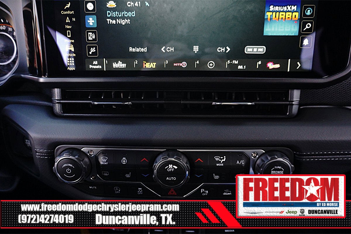 Big cash and no payments for 90 days! Our only Dealership add is GREAT CUSTOMER SERVICE. Real Deals, No Games and No Surprises. Price Includes only Rebates EVERYONE Qualifies for. We Make it Easy No Games. Equipped with Quick Order Package 24Y Rubicon X (12.3 Touchscreen Display, 4G LTE Wi-Fi Hot Spot, Acoustic Front Seat Area Carpet, Acoustic Laminated Front Door Glass, Alpine Premium Audio System, Apple CarPlay, Auto High Beam Headlamp Control, Auto-Dimming Rear-View Mirror, Blind Spot and Cross Path Detection, Body Color 3-Piece Hard Top, Body Color Rubicon Highline Flare, Connected Travel and Traffic Services, Connectivity - US/Canada, Freedom Panel Storage Bag, Google Android Auto, HD Radio, Heated Front Seats, Heated Steering Wheel, Integrated Off-Road Camera, Integrated Voice Command with Bluetooth®, Leather Wrapped Park Brake Handle, Leather Wrapped Shift Knob, MOPAR Hardtop Headliner, Nappa Leather Seats, No Soft Top, ParkSense Rear Park Assist System, Power 4-Way Driver Lumbar Adjust, Power 4-Way Passenger Lumbar Adjust, Power Adjust 8-Way Driver Seat, Power Adjust 8-Way Front Passenger Seat, Premium Door Trim Panel, Radio: Uconnect 5 Navigation with 12.3 Display, Rear Window Defroster, Rear Window Wiper/Washer, SiriusXM with 360L, Steel Front Bumper, Steel Rear Bumper, and Universal Garage Door Opener), Steel Performance Hood Package (Performance Hood), Trailer Tow and Auxiliary Switch Group (Auxiliary Switches and Class II Receiver Hitch), Trailer Tow Prep Package, 35 Tire Suspension, 4-Wheel Disc Brakes, 8 Speakers, ABS brakes, Air Conditioning, Alloy wheels, AM/FM radio: SiriusXM with 360L, Apple CarPlay/Android Auto, Automatic temperature control, Aux Battery, Brake assist, Cloth Low-Back Bucket Seats, Compass, Delay-off headlights, Driver door bin, Driver vanity mirror, Dual front impact airbags, Dual front side impact airbags, Electronic Stability Control, Emergency communication system: Jeep Connect, For More Info, Call 800-643-2112, Front anti-roll bar, Front Bucket Seats, Front Center Armrest w/Storage, Front dual zone A/C, Front fog lights, Front License Plate Bracket, Front reading lights, Fully automatic headlights, Heated door mirrors, Illuminated entry, Integrated Center Stack Radio, Integrated roll-over protection, Low tire pressure warning, MOPAR All-Weather Floor Mats, MOPAR Hinge-Gate Reinforcement, Non-Lock Fuel Cap Without Discriminator, Occupant sensing airbag, Outside temperature display, Overhead airbag, Panic alarm, ParkView Rear Back-Up Camera, Passenger door bin, Passenger vanity mirror, Performance Suspension, Power door mirrors, Power steering, Power windows, Radio data system, Radio: Uconnect 5 with 12.3 Display, Rear anti-roll bar, Rear reading lights, Remote keyless entry, Security system, SiriusXM Radio Service, Speed control, Split folding rear seat, Steering wheel mounted audio controls, Stop-Start Dual Battery System, Tachometer, Telescoping steering wheel, Tilt steering wheel, Traction control, Trip computer, Variably intermittent wipers, Voltmeter, Warn Winch, Wheels: 17 x 7.5 Machined/Painted Black, and Wheels: 17 x 8 Machined with Black Pockets Freedom uses very reasonable effort to ensure the accuracy of information, we are not responsible for any errors or omissions contained on these pages. Please verify any information in question with Freedom Chrysler Dodge Jeep Ram * Images, prices, and options shown, including vehicle color, trim, options, pricing and other specifications are subject to availability, incentive offerings, current pricing and credit worthiness. * MSRP is the Manufacturer's Suggested Retail Price (MSRP) of the vehicle. It does not include any taxes, fees or other charges Price includes: $1000 - 2026 National Retail Bonus Cash . Exp. 03/31/2026 $1000 - 2026 National Stellantis Loyalty Bonus Cash . Exp. 03/31/2026 $500 - 2026 National 2026 Military Bonus Cash . Exp. 01/0