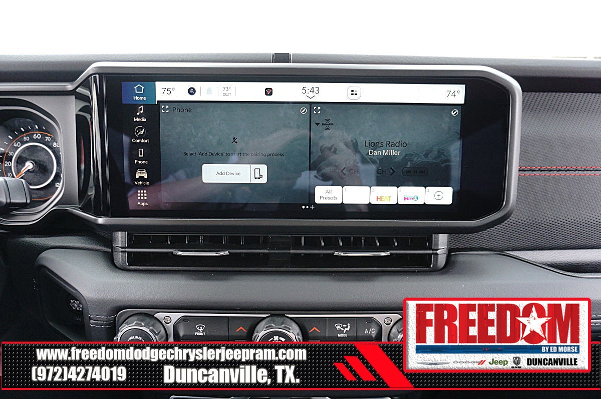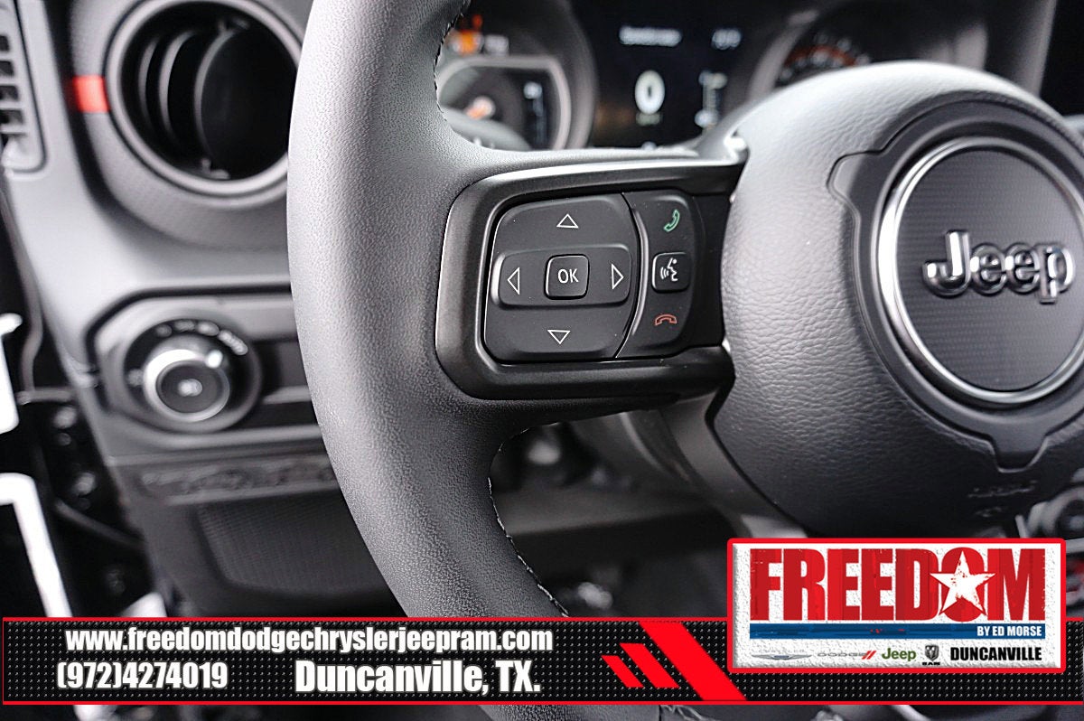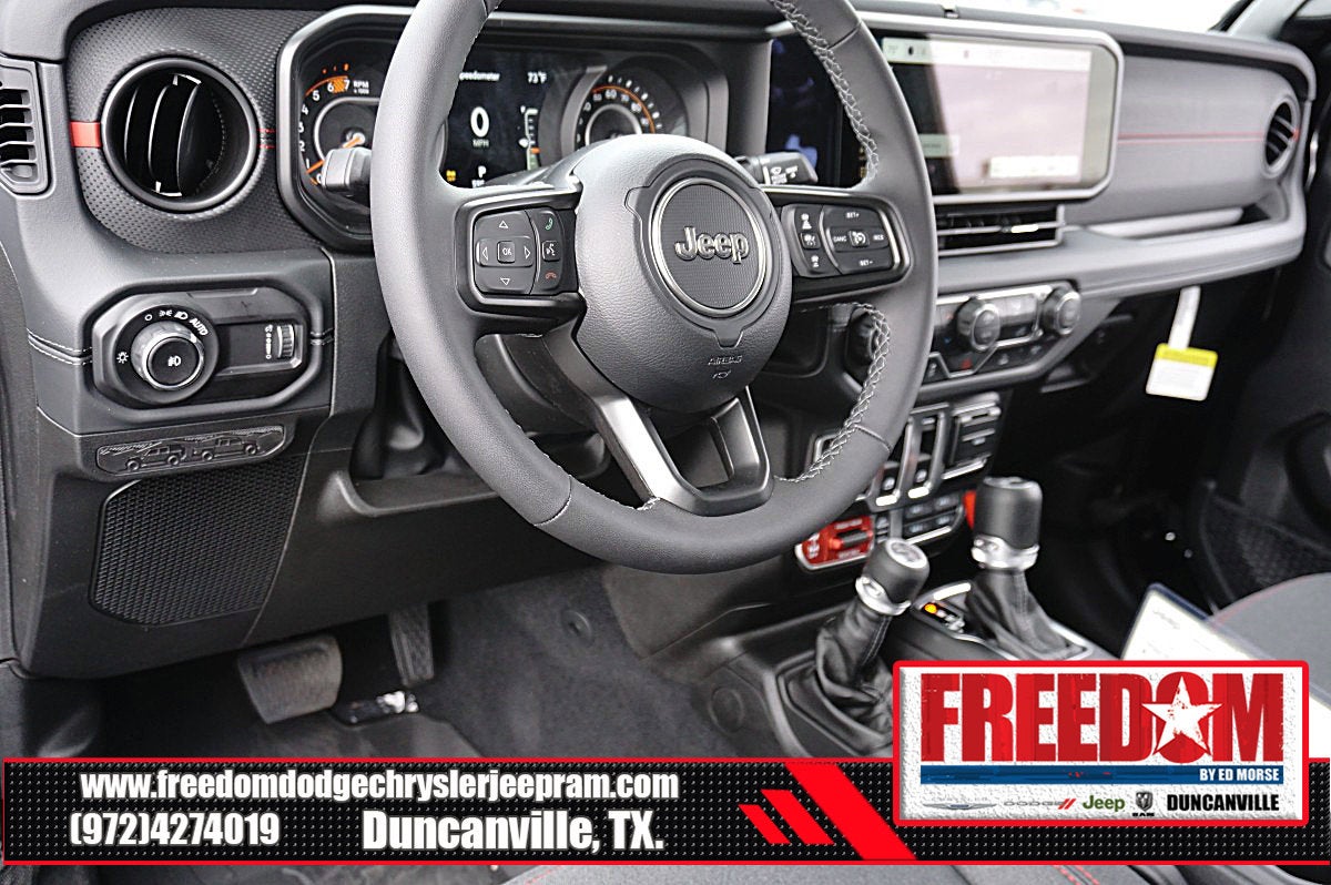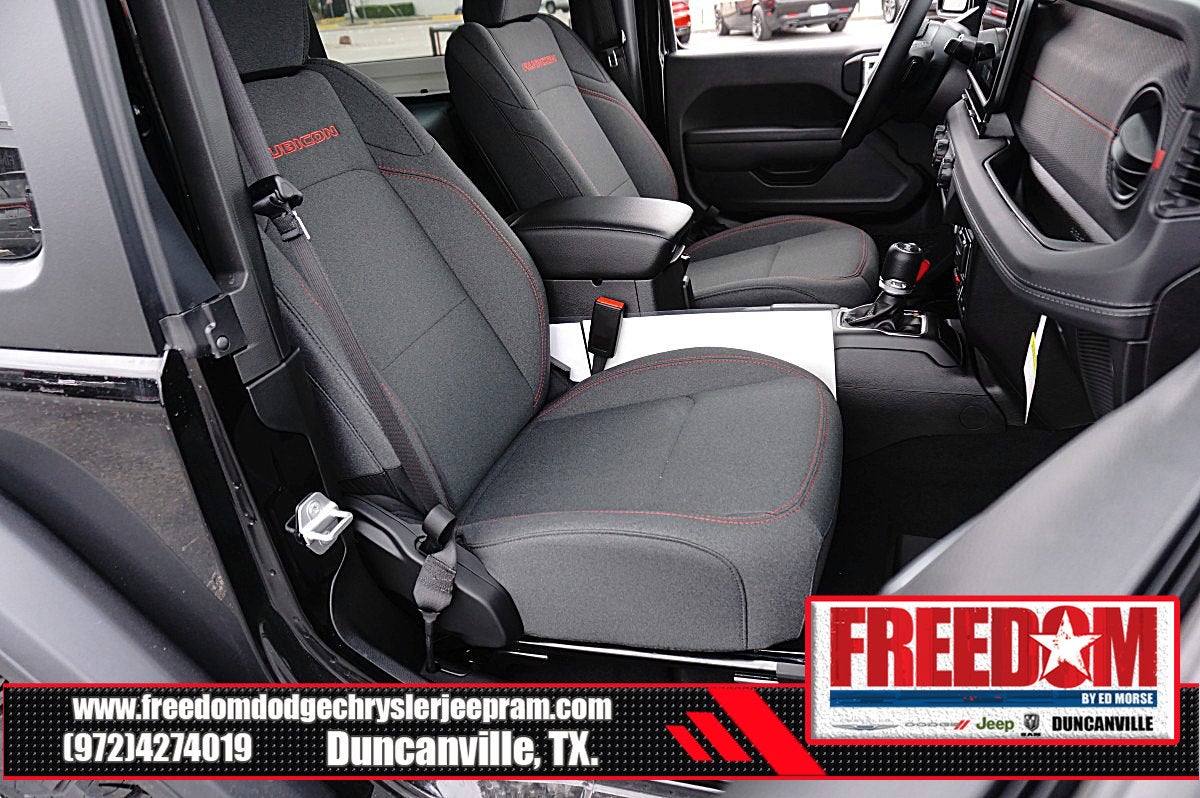 Big cash and no payments for 90 days! Our only Dealership add is GREAT CUSTOMER SERVICE. Real Deals, No Games and No Surprises. Price Includes only Rebates EVERYONE Qualifies for. We Make it Easy No Games. Equipped with Quick Order Package 22R Rubicon, 12.3 Touchscreen Display, 4-Wheel Disc Brakes, 4.10 Rear Axle Ratio, 4G LTE Wi-Fi Hot Spot, 8 Speakers, ABS brakes, Air Conditioning, Alloy wheels, AM/FM radio: SiriusXM with 360L, Apple CarPlay, Apple CarPlay/Android Auto, Automatic temperature control, Aux Battery, Auxiliary Switches, Black 3-Piece Hard Top, Brake assist, Class II Receiver Hitch, Cloth Low-Back Bucket Seats, Compass, Connectivity - US/Canada, Delay-off headlights, Driver door bin, Driver vanity mirror, Dual front impact airbags, Dual front side impact airbags, Electronic Stability Control, Emergency communication system: Jeep Connect, For More Info, Call 800-643-2112, Freedom Panel Storage Bag, Front anti-roll bar, Front Bucket Seats, Front Center Armrest w/Storage, Front dual zone A/C, Front fog lights, Front License Plate Bracket, Front reading lights, Fully automatic headlights, Google Android Auto, Heated door mirrors, Illuminated entry, Integrated Center Stack Radio, Integrated roll-over protection, Low tire pressure warning, MOPAR All-Weather Floor Mats, No Soft Top, Non-Lock Fuel Cap Without Discriminator, Occupant sensing airbag, Outside temperature display, Overhead airbag, Panic alarm, ParkView Rear Back-Up Camera, Passenger door bin, Passenger vanity mirror, Performance Suspension, Power door mirrors, Power steering, Power windows, Radio data system, Radio: Uconnect 5 with 12.3 Display, Rear anti-roll bar, Rear reading lights, Rear Window Defroster, Rear Window Wiper/Washer, Remote keyless entry, Security system, SiriusXM Radio Service, SiriusXM with 360L, Speed control, Steering wheel mounted audio controls, Stop-Start Dual Battery System, Tachometer, Telescoping steering wheel, Tilt steering wheel, Traction control, Trip computer, Variably intermittent wipers, Voltmeter, and Wheels: 17 x 7.5 Machined/Painted Black Freedom uses very reasonable effort to ensure the accuracy of information, we are not responsible for any errors or omissions contained on these pages. Please verify any information in question with Freedom Chrysler Dodge Jeep Ram * Images, prices, and options shown, including vehicle color, trim, options, pricing and other specifications are subject to availability, incentive offerings, current pricing and credit worthiness. * MSRP is the Manufacturer's Suggested Retail Price (MSRP) of the vehicle. It does not include any taxes, fees or other charges. Pricing and availability may vary based on a variety of factors, including options, dealer, specials, fees, and financing qualifications. Consult your dealer for actual price and complete details. Vehicles shown may have optional equipment at an additional cost. * The estimated selling price that appears after calculating dealer offers is for informational purposes, only. You may not qualify for the offers, incentives, discounts, or financing. Not all rebates are compatible with each other. Offers, incentives, discounts, or financing are subject to expiration and other restrictions. See dealer for qualifications and complete details. * In transit means that vehicles have been built but have not yet arrived at your dealer. Images shown may not necessarily represent identical vehicles in transit to the dealership. See dealer for actual price, payments and complete details. EPA Estimates are only estimating. Tax, title, license (unless itemized above) are extra. Not available with special finance, lease and some other offers. Price includes: $1000 - 2026 National Stellantis Loyalty Bonus Cash . Exp. 03/31/2026 $500 - 2026 National 2026 Military Bonus Cash . Exp. 01/04/2027