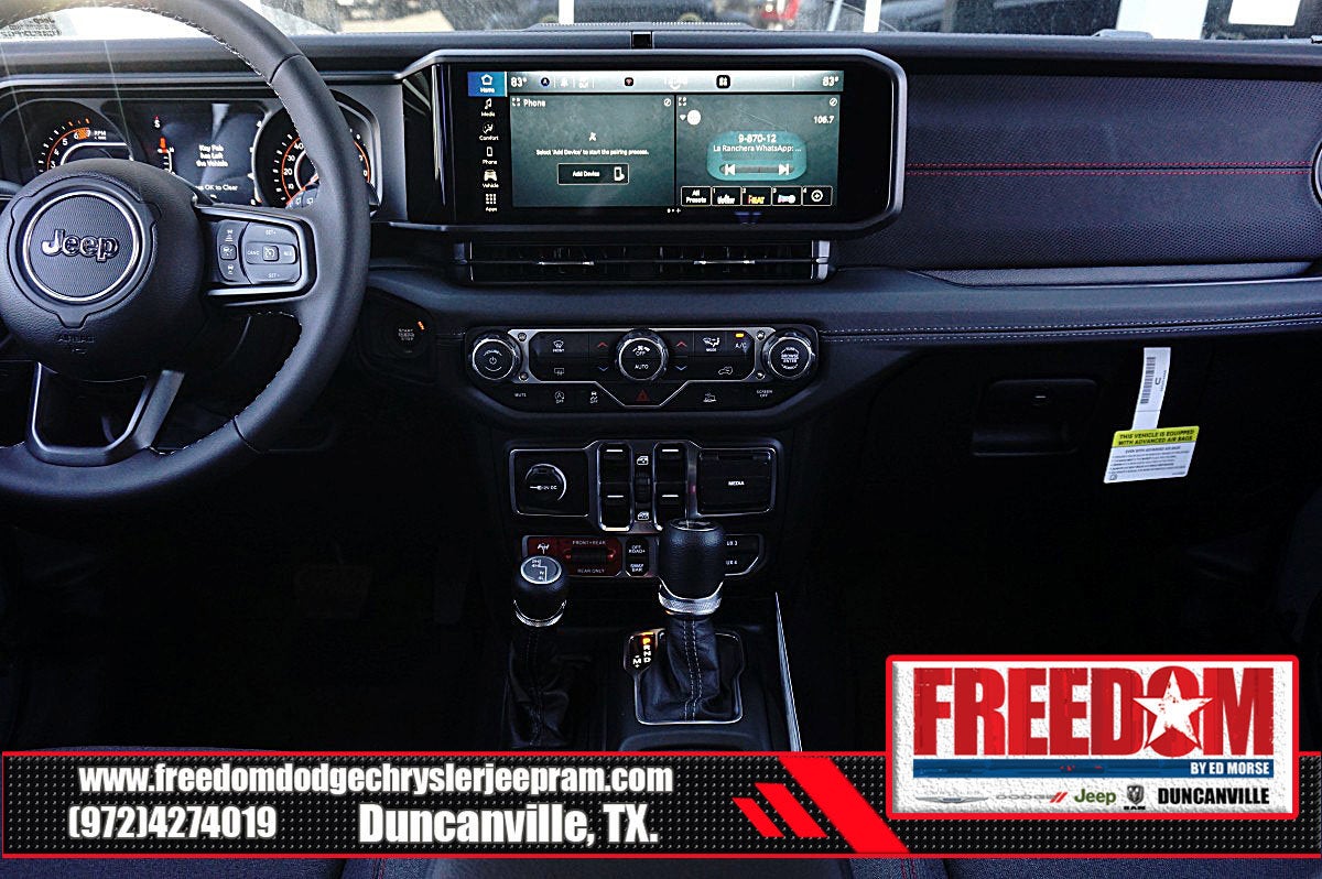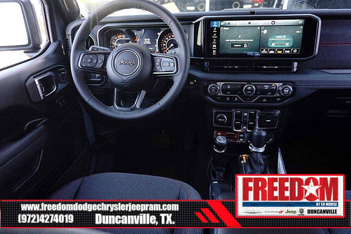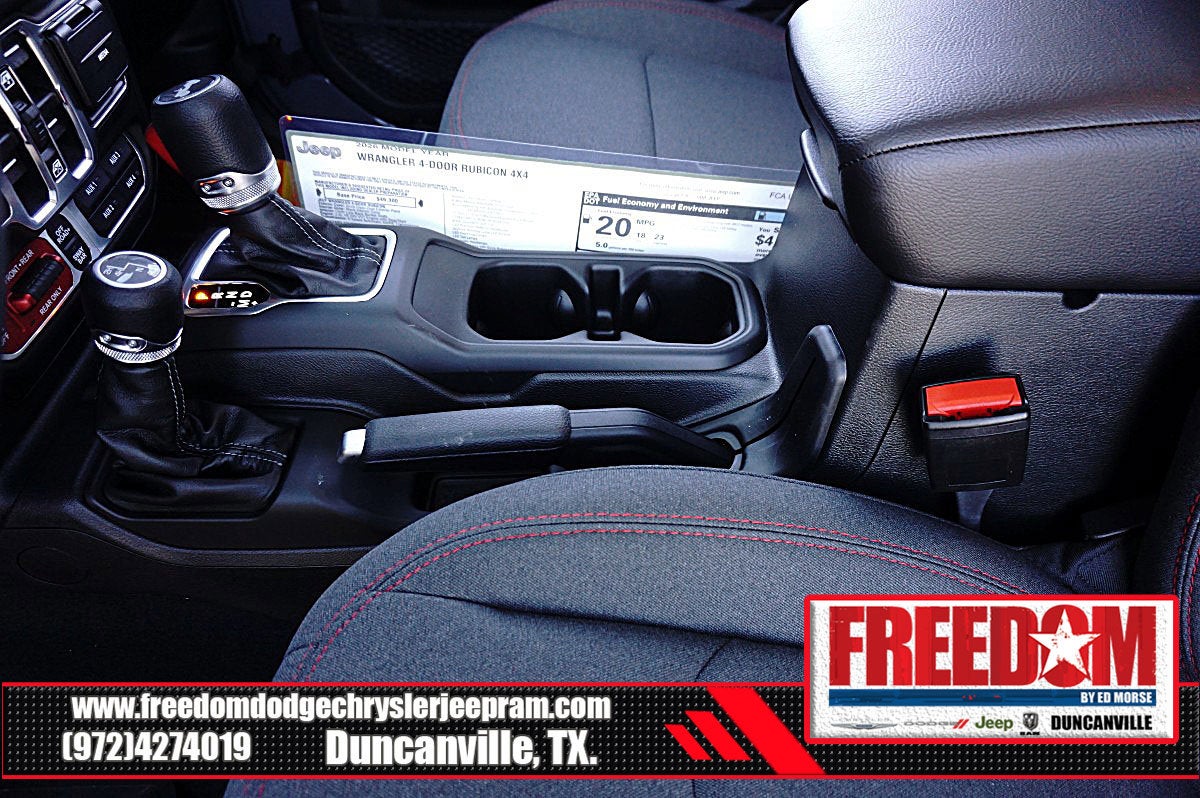 Big cash and no payments for 90 days! Our only Dealership add is GREAT CUSTOMER SERVICE. Real Deals, No Games and No Surprises. Price Includes only Rebates EVERYONE Qualifies for. We Make it Easy No Games. Equipped with Quick Order Package 24R Rubicon, 12.3 Touchscreen Display, 4-Wheel Disc Brakes, 4.10 Rear Axle Ratio, 4G LTE Wi-Fi Hot Spot, 8 Speakers, ABS brakes, Air Conditioning, Alloy wheels, AM/FM radio: SiriusXM with 360L, Apple CarPlay, Apple CarPlay/Android Auto, Automatic temperature control, Aux Battery, Auxiliary Switches, Body Color 3-Piece Hard Top, Body Color Rubicon Highline Flare, Brake assist, Class II Receiver Hitch, Cloth Low-Back Bucket Seats, Compass, Connectivity - US/Canada, Delay-off headlights, Driver door bin, Driver vanity mirror, Dual front impact airbags, Dual front side impact airbags, Electronic Stability Control, Emergency communication system: Jeep Connect, For More Info, Call 800-643-2112, Freedom Panel Storage Bag, Front anti-roll bar, Front Bucket Seats, Front Center Armrest w/Storage, Front dual zone A/C, Front fog lights, Front License Plate Bracket, Front reading lights, Fully automatic headlights, Google Android Auto, Heated door mirrors, Illuminated entry, Integrated Center Stack Radio, Integrated roll-over protection, Low tire pressure warning, MOPAR All-Weather Floor Mats, No Soft Top, Non-Lock Fuel Cap Without Discriminator, Occupant sensing airbag, Outside temperature display, Overhead airbag, Panic alarm, ParkView Rear Back-Up Camera, Passenger door bin, Passenger vanity mirror, Performance Suspension, Power door mirrors, Power steering, Power windows, Radio data system, Radio: Uconnect 5 with 12.3 Display, Rear anti-roll bar, Rear reading lights, Rear Window Defroster, Rear Window Wiper/Washer, Remote keyless entry, Security system, SiriusXM Radio Service, SiriusXM with 360L, Speed control, Split folding rear seat, Steering wheel mounted audio controls, Stop-Start Dual Battery System, Tachometer, Telescoping steering wheel, Tilt steering wheel, Traction control, Trip computer, Variably intermittent wipers, Voltmeter, and Wheels: 17 x 7.5 Machined/Painted Black Freedom uses very reasonable effort to ensure the accuracy of information, we are not responsible for any errors or omissions contained on these pages. Please verify any information in question with Freedom Chrysler Dodge Jeep Ram * Images, prices, and options shown, including vehicle color, trim, options, pricing and other specifications are subject to availability, incentive offerings, current pricing and credit worthiness. * MSRP is the Manufacturer's Suggested Retail Price (MSRP) of the vehicle. It does not include any taxes, fees or other charges. Pricing and availability may vary based on a variety of factors, including options, dealer, specials, fees, and financing qualifications. Consult your dealer for actual price and complete details. Vehicles shown may have optional equipment at an additional cost. * The estimated selling price that appears after calculating dealer offers is for informational purposes, only. You may not qualify for the offers, incentives, discounts, or financing. Not all rebates are compatible with each other. Offers, incentives, discounts, or financing are subject to expiration and other restrictions. See dealer for qualifications and complete details. * In transit means that vehicles have been built but have not yet arrived at your dealer. Images shown may not necessarily represent identical vehicles in transit to the dealership. See dealer for actual price, payments and complete details. EPA Estimates are only estimating. Tax, title, license (unless itemized above) are extra. Not available with special finance, lease and some other offers. Price includes: $1500 - 2026 National Stellantis Loyalty Retail Bonus Cash . Exp. 02/02/2026