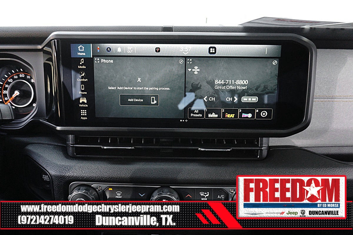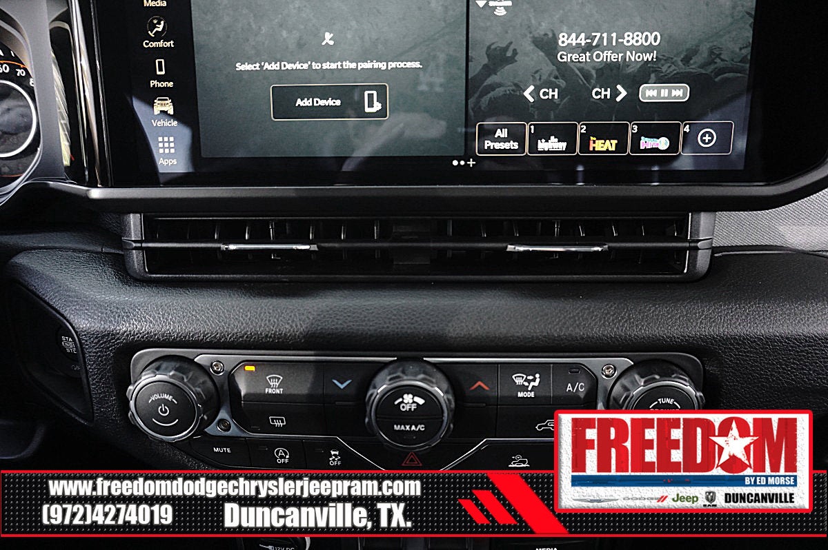 Big cash and no payments for 90 days! Our only Dealership add is GREAT CUSTOMER SERVICE. Real Deals, No Games and No Surprises. Price Includes only Rebates EVERYONE Qualifies for. We Make it Easy No Games. Equipped with Quick Order Package 22B Sport, 12.3 Touchscreen Display, 3.45 Overall Top Gear Ratio, 4-Wheel Disc Brakes, 4G LTE Wi-Fi Hot Spot, 8 Speakers, ABS brakes, Air Conditioning, AM/FM radio: SiriusXM with 360L, Apple CarPlay, Apple CarPlay/Android Auto, Aux Battery, Black 3-Piece Hard Top, Brake assist, Cloth Low-Back Bucket Seats, Compass, Connectivity - US/Canada, Delay-off headlights, Driver door bin, Driver vanity mirror, Dual front impact airbags, Dual front side impact airbags, Electronic Stability Control, For More Info, Call 800-643-2112, Freedom Panel Storage Bag, Front anti-roll bar, Front Bucket Seats, Front Center Armrest w/Storage, Front fog lights, Front reading lights, Google Android Auto, Illuminated entry, Integrated Center Stack Radio, Integrated roll-over protection, Low tire pressure warning, MOPAR All-Weather Floor Mats, Non-Lock Fuel Cap Without Discriminator, Normal Duty Suspension, Occupant sensing airbag, Outside temperature display, Overhead airbag, Panic alarm, ParkView Rear Back-Up Camera, Passenger door bin, Passenger vanity mirror, Power steering, Power windows, Radio data system, Radio: Uconnect 5 with 12.3 Display, Rear anti-roll bar, Rear reading lights, Rear Window Defroster, Rear Window Wiper/Washer, Remote keyless entry, SiriusXM Radio Service, SiriusXM with 360L, Speed control, Steering wheel mounted audio controls, Stop-Start Dual Battery System, Tachometer, Telescoping steering wheel, Tilt steering wheel, Traction control, Trip computer, Variably intermittent wipers, and Wheels: 17 x 7.5 Black Steel Styled Freedom uses very reasonable effort to ensure the accuracy of information, we are not responsible for any errors or omissions contained on these pages. Please verify any information in question with Freedom Chrysler Dodge Jeep Ram * Images, prices, and options shown, including vehicle color, trim, options, pricing and other specifications are subject to availability, incentive offerings, current pricing and credit worthiness. * MSRP is the Manufacturer's Suggested Retail Price (MSRP) of the vehicle. It does not include any taxes, fees or other charges. Pricing and availability may vary based on a variety of factors, including options, dealer, specials, fees, and financing qualifications. Consult your dealer for actual price and complete details. Vehicles shown may have optional equipment at an additional cost. * The estimated selling price that appears after calculating dealer offers is for informational purposes, only. You may not qualify for the offers, incentives, discounts, or financing. Not all rebates are compatible with each other. Offers, incentives, discounts, or financing are subject to expiration and other restrictions. See dealer for qualifications and complete details. * In transit means that vehicles have been built but have not yet arrived at your dealer. Images shown may not necessarily represent identical vehicles in transit to the dealership. See dealer for actual price, payments and complete details. EPA Estimates are only estimating. Tax, title, license (unless itemized above) are extra. Not available with special finance, lease and some other offers. Price includes: $1000 - 2026 National Stellantis Loyalty Bonus Cash . Exp. 04/30/2026 $500 - 2026 National 2026 Military Bonus Cash . Exp. 01/04/2027