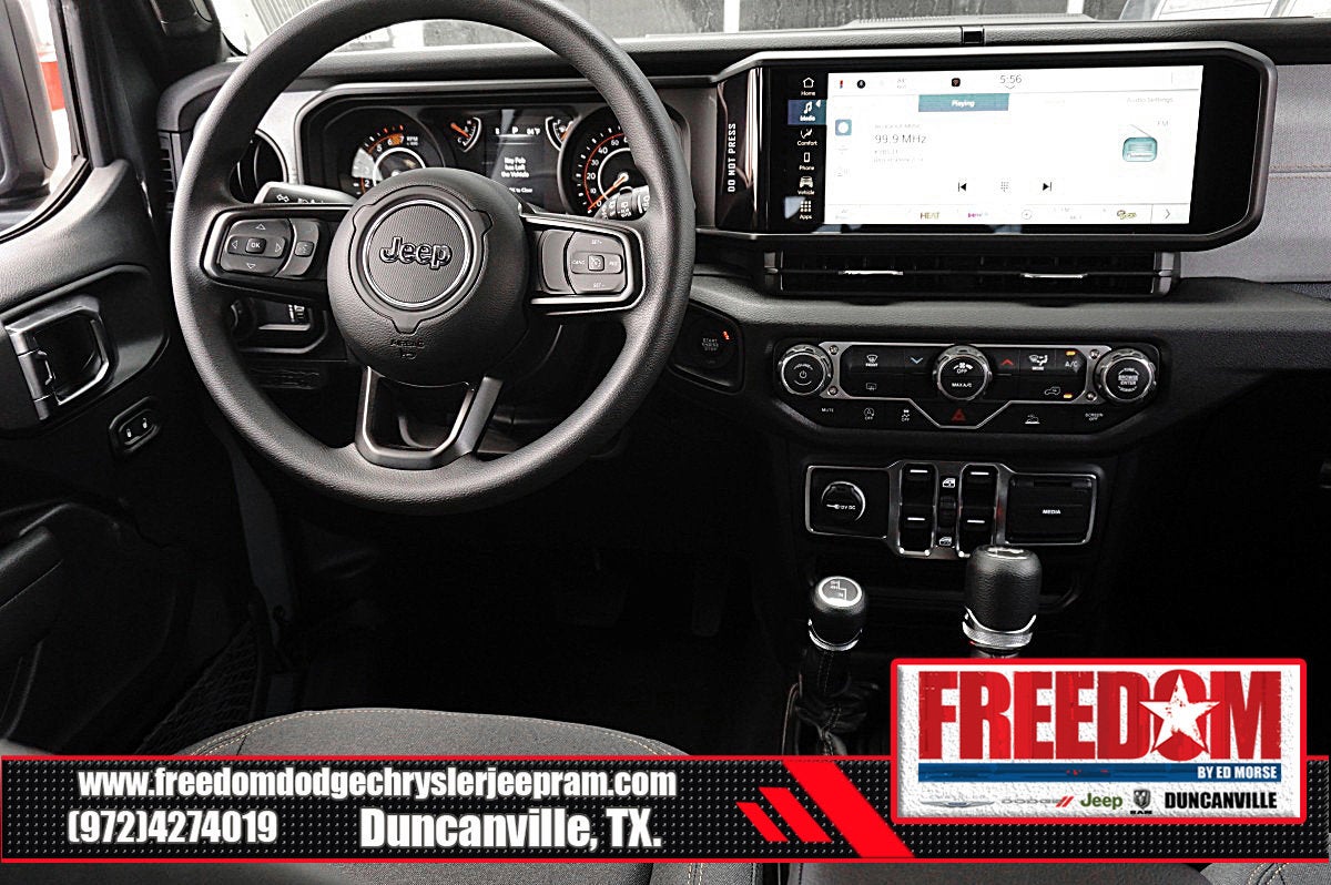 Big cash and no payments for 90 days! Our only Dealership add is GREAT CUSTOMER SERVICE. Real Deals, No Games and No Surprises. Price Includes only Rebates EVERYONE Qualifies for. We Make it Easy No Games. Equipped with Quick Order Package 24B Sport, 12.3 Touchscreen Display, 3.45 Overall Top Gear Ratio, 4-Wheel Disc Brakes, 4G LTE Wi-Fi Hot Spot, 8 Speakers, ABS brakes, Air Conditioning, AM/FM radio: SiriusXM with 360L, Apple CarPlay, Apple CarPlay/Android Auto, Aux Battery, Black 3-Piece Hard Top, Brake assist, Compass, Connectivity - US/Canada, Delay-off headlights, Driver door bin, Driver vanity mirror, Dual front impact airbags, Dual front side impact airbags, Electronic Stability Control, For More Info, Call 800-643-2112, Freedom Panel Storage Bag, Front anti-roll bar, Front Bucket Seats, Front Center Armrest w/Storage, Front fog lights, Front reading lights, Google Android Auto, Illuminated entry, Integrated Center Stack Radio, Integrated roll-over protection, Low tire pressure warning, Manufacture Statement of Origin, MOPAR All-Weather Floor Mats, No Soft Top, Non-Lock Fuel Cap Without Discriminator, Normal Duty Suspension, Occupant sensing airbag, Outside temperature display, Overhead airbag, Panic alarm, ParkView Rear Back-Up Camera, Passenger door bin, Passenger vanity mirror, Power steering, Power windows, Radio data system, Radio: Uconnect 5 with 12.3 Display, Rear anti-roll bar, Rear reading lights, Rear Window Defroster, Rear Window Wiper/Washer, Remote keyless entry, SiriusXM Radio Service, SiriusXM with 360L, Speed control, Split folding rear seat, Steering wheel mounted audio controls, Stop-Start Dual Battery System, Tachometer, Telescoping steering wheel, Tilt steering wheel, Traction control, Trip computer, Variably intermittent wipers, and Wheels: 17 x 7.5 Black Steel Styled Freedom uses very reasonable effort to ensure the accuracy of information, we are not responsible for any errors or omissions contained on these pages. Please verify any information in question with Freedom Chrysler Dodge Jeep Ram * Images, prices, and options shown, including vehicle color, trim, options, pricing and other specifications are subject to availability, incentive offerings, current pricing and credit worthiness. * MSRP is the Manufacturer's Suggested Retail Price (MSRP) of the vehicle. It does not include any taxes, fees or other charges. Pricing and availability may vary based on a variety of factors, including options, dealer, specials, fees, and financing qualifications. Consult your dealer for actual price and complete details. Vehicles shown may have optional equipment at an additional cost. * The estimated selling price that appears after calculating dealer offers is for informational purposes, only. You may not qualify for the offers, incentives, discounts, or financing. Not all rebates are compatible with each other. Offers, incentives, discounts, or financing are subject to expiration and other restrictions. See dealer for qualifications and complete details. * In transit means that vehicles have been built but have not yet arrived at your dealer. Images shown may not necessarily represent identical vehicles in transit to the dealership. See dealer for actual price, payments and complete details. EPA Estimates are only estimating. Tax, title, license (unless itemized above) are extra. Not available with special finance, lease and some other offers. Price includes: $1500 - 2026 National Select Inventory Bonus Cash . Exp. 01/04/2027 $1500 - 2026 National Stellantis Loyalty Retail Bonus Cash . Exp. 02/02/2026 $500 - 2026 Southwest BC Retail Bonus Cash . Exp. 02/02/2026