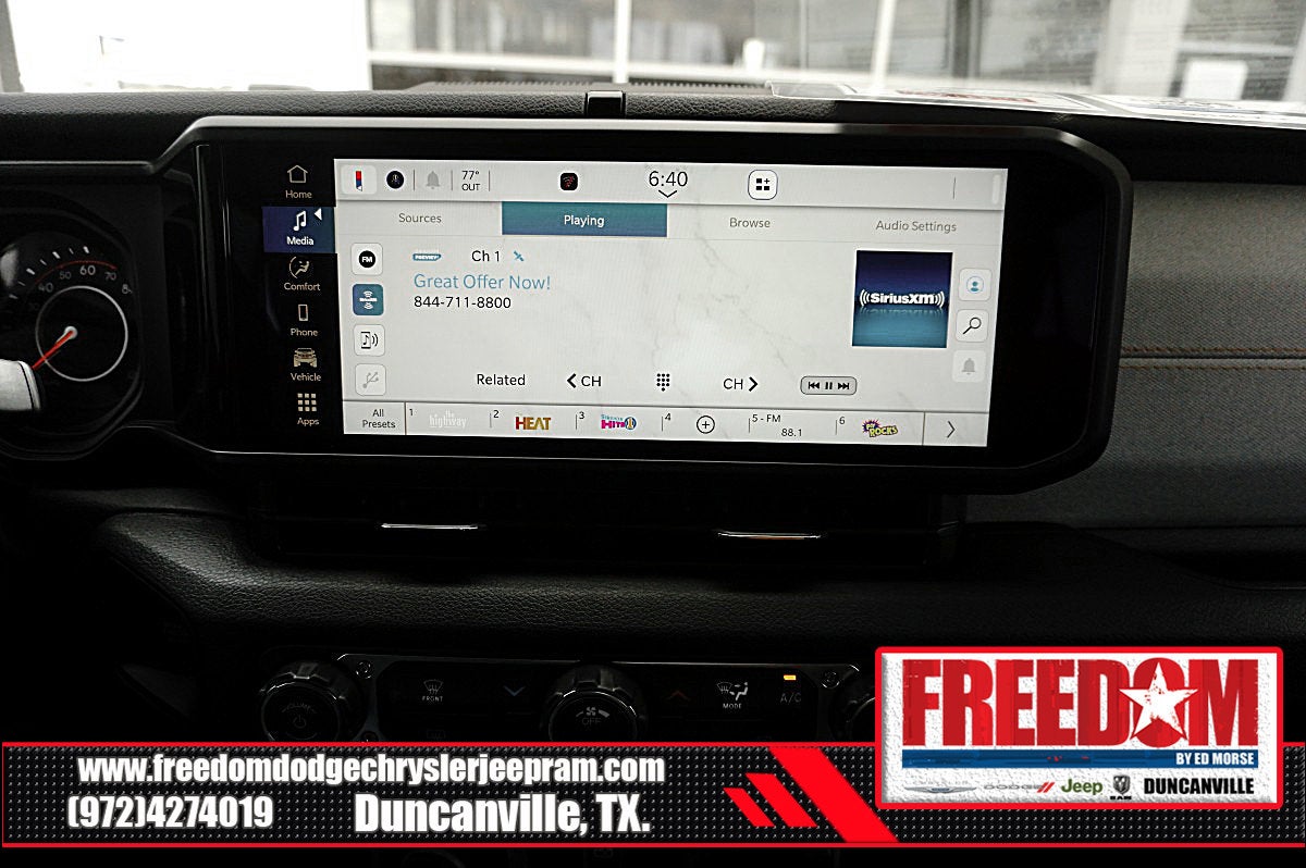 Big cash and no payments for 90 days! Our only Dealership add is GREAT CUSTOMER SERVICE. Real Deals, No Games and No Surprises. Price Includes only Rebates EVERYONE Qualifies for. We Make it Easy No Games. Equipped with Quick Order Package 24B Sport, 12.3 Touchscreen Display, 3.45 Overall Top Gear Ratio, 4-Wheel Disc Brakes, 4G LTE Wi-Fi Hot Spot, 8 Speakers, ABS brakes, Air Conditioning, AM/FM radio: SiriusXM with 360L, Apple CarPlay, Apple CarPlay/Android Auto, Aux Battery, Black 3-Piece Hard Top, Brake assist, Compass, Connectivity - US/Canada, Delay-off headlights, Driver door bin, Driver vanity mirror, Dual front impact airbags, Dual front side impact airbags, Electronic Stability Control, For More Info, Call 800-643-2112, Freedom Panel Storage Bag, Front anti-roll bar, Front Bucket Seats, Front Center Armrest w/Storage, Front fog lights, Front reading lights, Google Android Auto, Illuminated entry, Integrated Center Stack Radio, Integrated roll-over protection, Low tire pressure warning, Manufacture Statement of Origin, MOPAR All-Weather Floor Mats, No Soft Top, Non-Lock Fuel Cap Without Discriminator, Normal Duty Suspension, Occupant sensing airbag, Outside temperature display, Overhead airbag, Panic alarm, ParkView Rear Back-Up Camera, Passenger door bin, Passenger vanity mirror, Power steering, Power windows, Radio data system, Radio: Uconnect 5 with 12.3 Display, Rear anti-roll bar, Rear reading lights, Rear Window Defroster, Rear Window Wiper/Washer, Remote keyless entry, SiriusXM Radio Service, SiriusXM with 360L, Speed control, Split folding rear seat, Steering wheel mounted audio controls, Stop-Start Dual Battery System, Tachometer, Telescoping steering wheel, Tilt steering wheel, Traction control, Trip computer, Variably intermittent wipers, and Wheels: 17 x 7.5 Black Steel Styled Freedom uses very reasonable effort to ensure the accuracy of information, we are not responsible for any errors or omissions contained on these pages. Please verify any information in question with Freedom Chrysler Dodge Jeep Ram * Images, prices, and options shown, including vehicle color, trim, options, pricing and other specifications are subject to availability, incentive offerings, current pricing and credit worthiness. * MSRP is the Manufacturer's Suggested Retail Price (MSRP) of the vehicle. It does not include any taxes, fees or other charges. Pricing and availability may vary based on a variety of factors, including options, dealer, specials, fees, and financing qualifications. Consult your dealer for actual price and complete details. Vehicles shown may have optional equipment at an additional cost. * The estimated selling price that appears after calculating dealer offers is for informational purposes, only. You may not qualify for the offers, incentives, discounts, or financing. Not all rebates are compatible with each other. Offers, incentives, discounts, or financing are subject to expiration and other restrictions. See dealer for qualifications and complete details. * In transit means that vehicles have been built but have not yet arrived at your dealer. Images shown may not necessarily represent identical vehicles in transit to the dealership. See dealer for actual price, payments and complete details. EPA Estimates are only estimating. Tax, title, license (unless itemized above) are extra. Not available with special finance, lease and some other offers. Price includes: $1500 - 2026 National Stellantis Loyalty Retail Bonus Cash . Exp. 02/02/2026 $500 - 2026 Southwest BC Retail Bonus Cash . Exp. 02/02/2026