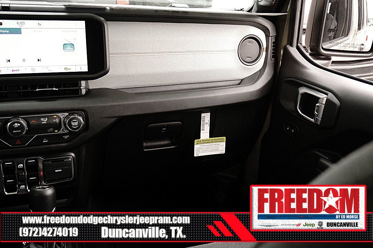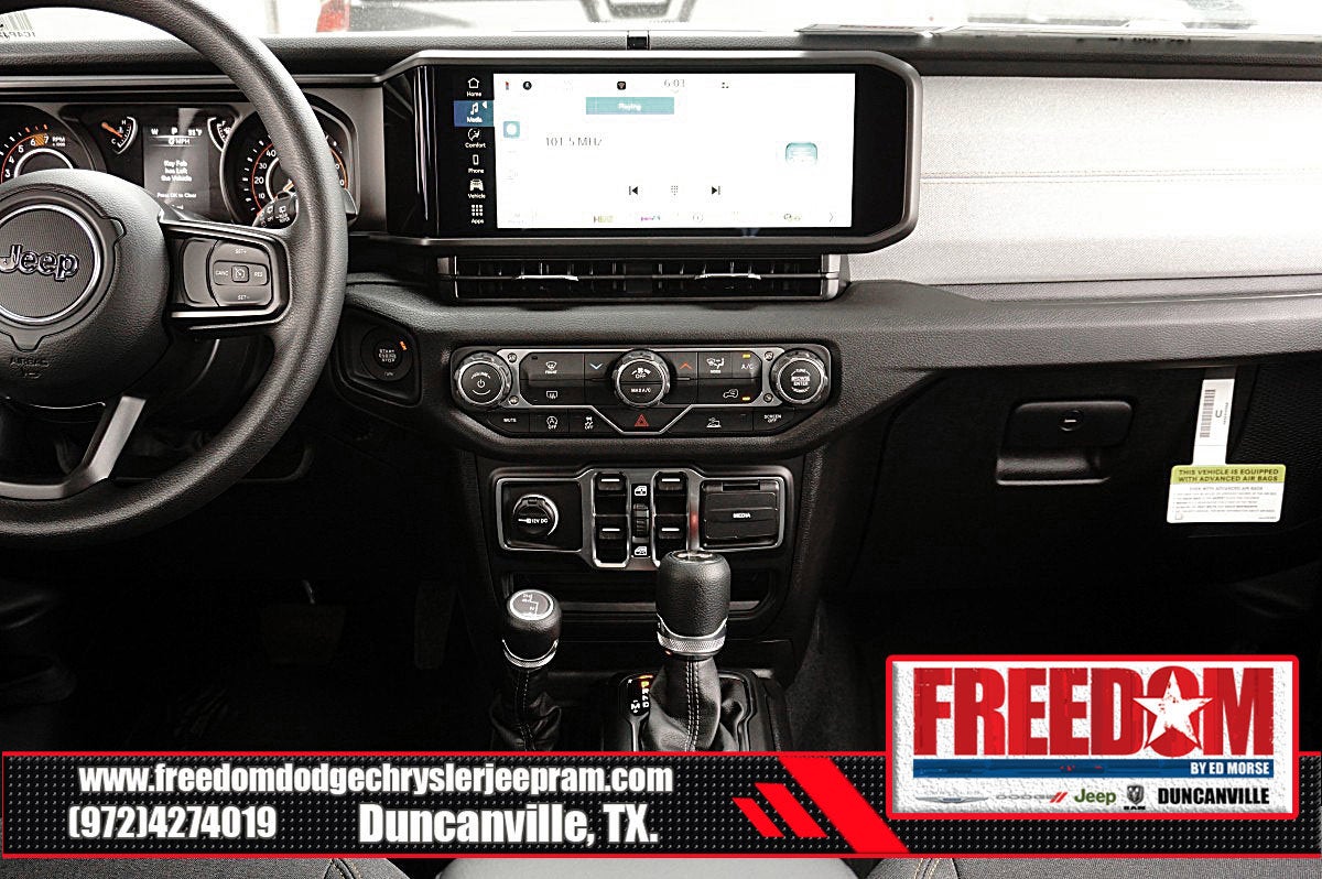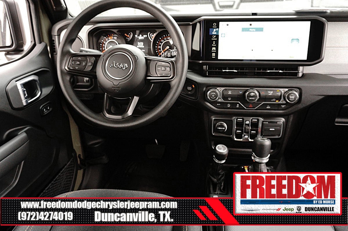 Big cash and no payments for 90 days! Our only Dealership add is GREAT CUSTOMER SERVICE. Real Deals, No Games and No Surprises. Price Includes only Rebates EVERYONE Qualifies for. We Make it Easy No Games. Equipped with Quick Order Package 22B Sport, 12.3 Touchscreen Display, 3.45 Overall Top Gear Ratio, 4-Wheel Disc Brakes, 4G LTE Wi-Fi Hot Spot, 8 Speakers, ABS brakes, Air Conditioning, AM/FM radio: SiriusXM with 360L, Apple CarPlay, Apple CarPlay/Android Auto, Aux Battery, Black 3-Piece Hard Top, Brake assist, Compass, Connectivity - US/Canada, Delay-off headlights, Driver door bin, Driver vanity mirror, Dual front impact airbags, Dual front side impact airbags, Electronic Stability Control, For More Info, Call 800-643-2112, Freedom Panel Storage Bag, Front anti-roll bar, Front Bucket Seats, Front Center Armrest w/Storage, Front fog lights, Front reading lights, Google Android Auto, Illuminated entry, Integrated Center Stack Radio, Integrated roll-over protection, Low tire pressure warning, MOPAR All-Weather Floor Mats, No Soft Top, Non-Lock Fuel Cap Without Discriminator, Normal Duty Suspension, Occupant sensing airbag, Outside temperature display, Overhead airbag, Panic alarm, ParkView Rear Back-Up Camera, Passenger door bin, Passenger vanity mirror, Power steering, Power windows, Radio data system, Radio: Uconnect 5 with 12.3 Display, Rear anti-roll bar, Rear reading lights, Rear Window Defroster, Rear Window Wiper/Washer, Remote keyless entry, SiriusXM Radio Service, SiriusXM with 360L, Speed control, Split folding rear seat, Steering wheel mounted audio controls, Stop-Start Dual Battery System, Tachometer, Telescoping steering wheel, Tilt steering wheel, Traction control, Trip computer, Variably intermittent wipers, and Wheels: 17 x 7.5 Black Steel Styled Freedom uses very reasonable effort to ensure the accuracy of information, we are not responsible for any errors or omissions contained on these pages. Please verify any information in question with Freedom Chrysler Dodge Jeep Ram * Images, prices, and options shown, including vehicle color, trim, options, pricing and other specifications are subject to availability, incentive offerings, current pricing and credit worthiness. * MSRP is the Manufacturer's Suggested Retail Price (MSRP) of the vehicle. It does not include any taxes, fees or other charges. Pricing and availability may vary based on a variety of factors, including options, dealer, specials, fees, and financing qualifications. Consult your dealer for actual price and complete details. Vehicles shown may have optional equipment at an additional cost. * The estimated selling price that appears after calculating dealer offers is for informational purposes, only. You may not qualify for the offers, incentives, discounts, or financing. Not all rebates are compatible with each other. Offers, incentives, discounts, or financing are subject to expiration and other restrictions. See dealer for qualifications and complete details. * In transit means that vehicles have been built but have not yet arrived at your dealer. Images shown may not necessarily represent identical vehicles in transit to the dealership. See dealer for actual price, payments and complete details. EPA Estimates are only estimating. Tax, title, license (unless itemized above) are extra. Not available with special finance, lease and some other offers. Price includes: $1500 - 2026 National Select Inventory Bonus Cash . Exp. 01/04/2027 $1500 - 2026 National Stellantis Loyalty Retail Bonus Cash . Exp. 02/02/2026 $500 - 2026 Southwest BC Retail Bonus Cash . Exp. 02/02/2026