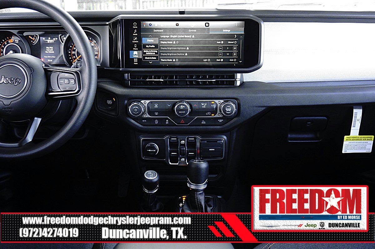 Big cash and no payments for 90 days! Our only Dealership add is GREAT CUSTOMER SERVICE. Real Deals, No Games and No Surprises. Price Includes only Rebates EVERYONE Qualifies for. We Make it Easy No Games. Equipped with Quick Order Package 22B Sport, 12.3 Touchscreen Display, 3.45 Overall Top Gear Ratio, 4-Wheel Disc Brakes, 4G LTE Wi-Fi Hot Spot, 8 Speakers, ABS brakes, Air Conditioning, AM/FM radio: SiriusXM with 360L, Apple CarPlay, Apple CarPlay/Android Auto, Aux Battery, Black 3-Piece Hard Top, Brake assist, Compass, Connectivity - US/Canada, Delay-off headlights, Driver door bin, Driver vanity mirror, Dual front impact airbags, Dual front side impact airbags, Electronic Stability Control, For More Info, Call 800-643-2112, Freedom Panel Storage Bag, Front anti-roll bar, Front Bucket Seats, Front Center Armrest w/Storage, Front fog lights, Front reading lights, Google Android Auto, Illuminated entry, Integrated Center Stack Radio, Integrated roll-over protection, Low tire pressure warning, MOPAR All-Weather Floor Mats, No Soft Top, Non-Lock Fuel Cap Without Discriminator, Normal Duty Suspension, Occupant sensing airbag, Outside temperature display, Overhead airbag, Panic alarm, ParkView Rear Back-Up Camera, Passenger door bin, Passenger vanity mirror, Power steering, Power windows, Radio data system, Radio: Uconnect 5 with 12.3 Display, Rear anti-roll bar, Rear reading lights, Rear Window Defroster, Rear Window Wiper/Washer, Remote keyless entry, SiriusXM Radio Service, SiriusXM with 360L, Speed control, Split folding rear seat, Steering wheel mounted audio controls, Stop-Start Dual Battery System, Tachometer, Telescoping steering wheel, Tilt steering wheel, Traction control, Trip computer, Variably intermittent wipers, and Wheels: 17 x 7.5 Black Steel Styled Freedom uses very reasonable effort to ensure the accuracy of information, we are not responsible for any errors or omissions contained on these pages. Please verify any information in question with Freedom Chrysler Dodge Jeep Ram * Images, prices, and options shown, including vehicle color, trim, options, pricing and other specifications are subject to availability, incentive offerings, current pricing and credit worthiness. * MSRP is the Manufacturer's Suggested Retail Price (MSRP) of the vehicle. It does not include any taxes, fees or other charges. Pricing and availability may vary based on a variety of factors, including options, dealer, specials, fees, and financing qualifications. Consult your dealer for actual price and complete details. Vehicles shown may have optional equipment at an additional cost. * The estimated selling price that appears after calculating dealer offers is for informational purposes, only. You may not qualify for the offers, incentives, discounts, or financing. Not all rebates are compatible with each other. Offers, incentives, discounts, or financing are subject to expiration and other restrictions. See dealer for qualifications and complete details. * In transit means that vehicles have been built but have not yet arrived at your dealer. Images shown may not necessarily represent identical vehicles in transit to the dealership. See dealer for actual price, payments and complete details. EPA Estimates are only estimating. Tax, title, license (unless itemized above) are extra. Not available with special finance, lease and some other offers. Price includes: $1500 - 2026 National Select Inventory Bonus Cash . Exp. 01/04/2027 $1500 - 2026 National Stellantis Loyalty Retail Bonus Cash . Exp. 02/02/2026 $500 - 2026 Southwest BC Retail Bonus Cash . Exp. 02/02/2026