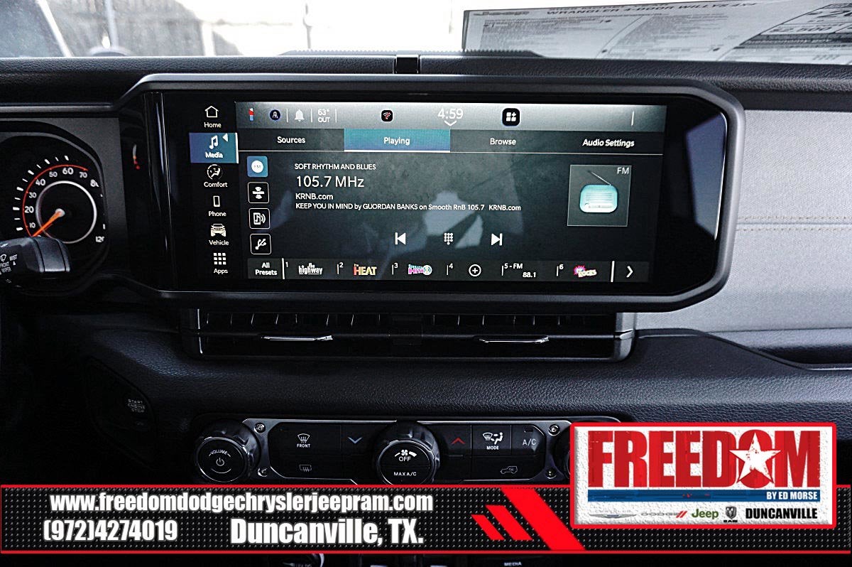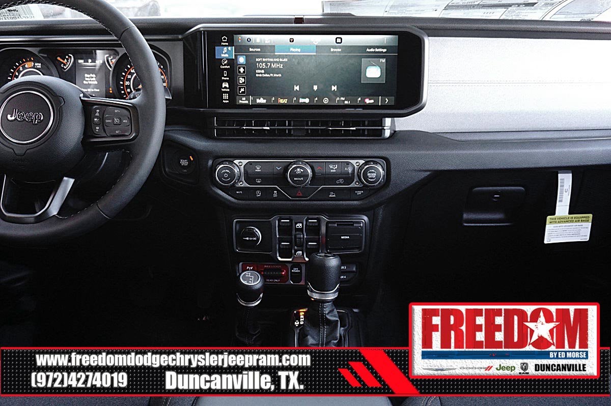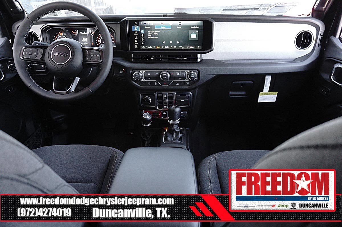 Big cash and no payments for 90 days! Our only Dealership add is GREAT CUSTOMER SERVICE. Real Deals, No Games and No Surprises. Price Includes only Rebates EVERYONE Qualifies for. We Make it Easy No Games. Equipped with Quick Order Package 24W Willys (4-Wheel Drive Swing Gate Decal, 7 and 4 Pin Wiring Harness, Advanced Brake Assist, Automatic Headlamps, Auxiliary Switches, Black Grille with Gloss Black Rings, Class II Receiver Hitch, Conventional Differential Front Axle, Corning Gorilla Glass, Dana M210 Wide HD Tube Front Axle, Dana M220 Wide Rear Axle, Daytime Running Lamps LED Accents, Deep Tint Sunscreen Windows, E-Locker Rear Axle, Enhanced Adaptive Cruise Control, Front LED Fog Lamps, Full Speed Forward Collision Warning Plus, Injection Molded Black Rear Bumper, LED Premium Reflector Headlamps, Mold in Color Bumper with Gloss Black, Molded in Color Rubicon Highline Flare, MOPAR All-Weather Floor Mats, Off-Road Plus Mode, Power Heated Mirrors, Premium Wrapped Steering Wheel, Security Alarm, Sun Visors with Illuminated Vanity Mirrors, Wheels: 17 x 7.5 Painted Black, Willy's Suspension, and Willys Hood Decal), 12.3 Touchscreen Display, 4-Wheel Disc Brakes, 4G LTE Wi-Fi Hot Spot, 8 Speakers, ABS brakes, Air Conditioning, AM/FM radio: SiriusXM with 360L, Apple CarPlay, Apple CarPlay/Android Auto, Aux Battery, Black 3-Piece Hard Top, Brake assist, Compass, Connectivity - US/Canada, Delay-off headlights, Driver door bin, Driver vanity mirror, Dual front impact airbags, Dual front side impact airbags, Electronic Stability Control, For More Info, Call 800-643-2112, Freedom Panel Storage Bag, Front anti-roll bar, Front Bucket Seats, Front Center Armrest w/Storage, Front fog lights, Front reading lights, Google Android Auto, Illuminated entry, Integrated Center Stack Radio, Integrated roll-over protection, Low tire pressure warning, Manufacture Statement of Origin, No Soft Top, Non-Lock Fuel Cap Without Discriminator, Normal Duty Suspension, Occupant sensing airbag, Outside temperature display, Overhead airbag, Panic alarm, ParkView Rear Back-Up Camera, Passenger door bin, Passenger vanity mirror, Power steering, Power windows, Radio data system, Radio: Uconnect 5 with 12.3 Display, Rear anti-roll bar, Rear reading lights, Rear Window Defroster, Rear Window Wiper/Washer, Remote keyless entry, SiriusXM Radio Service, SiriusXM with 360L, Speed control, Split folding rear seat, Steering wheel mounted audio controls, Stop-Start Dual Battery System, Tachometer, Telescoping steering wheel, Tilt steering wheel, Traction control, Trip computer, Variably intermittent wipers, and Wheels: 17 x 7.5 Black Steel Styled Freedom uses very reasonable effort to ensure the accuracy of information, we are not responsible for any errors or omissions contained on these pages. Please verify any information in question with Freedom Chrysler Dodge Jeep Ram * Images, prices, and options shown, including vehicle color, trim, options, pricing and other specifications are subject to availability, incentive offerings, current pricing and credit worthiness. * MSRP is the Manufacturer's Suggested Retail Price (MSRP) of the vehicle. It does not include any taxes, fees or other charges. Pricing and availability may vary based on a variety of factors, including options, dealer, specials, fees, and financing qualifications. Consult your dealer for actual price and complete details. Vehicles shown may have optional equipment at an additional cost. * The estimated selling price that appears after calculating dealer offers is for informational purposes, only. You may not quali Price includes: $1000 - 2026 National Retail Bonus Cash . Exp. 03/31/2026 $1000 - 2026 National Stellantis Loyalty Bonus Cash . Exp. 03/31/2026 $1500 - 2026 Southwest BC Bonus Cash . Exp. 03/31/2026 $2000 - 2026 National Select Inventory Bonus Cash. Exp. 01/04/2027 $500 - 2026 National 2026 Military Bonus Cash . Exp. 01/0
