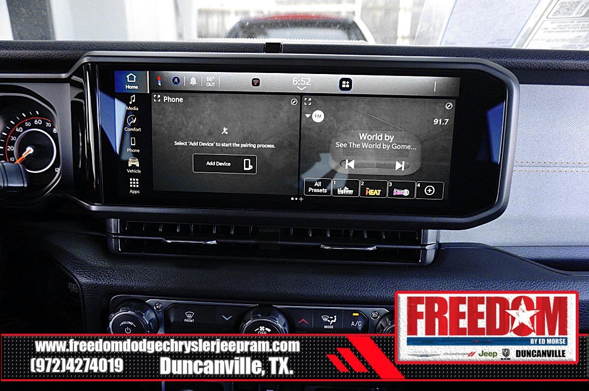 Big cash and no payments for 90 days! Our only Dealership add is GREAT CUSTOMER SERVICE. Real Deals, No Games and No Surprises. Price Includes only Rebates EVERYONE Qualifies for. We Make it Easy No Games. Equipped with Quick Order Package 24W Willys (4-Wheel Drive Swing Gate Decal, 7 and 4 Pin Wiring Harness, Advanced Brake Assist, Automatic Headlamps, Auxiliary Switches, Black Grille with Gloss Black Rings, Class II Receiver Hitch, Conventional Differential Front Axle, Corning Gorilla Glass, Dana M210 Wide HD Tube Front Axle, Dana M220 Wide Rear Axle, Daytime Running Lamps LED Accents, Deep Tint Sunscreen Windows, E-Locker Rear Axle, Enhanced Adaptive Cruise Control, Front LED Fog Lamps, Full Speed Forward Collision Warning Plus, Injection Molded Black Rear Bumper, LED Premium Reflector Headlamps, Mold in Color Bumper with Gloss Black, Molded in Color Rubicon Highline Flare, MOPAR All-Weather Floor Mats, Off-Road Plus Mode, Power Heated Mirrors, Premium Wrapped Steering Wheel, Security Alarm, Sun Visors with Illuminated Vanity Mirrors, Wheels: 17 x 7.5 Painted Black, Willy's Suspension, and Willys Hood Decal), Steel Power Dome Hood Package (Power Dome Dual Vented Hood), 12.3 Touchscreen Display, 4-Wheel Disc Brakes, 4G LTE Wi-Fi Hot Spot, 8 Speakers, ABS brakes, Air Conditioning, AM/FM radio: SiriusXM with 360L, Apple CarPlay, Apple CarPlay/Android Auto, Aux Battery, Black 3-Piece Hard Top, Brake assist, Compass, Connectivity - US/Canada, Delay-off headlights, Driver door bin, Driver vanity mirror, Dual front impact airbags, Dual front side impact airbags, Electronic Stability Control, For More Info, Call 800-643-2112, Freedom Panel Storage Bag, Front anti-roll bar, Front Bucket Seats, Front Center Armrest w/Storage, Front fog lights, Front reading lights, Google Android Auto, Illuminated entry, Integrated Center Stack Radio, Integrated roll-over protection, Low tire pressure warning, Manufacture Statement of Origin, No Soft Top, Non-Lock Fuel Cap Without Discriminator, Normal Duty Suspension, Occupant sensing airbag, Outside temperature display, Overhead airbag, Panic alarm, ParkView Rear Back-Up Camera, Passenger door bin, Passenger vanity mirror, Power steering, Power windows, Radio data system, Radio: Uconnect 5 with 12.3 Display, Rear anti-roll bar, Rear reading lights, Rear Window Defroster, Rear Window Wiper/Washer, Remote keyless entry, SiriusXM Radio Service, SiriusXM with 360L, Speed control, Split folding rear seat, Steering wheel mounted audio controls, Stop-Start Dual Battery System, Tachometer, Telescoping steering wheel, Tilt steering wheel, Traction control, Trip computer, Variably intermittent wipers, and Wheels: 17 x 7.5 Black Steel Styled Freedom uses very reasonable effort to ensure the accuracy of information, we are not responsible for any errors or omissions contained on these pages. Please verify any information in question with Freedom Chrysler Dodge Jeep Ram * Images, prices, and options shown, including vehicle color, trim, options, pricing and other specifications are subject to availability, incentive offerings, current pricing and credit worthiness. * MSRP is the Manufacturer's Suggested Retail Price (MSRP) of the vehicle. It does not include any taxes, fees or other charges. Pricing and availability may vary based on a variety of factors, including options, dealer, specials, fees, and financing qualifications. Consult your dealer for actual price and complete details. Vehicles shown may have optional equipment at an additional cost. * The estimated selling price that appears after calculating dealer offers is for informational purposes, only. You may not qualify for the offers, incentives, discounts, or fina Price includes: $1500 - 2026 National Stellantis Loyalty Retail Bonus Cash . Exp. 02/02/2026 $2000 - 2026 National Select Inventory Bonus Cash. Exp. 01/04/2027 $500 - 2026 Southwest BC Retail Bonus Cash . Exp. 02/0