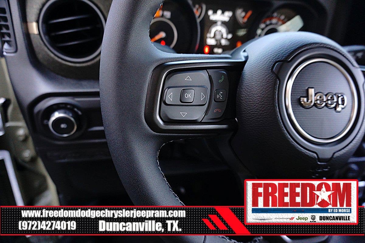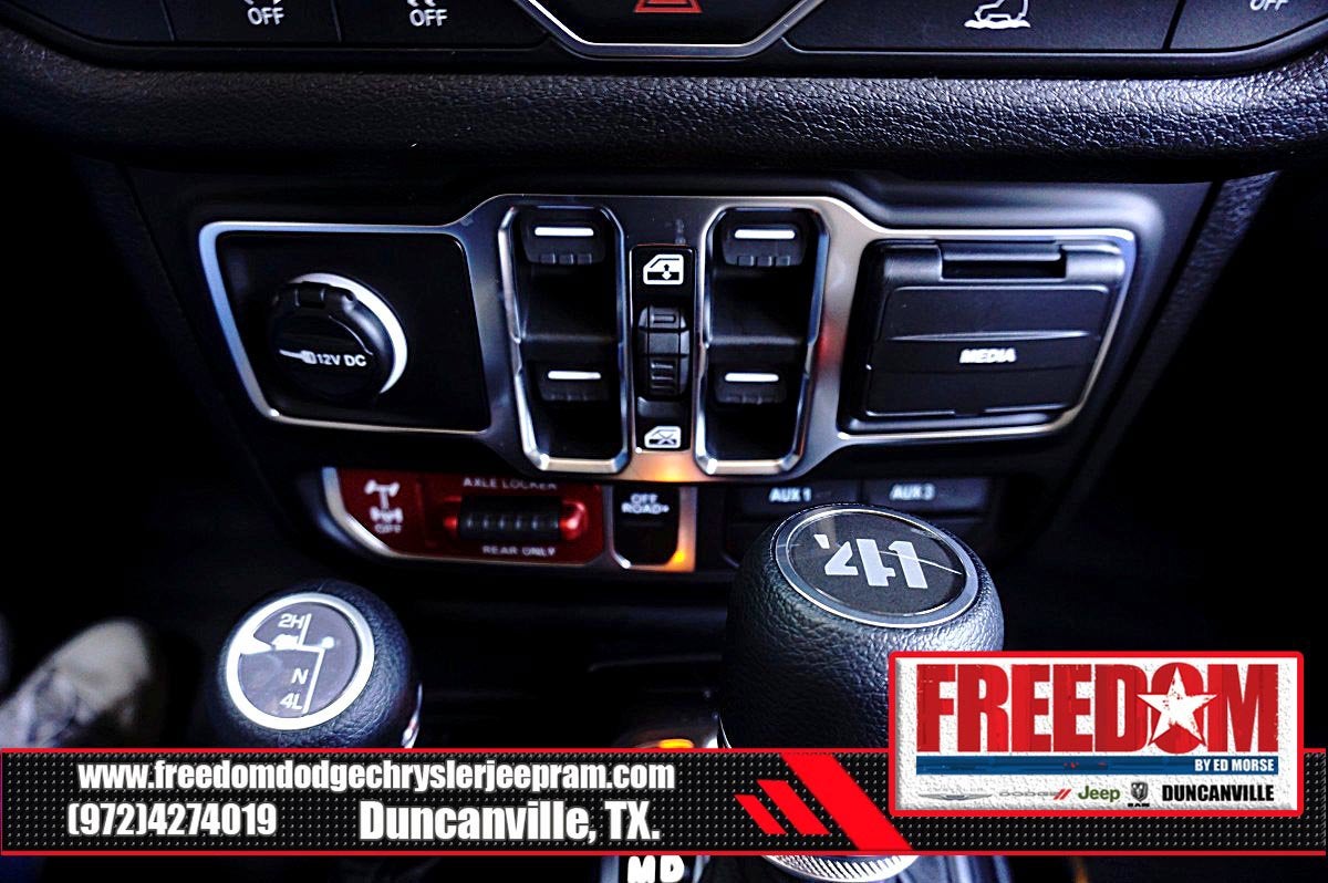 Big cash and no payments for 90 days! Our only Dealership add is GREAT CUSTOMER SERVICE. Real Deals, No Games and No Surprises. Price Includes only Rebates EVERYONE Qualifies for. We Make it Easy No Games. Equipped with Quick Order Package 22H Willys 41 (4WD Willys '41 Swing Gate Decal, 7 and 4 Pin Wiring Harness, 97 MPH Vehicle Max Speed Calibration, Adaptive Cruise Control with Stop, Advanced Brake Assist, Automatic Headlamps, Auxiliary Switches, Body Color Grille with Gloss Black Rings, Body Color Rubicon Highline Flare, Class II Receiver Hitch, Cloth Low-Back Bucket Seats, Conventional Differential Front Axle, Corning Gorilla Glass, Dana M210 Wide HD Tube Front Axle, Dana M220 Wide Rear Axle, Daytime Running Lamps LED Accents, Deep Tint Sunscreen Windows, E-Locker Rear Axle, Front LED Fog Lamps, Full Speed Forward Collision Warning Plus, LED Premium Reflector Headlamps, MOPAR All-Weather Floor Mats, Off-Road Plus Mode, Power Heated Mirrors, Premium Tan Sunrider Soft Top, Premium Wrapped Steering Wheel, Security Alarm, Steel Front Bumper, Steel Rear Bumper, Sun Visors with Illuminated Vanity Mirrors, Wheels: 17 x 7.5 Fully Painted, Willy's Suspension, Willys '41 Retro Edition Buzz Model, Willys '41 Retro Edition Hood Decal, Willys '41 Retro Edition Tailgate Plaque, Willys '41 Retro Edition Wrangler Decal, Willys '41 Retro Shift Bezel Insert, and Willys '41 US Edition U.S. Hood Decal), Steel Power Dome Hood Package (Power Dome Dual Vented Hood), 12.3 Touchscreen Display, 4-Wheel Disc Brakes, 4G LTE Wi-Fi Hot Spot, 8 Speakers, ABS brakes, Air Conditioning, AM/FM radio: SiriusXM with 360L, Apple CarPlay, Apple CarPlay/Android Auto, Aux Battery, Body Color 3-Piece Hard Top, Brake assist, Compass, Connectivity - US/Canada, Delay-off headlights, Driver door bin, Driver vanity mirror, Dual front impact airbags, Dual front side impact airbags, Electronic Stability Control, For More Info, Call 800-643-2112, Freedom Panel Storage Bag, Front anti-roll bar, Front Bucket Seats, Front Center Armrest w/Storage, Front fog lights, Front reading lights, Google Android Auto, Illuminated entry, Integrated Center Stack Radio, Integrated roll-over protection, Low tire pressure warning, No Soft Top, Non-Lock Fuel Cap Without Discriminator, Normal Duty Suspension, Occupant sensing airbag, Outside temperature display, Overhead airbag, Panic alarm, ParkView Rear Back-Up Camera, Passenger door bin, Passenger vanity mirror, Power steering, Power windows, Radio data system, Radio: Uconnect 5 with 12.3 Display, Rear anti-roll bar, Rear reading lights, Rear Window Defroster, Rear Window Wiper/Washer, Remote keyless entry, SiriusXM Radio Service, SiriusXM with 360L, Speed control, Split folding rear seat, Steering wheel mounted audio controls, Stop-Start Dual Battery System, Tachometer, Telescoping steering wheel, Tilt steering wheel, Traction control, Trip computer, Variably intermittent wipers, and Wheels: 17 x 7.5 Black Steel Styled Freedom uses very reasonable effort to ensure the accuracy of information, we are not responsible for any errors or omissions contained on these pages. Please verify any information in question with Freedom Chrysler Dodge Jeep Ram * Images, prices, and options shown, including vehicle color, trim, options, pricing and other specifications are subject to availability, incentive offerings, current pricing and credit worthiness. * MSRP is the Manufacturer's Suggested Retail Price (MSRP) of the vehicle. It does not include any taxes, fees or other charges. Pricing and availability may vary based on a variety of factors, including options, dealer, specials, fees, and financing qualifications. Consult your dealer for actual price and complete details. Vehicles shown may have optional equipment at an additional cost. * The estimated selling price that appears after calculating dealer offers is for informational purposes, only. You may not qualify for the offers, incent