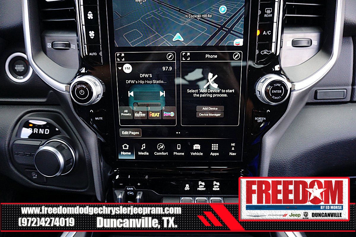 Big cash and no payments for 90 days! Our only Dealership add is GREAT CUSTOMER SERVICE. Real Deals, No Games and No Surprises. Price Includes only Rebates EVERYONE Qualifies for. We Make it Easy No Games. Equipped with Big Horn Level 2 Equipment Group (115V Auxiliary Power Outlet, 115V Auxiliary Rear Power Outlet, 12 Touchscreen Display, 2nd Row in Floor Storage Bins, 3 Rear Seat Head Restraints, 4 Way Front Headrests, 400W Inverter, 4G LTE Wi-Fi Hot Spot, 9 Amplified Speakers with Subwoofer, Air Conditioning ATC with Dual Zone Control, Apple CarPlay, Auto Power-Folding Mirrors, Auto-Dimming Exterior Driver Mirror, Auto-Dimming Rear-View Mirror, Black Exterior Mirrors, Black Premium Power Mirrors, Body Color Fender Flares, Bucket Seats, Center Console Parts Module, Cluster 7.0 TFT Color Display, Configurable Drive Mode, Connected Travel and Traffic Services, Connectivity - US/Canada, Convex Wide-Angle Exterior Mirror Insert, Deluxe Cloth Bucket Seats, Disassociated Touchscreen Display, Exterior Mirrors Courtesy Lamps, Exterior Mirrors with Heating Element, Exterior Mirrors with Supplemental Signals, Front Seat Back Map Pockets, Full Length Floor Console, Global Telematics Box Module, Glove Box Lamp, Google Android Auto, GPS Antenna Input, GPS Navigation, HD Radio, Heated Front Seats, Heated Steering Wheel, Integrated Center Stack Radio, Integrated Voice Command with Bluetooth®, Leather Wrapped Steering Wheel, LED Dome Lamp with on/Off Switch, LED Footwell Lighting, Manual Adjust 4-Way Front Passenger Seat, Media Hub with 2 Charge Only USBs, Overhead LED Lamps, Power 2-Way Driver Lumbar Adjust, Power Adjust 8-Way Driver Seat, Power Adjustable Pedals, Premium Overhead Console, Radio: Uconnect 5 Navigation with 12.0 Display, Rear 60/40 Folding Seat, Rear Center Armrest, Rear Power Sliding Window, Rear Window Defroster, Remote Tailgate Release, Security Alarm, SiriusXM Radio Service, SiriusXM with 360L, Steering Wheel Mounted Audio Controls, Sun Visors with Illuminated Vanity Mirrors, Universal Garage Door Opener, and USB Host Flip), Night Edition (Accent Color Door Handles, Accent Color Premium Power Mirrors, Accent Color Tailgate Handle, Anti-Spin Differential Rear Axle, Black Exterior Truck Badging, Black Headlamp Bezels, Black Interior Accents, Black Painted Exterior Mirrors Caps, Black Tail Lamp Bezels, Body Color Front Bumper, Body Color Rear Bumper with Step Pads, Dual Exhaust with Black Tips, Grille Black Surround Black Mesh, RAM Grille Badge - Black, Rear Wheelhouse Liners, and Wheels: 20 x 9.0 Aluminum Painted Clad), Quick Order Package 21R Lone Star (Lone Star Badge), 3.21 Rear Axle Ratio, 33 Gallon Fuel Tank, 4-Wheel Disc Brakes, 48V Belt Starter Generator, 6 Speakers, ABS brakes, Air Conditioning, Alloy wheels, AM/FM radio, Apple CarPlay/Android Auto, Auto High-beam Headlights, Brake assist, Bumpers: chrome, Cloth Bucket Seats, Cluster 12 TFT Color Display, Compass, Delay-off headlights, Driver door bin, Dual front impact airbags, Dual front side impact airbags, Electronic Stability Control, Exterior Parking Camera Rear, Front anti-roll bar, Front Bucket Seats, Front Center Armrest w/Storage, Front fog lights, Front License Plate Bracket, Front reading lights, Front wheel independent suspension, Fully automatic headlights, Heated door mirrors, Illuminated entry, Low tire pressure warning, Manual Adjust 4-Way Driver Seat, Manual Folding Exterior Mirrors, Manufacturer's Statement of Origin, Occupant sensing airbag, Outside temperature display, Overhead airbag, Overhead console, Panic alarm, Passenger door bin, Passenger vanity mirror, Power door mirrors, Power steer Price includes: $1000 - 2026 Southwest BC State of Texas Regional Bonus Cash . Exp. 04/30/2026 $3500 - 2026 National Retail Bonus Cash . Exp. 04/30/2026 $500 - 2026 National 2026 Military Bonus Cash . Exp. 01/04/2027 $750 - 2026 Southwest BC Retail Bonus Cash . Exp. 04/3