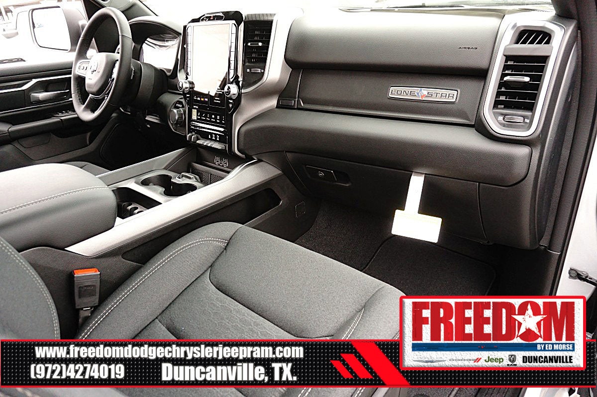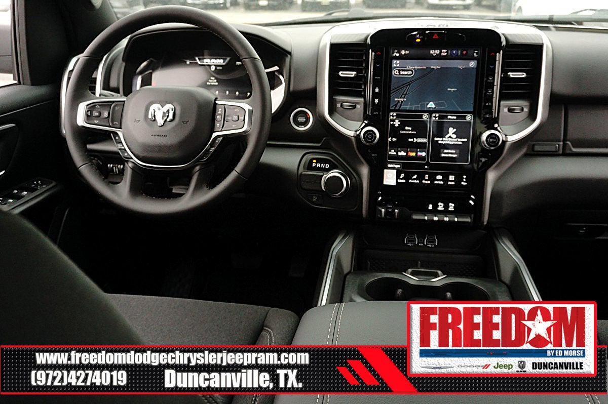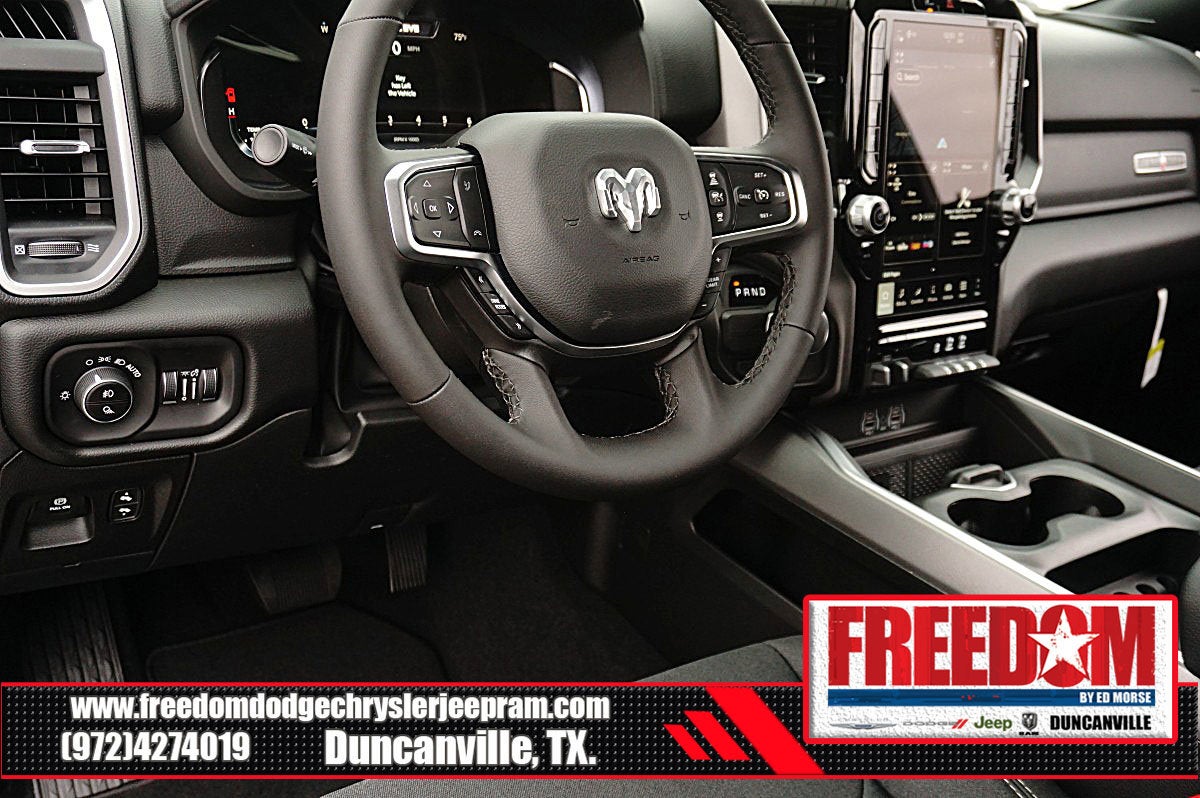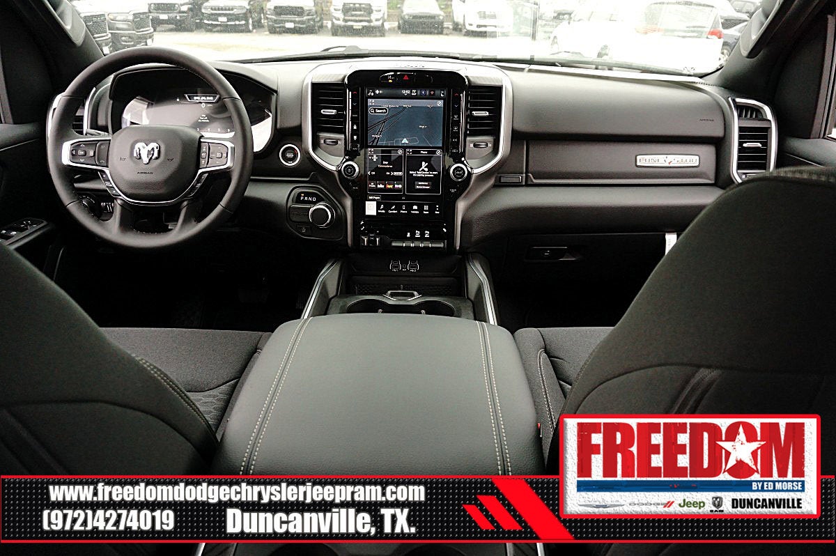 Big cash and no payments for 90 days! Our only Dealership add is GREAT CUSTOMER SERVICE. Real Deals, No Games and No Surprises. Price Includes only Rebates EVERYONE Qualifies for. We Make it Easy No Games. Equipped with Big Horn Level 2 Equipment Group (115V Auxiliary Power Outlet, 115V Auxiliary Rear Power Outlet, 12 Touchscreen Display, 2nd Row in Floor Storage Bins, 3 Rear Seat Head Restraints, 4 Way Front Headrests, 400W Inverter, 4G LTE Wi-Fi Hot Spot, 9 Amplified Speakers with Subwoofer, Air Conditioning ATC with Dual Zone Control, Apple CarPlay, Auto Power-Folding Mirrors, Auto-Dimming Exterior Driver Mirror, Auto-Dimming Rear-View Mirror, Black Exterior Mirrors, Black Premium Power Mirrors, Body Color Fender Flares, Bucket Seats, Center Console Parts Module, Cluster 7.0 TFT Color Display, Configurable Drive Mode, Connected Travel and Traffic Services, Connectivity - US/Canada, Convex Wide-Angle Exterior Mirror Insert, Deluxe Cloth Bucket Seats, Disassociated Touchscreen Display, Exterior Mirrors Courtesy Lamps, Exterior Mirrors with Heating Element, Exterior Mirrors with Supplemental Signals, Front Seat Back Map Pockets, Full Length Floor Console, Global Telematics Box Module, Glove Box Lamp, Google Android Auto, GPS Antenna Input, GPS Navigation, HD Radio, Heated Front Seats, Heated Steering Wheel, Integrated Center Stack Radio, Integrated Voice Command with Bluetooth®, Leather Wrapped Steering Wheel, LED Dome Lamp with on/Off Switch, LED Footwell Lighting, Manual Adjust 4-Way Front Passenger Seat, Media Hub with 2 Charge Only USBs, Overhead LED Lamps, Power 2-Way Driver Lumbar Adjust, Power Adjust 8-Way Driver Seat, Power Adjustable Pedals, Premium Overhead Console, Radio: Uconnect 5 Navigation with 12.0 Display, Rear 60/40 Folding Seat, Rear Center Armrest, Rear Power Sliding Window, Rear Window Defroster, Remote Tailgate Release, Security Alarm, SiriusXM Radio Service, SiriusXM with 360L, Steering Wheel Mounted Audio Controls, Sun Visors with Illuminated Vanity Mirrors, Universal Garage Door Opener, and USB Host Flip), Quick Order Package 21R Lone Star (Lone Star Badge), Sport Appearance Package (Black Interior Accents, Body Color Door Handles, Body Color Front Bumper, Body Color Rear Bumper with Step Pads, Body Color Tailgate Handle, Grille Surround 1 Body Color Texture 1 Black, and RAM Grille Badge - Chrome), 3.21 Rear Axle Ratio, 33 Gallon Fuel Tank, 4-Wheel Disc Brakes, 48V Belt Starter Generator, 6 Speakers, ABS brakes, Air Conditioning, Alloy wheels, AM/FM radio, Anti-Spin Differential Rear Axle, Apple CarPlay/Android Auto, Auto High-beam Headlights, Brake assist, Bumpers: chrome, Cloth Bucket Seats, Cluster 12 TFT Color Display, Compass, Delay-off headlights, Driver door bin, Dual front impact airbags, Dual front side impact airbags, Electronic Stability Control, Exterior Parking Camera Rear, Front anti-roll bar, Front Bucket Seats, Front Center Armrest w/Storage, Front fog lights, Front License Plate Bracket, Front reading lights, Front wheel independent suspension, Fully automatic headlights, Heated door mirrors, Illuminated entry, Low tire pressure warning, Manual Adjust 4-Way Driver Seat, Manual Folding Exterior Mirrors, Occupant sensing airbag, Outside temperature display, Overhead airbag, Overhead console, Panic alarm, Passenger door bin, Passenger vanity mirror, Power door mirrors, Power steering, Power windows, Radio data system, Radio: Uconnect 5 W with 8.4 Display, Rear anti-roll bar, Rear step bumper, Remote keyless entry, Speed control, Supplier Part Tracking (J-1), Tachometer, Telescoping steering wheel, Tilt steering wheel, Traction control, Trailer Price includes: $1000 - 2026 Southwest BC State of Texas Regional Bonus Cash . Exp. 04/30/2026 $3500 - 2026 National Retail Bonus Cash . Exp. 04/30/2026 $500 - 2026 National 2026 Military Bonus Cash . Exp. 01/04/2027 $750 - 2026 Southwest BC Retail Bonus Cash . Exp. 04/3