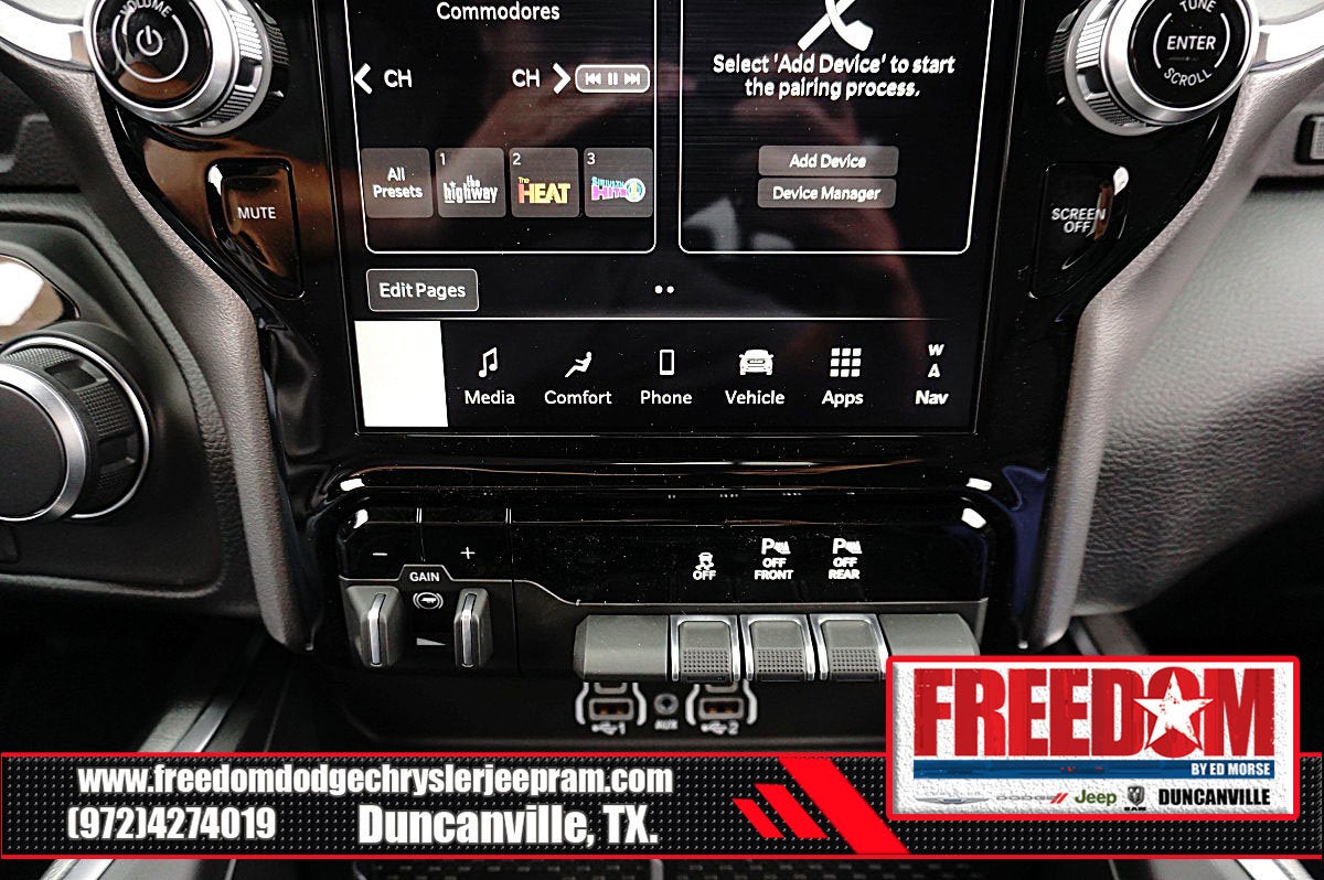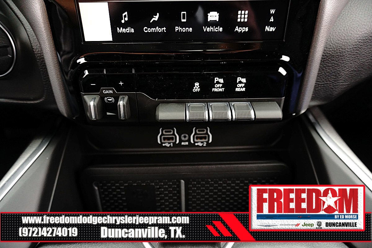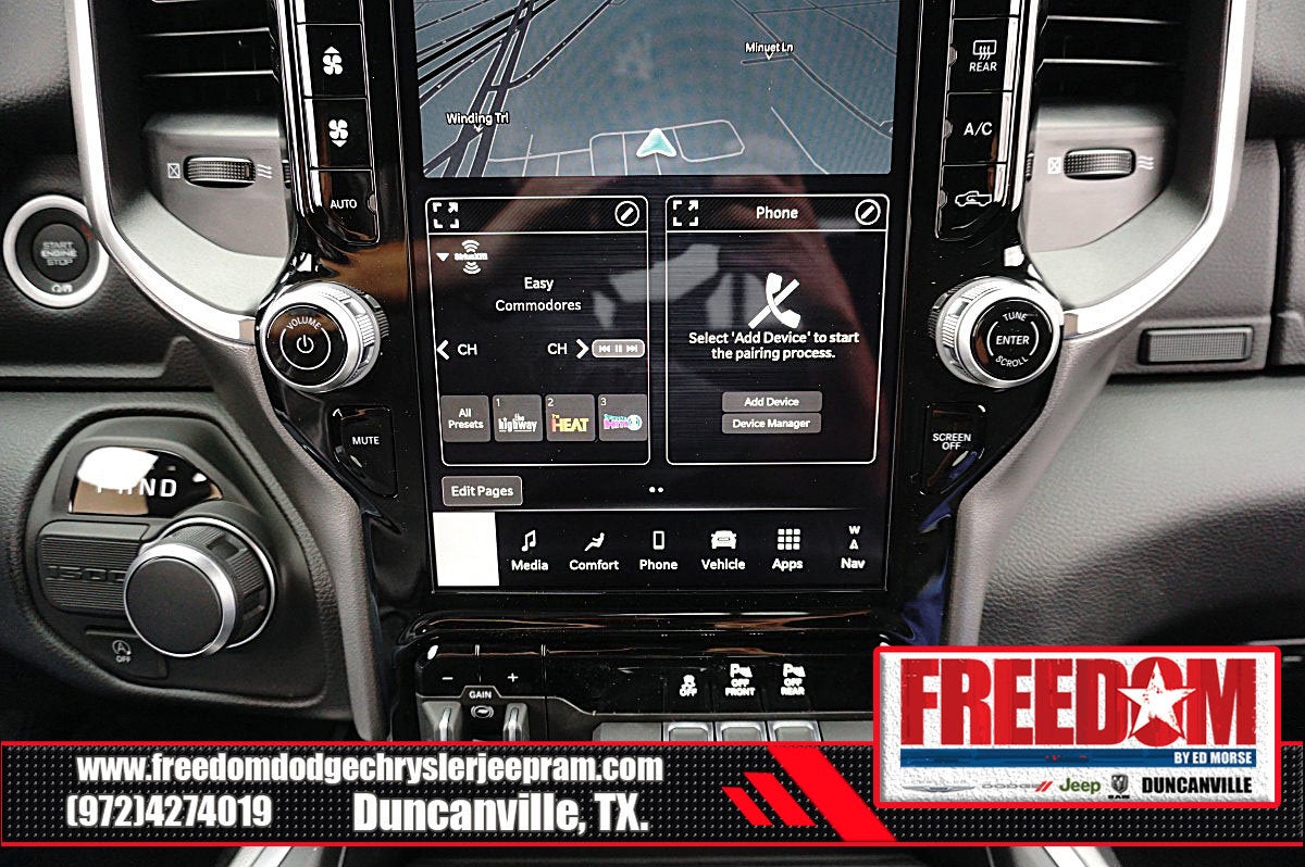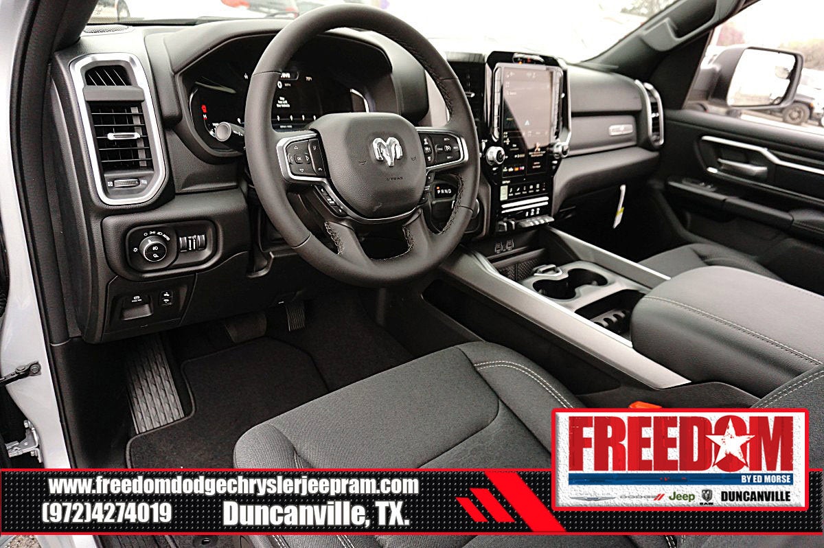 Big cash and no payments for 90 days! Our only Dealership add is GREAT CUSTOMER SERVICE. Real Deals, No Games and No Surprises. Price Includes only Rebates EVERYONE Qualifies for. We Make it Easy No Games. Equipped with Big Horn Level 2 Equipment Group (115V Auxiliary Power Outlet, 115V Auxiliary Rear Power Outlet, 12 Touchscreen Display, 2nd Row in Floor Storage Bins, 3 Rear Seat Head Restraints, 4 Way Front Headrests, 400W Inverter, 4G LTE Wi-Fi Hot Spot, 9 Amplified Speakers with Subwoofer, Air Conditioning ATC with Dual Zone Control, Apple CarPlay, Auto Power-Folding Mirrors, Auto-Dimming Exterior Driver Mirror, Auto-Dimming Rear-View Mirror, Black Exterior Mirrors, Black Premium Power Mirrors, Body Color Fender Flares, Bucket Seats, Center Console Parts Module, Cluster 7.0 TFT Color Display, Configurable Drive Mode, Connected Travel and Traffic Services, Connectivity - US/Canada, Convex Wide-Angle Exterior Mirror Insert, Deluxe Cloth Bucket Seats, Disassociated Touchscreen Display, Exterior Mirrors Courtesy Lamps, Exterior Mirrors with Heating Element, Exterior Mirrors with Supplemental Signals, Front Seat Back Map Pockets, Full Length Floor Console, Global Telematics Box Module, Glove Box Lamp, Google Android Auto, GPS Antenna Input, GPS Navigation, HD Radio, Heated Front Seats, Heated Steering Wheel, Integrated Center Stack Radio, Integrated Voice Command with Bluetooth®, Leather Wrapped Steering Wheel, LED Dome Lamp with on/Off Switch, LED Footwell Lighting, Manual Adjust 4-Way Front Passenger Seat, Media Hub with 2 Charge Only USBs, Overhead LED Lamps, Power 2-Way Driver Lumbar Adjust, Power Adjust 8-Way Driver Seat, Power Adjustable Pedals, Premium Overhead Console, Radio: Uconnect 5 Navigation with 12.0 Display, Rear 60/40 Folding Seat, Rear Center Armrest, Rear Power Sliding Window, Rear Window Defroster, Remote Tailgate Release, Security Alarm, SiriusXM Radio Service, SiriusXM with 360L, Steering Wheel Mounted Audio Controls, Sun Visors with Illuminated Vanity Mirrors, Universal Garage Door Opener, and USB Host Flip), Quick Order Package 21R Lone Star (Lone Star Badge), Sport Appearance Package (Black Interior Accents, Body Color Door Handles, Body Color Front Bumper, Body Color Rear Bumper with Step Pads, Body Color Tailgate Handle, Grille Surround 1 Body Color Texture 1 Black, and RAM Grille Badge - Chrome), 3.21 Rear Axle Ratio, 33 Gallon Fuel Tank, 4-Wheel Disc Brakes, 48V Belt Starter Generator, 6 Speakers, ABS brakes, Air Conditioning, Alloy wheels, AM/FM radio, Anti-Spin Differential Rear Axle, Apple CarPlay/Android Auto, Auto High-beam Headlights, Brake assist, Bumpers: chrome, Cloth Bucket Seats, Cluster 12 TFT Color Display, Compass, Delay-off headlights, Driver door bin, Dual front impact airbags, Dual front side impact airbags, Electronic Stability Control, Exterior Parking Camera Rear, Front anti-roll bar, Front Bucket Seats, Front Center Armrest w/Storage, Front fog lights, Front License Plate Bracket, Front reading lights, Front wheel independent suspension, Fully automatic headlights, Heated door mirrors, Illuminated entry, Low tire pressure warning, Manual Adjust 4-Way Driver Seat, Manual Folding Exterior Mirrors, Occupant sensing airbag, Outside temperature display, Overhead airbag, Overhead console, Panic alarm, Passenger door bin, Passenger vanity mirror, Power door mirrors, Power steering, Power windows, Radio data system, Radio: Uconnect 5 W with 8.4 Display, Rear anti-roll bar, Rear step bumper, Remote keyless entry, Speed control, Supplier Part Tracking (J-1), Tachometer, Telescoping steering wheel, Tilt steering wheel, Traction control, Trailer Price includes: $1000 - 2026 Southwest BC State of Texas Regional Bonus Cash . Exp. 04/30/2026 $3500 - 2026 National Retail Bonus Cash . Exp. 04/30/2026 $500 - 2026 National 2026 Military Bonus Cash . Exp. 01/04/2027 $750 - 2026 Southwest BC Retail Bonus Cash . Exp. 04/3