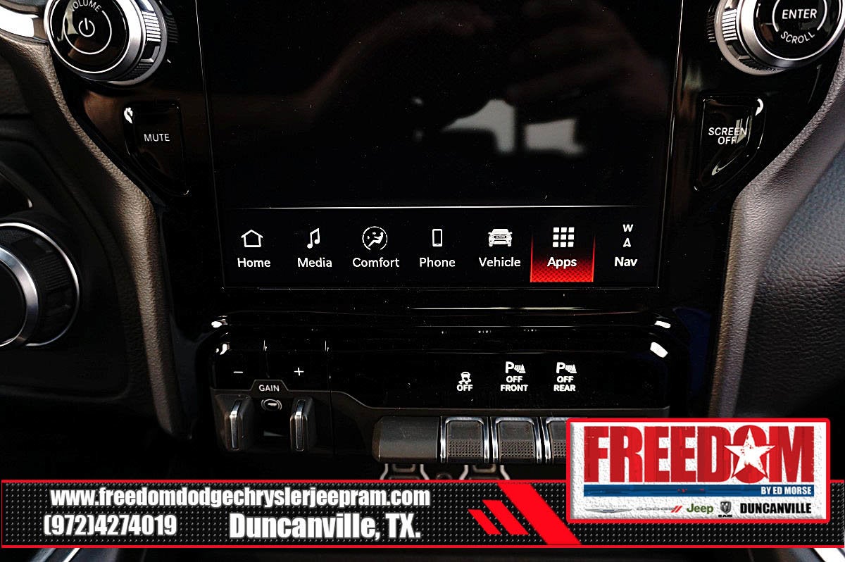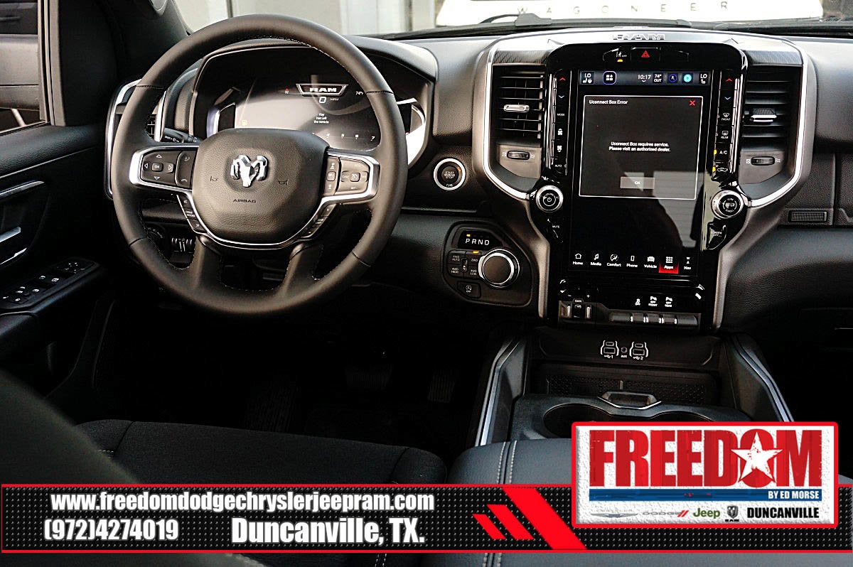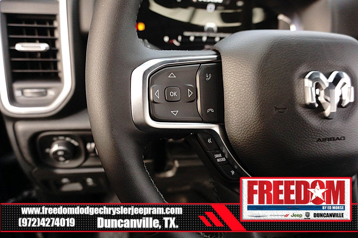 Big cash and no payments for 90 days! Our only Dealership add is GREAT CUSTOMER SERVICE. Real Deals, No Games and No Surprises. Price Includes only Rebates EVERYONE Qualifies for. We Make it Easy No Games. Equipped with Big Horn Level 2 Equipment Group (115V Auxiliary Power Outlet, 115V Auxiliary Rear Power Outlet, 12 Touchscreen Display, 2nd Row in Floor Storage Bins, 3 Rear Seat Head Restraints, 4 Way Front Headrests, 400W Inverter, 4G LTE Wi-Fi Hot Spot, 9 Amplified Speakers with Subwoofer, Air Conditioning ATC with Dual Zone Control, Apple CarPlay, Auto Power-Folding Mirrors, Auto-Dimming Exterior Driver Mirror, Auto-Dimming Rear-View Mirror, Black Exterior Mirrors, Black Premium Power Mirrors, Body Color Fender Flares, Bucket Seats, Center Console Parts Module, Cluster 7.0 TFT Color Display, Configurable Drive Mode, Connected Travel and Traffic Services, Connectivity - US/Canada, Convex Wide-Angle Exterior Mirror Insert, Deluxe Cloth Bucket Seats, Disassociated Touchscreen Display, Exterior Mirrors Courtesy Lamps, Exterior Mirrors with Heating Element, Exterior Mirrors with Supplemental Signals, Front Seat Back Map Pockets, Full Length Floor Console, Global Telematics Box Module, Glove Box Lamp, Google Android Auto, GPS Antenna Input, GPS Navigation, HD Radio, Heated Front Seats, Heated Steering Wheel, Integrated Center Stack Radio, Integrated Voice Command with Bluetooth®, Leather Wrapped Steering Wheel, LED Dome Lamp with on/Off Switch, LED Footwell Lighting, Manual Adjust 4-Way Front Passenger Seat, Media Hub with 2 Charge Only USBs, Overhead LED Lamps, Power 2-Way Driver Lumbar Adjust, Power Adjust 8-Way Driver Seat, Power Adjustable Pedals, Premium Overhead Console, Radio: Uconnect 5 Navigation with 12.0 Display, Rear 60/40 Folding Seat, Rear Center Armrest, Rear Power Sliding Window, Rear Window Defroster, Remote Tailgate Release, Security Alarm, SiriusXM Radio Service, SiriusXM with 360L, Steering Wheel Mounted Audio Controls, Sun Visors with Illuminated Vanity Mirrors, Universal Garage Door Opener, and USB Host Flip), Night Edition (Accent Color Door Handles, Accent Color Premium Power Mirrors, Accent Color Tailgate Handle, Anti-Spin Differential Rear Axle, Black Exterior Truck Badging, Black Headlamp Bezels, Black Interior Accents, Black Painted Exterior Mirrors Caps, Black Tail Lamp Bezels, Body Color Front Bumper, Body Color Rear Bumper with Step Pads, Dual Exhaust with Black Tips, Grille Black Surround Black Mesh, RAM Grille Badge - Black, and Wheels: 20 x 9.0 Aluminum Painted Clad), Quick Order Package 27R Lone Star (Lone Star Badge), 33 Gallon Fuel Tank, 4-Wheel Disc Brakes, 48V Belt Starter Generator, 6 Speakers, ABS brakes, Air Conditioning, Alloy wheels, AM/FM radio, Apple CarPlay/Android Auto, Auto High-beam Headlights, Brake assist, Bumpers: chrome, Cloth Bucket Seats, Cluster 12 TFT Color Display, Compass, Delay-off headlights, Driver door bin, Dual front impact airbags, Dual front side impact airbags, Electronic Stability Control, Front anti-roll bar, Front Bucket Seats, Front Center Armrest w/Storage, Front fog lights, Front License Plate Bracket, Front reading lights, Front wheel independent suspension, Fully automatic headlights, Heated door mirrors, Illuminated entry, Low tire pressure warning, Manual Adjust 4-Way Driver Seat, Manual Folding Exterior Mirrors, Manufacturer's Statement of Origin, Mopar Black Tubular Side Steps, Occupant sensing airbag, Outside temperature display, Overhead airbag, Overhead console, Panic alarm, ParkView Rear Back-Up Camera, Passenger door bin, Passenger vanity mirror, Power door mirrors, Power steering, Power windows, Radio data system, Radio: Uconnect 5 W with 8.4 Display, RAM Grille Badge - Chrome, Rear anti-roll bar, Rear step bumper, Price includes: $1000 - 2026 Southwest BC Retail Bonus Cash . Exp. 02/02/2026 $3500 - 2026 National Retail Consumer Cash . Exp. 02/0
