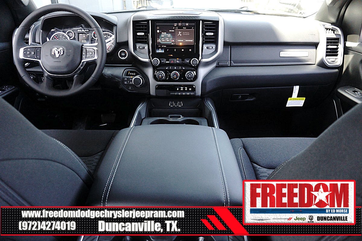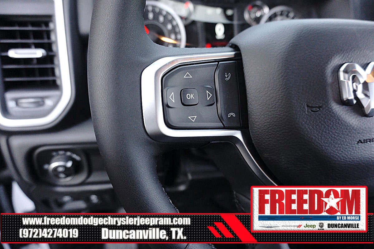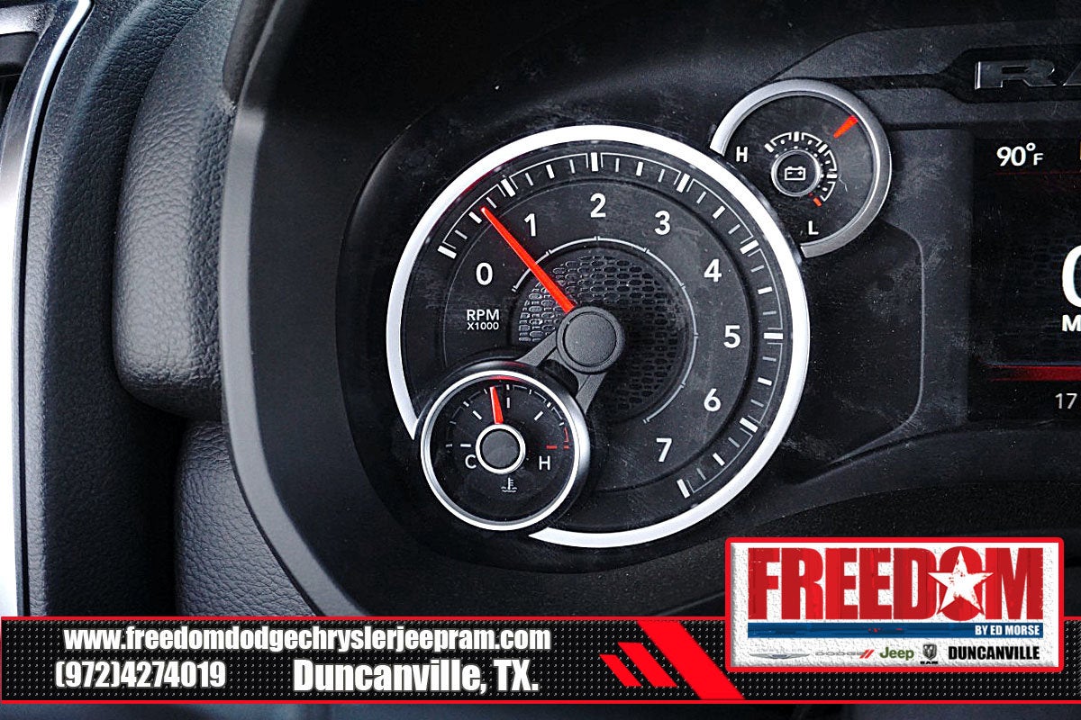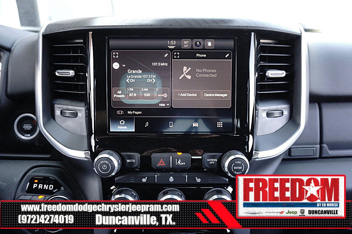 Big cash and no payments for 90 days! Our only Dealership add is GREAT CUSTOMER SERVICE. Real Deals, No Games and No Surprises. Price Includes only Rebates EVERYONE Qualifies for. We Make it Easy No Games. Equipped with Big Horn Level 1 Equipment Group (115V Auxiliary Power Outlet, 2nd Row in Floor Storage Bins, 3 Rear Seat Head Restraints, 4 Way Front Headrests, 400W Inverter, Auto Power-Folding Mirrors, Auto-Dimming Exterior Driver Mirror, Auto-Dimming Rear-View Mirror, Black Exterior Mirrors, Black Premium Power Mirrors, Body Color Fender Flares, Bucket Seats, Center Console Parts Module, Convex Wide-Angle Exterior Mirror Insert, Deluxe Cloth Bucket Seats, Exterior Mirrors Courtesy Lamps, Exterior Mirrors with Heating Element, Exterior Mirrors with Supplemental Signals, Front Seat Back Map Pockets, Full Length Floor Console, Glove Box Lamp, Heated Front Seats, Heated Steering Wheel, Leather Wrapped Steering Wheel, Manual Adjust 4-Way Front Passenger Seat, Power 2-Way Driver Lumbar Adjust, Power Adjust 8-Way Driver Seat, Power Adjustable Pedals, Rear 60/40 Folding Seat, Rear Center Armrest, Rear Dome with on/Off Switch Lamp, Rear Power Sliding Window, Rear Window Defroster, SiriusXM Radio Service, SiriusXM Satellite Radio, Steering Wheel Mounted Audio Controls, Sun Visors with Illuminated Vanity Mirrors, and Universal Garage Door Opener), Quick Order Package 23R Lone Star (Lone Star Badge), Sport Appearance Package (Black Interior Accents, Body Color Door Handles, Body Color Front Bumper, Body Color Rear Bumper with Step Pads, Body Color Tailgate Handle, Grille Surround 1 Body Color Texture 1 Black, and RAM Grille Badge - Chrome), 3.21 Rear Axle Ratio, 4-Wheel Disc Brakes, 48V Belt Starter Generator, 4G LTE Wi-Fi Hot Spot, 6 Speakers, ABS brakes, Air Conditioning, Alloy wheels, AM/FM radio, Apple CarPlay, Apple CarPlay/Android Auto, Auto High-beam Headlights, Brake assist, Bumpers: chrome, Cloth Bucket Seats, Compass, Connectivity - US/Canada, Delay-off headlights, Driver door bin, Dual front impact airbags, Dual front side impact airbags, Electronic Stability Control, Front anti-roll bar, Front Bucket Seats, Front Center Armrest w/Storage, Front fog lights, Front License Plate Bracket, Front reading lights, Front wheel independent suspension, Fully automatic headlights, Global Telematics Box Module, Google Android Auto, GPS Antenna Input, Heated door mirrors, Illuminated entry, Integrated Center Stack Radio, Integrated Voice Command with Bluetooth®, Low tire pressure warning, Manual Adjust 4-Way Driver Seat, Manual Folding Exterior Mirrors, Occupant sensing airbag, Outside temperature display, Overhead airbag, Overhead console, Panic alarm, ParkView Rear Back-Up Camera, Passenger door bin, Passenger vanity mirror, Power door mirrors, Power steering, Power windows, Radio data system, Radio: Uconnect 5 W with 8.4 Display, Rear anti-roll bar, Rear step bumper, Remote keyless entry, Speed control, Supplier Part Tracking (J-1), Tachometer, Telescoping steering wheel, Tilt steering wheel, Traction control, Trip computer, USB Host Flip, Variably intermittent wipers, Voltmeter, and Wheels: 18 x 8 Cast-Aluminum Painted Freedom uses very reasonable effort to ensure the accuracy of information, we are not responsible for any errors or omissions contained on these pages. Please verify any information in question with Freedom Chrysler Dodge Jeep Ram * Images, prices, and options shown, including vehicle color, trim, options, pricing and other specifications are subject to availability, incentive offerings, current pricing and credit worthiness. * MSRP is the Manufacturer's Suggested R Price includes: $1000 - 2026 Southwest BC State of Texas Regional Bonus Cash . Exp. 04/30/2026 $3500 - 2026 National Retail Bonus Cash . Exp. 04/30/2026 $500 - 2026 National 2026 Military Bonus Cash . Exp. 01/04/2027 $750 - 2026 Southwest BC Retail Bonus Cash . Exp. 04/3
