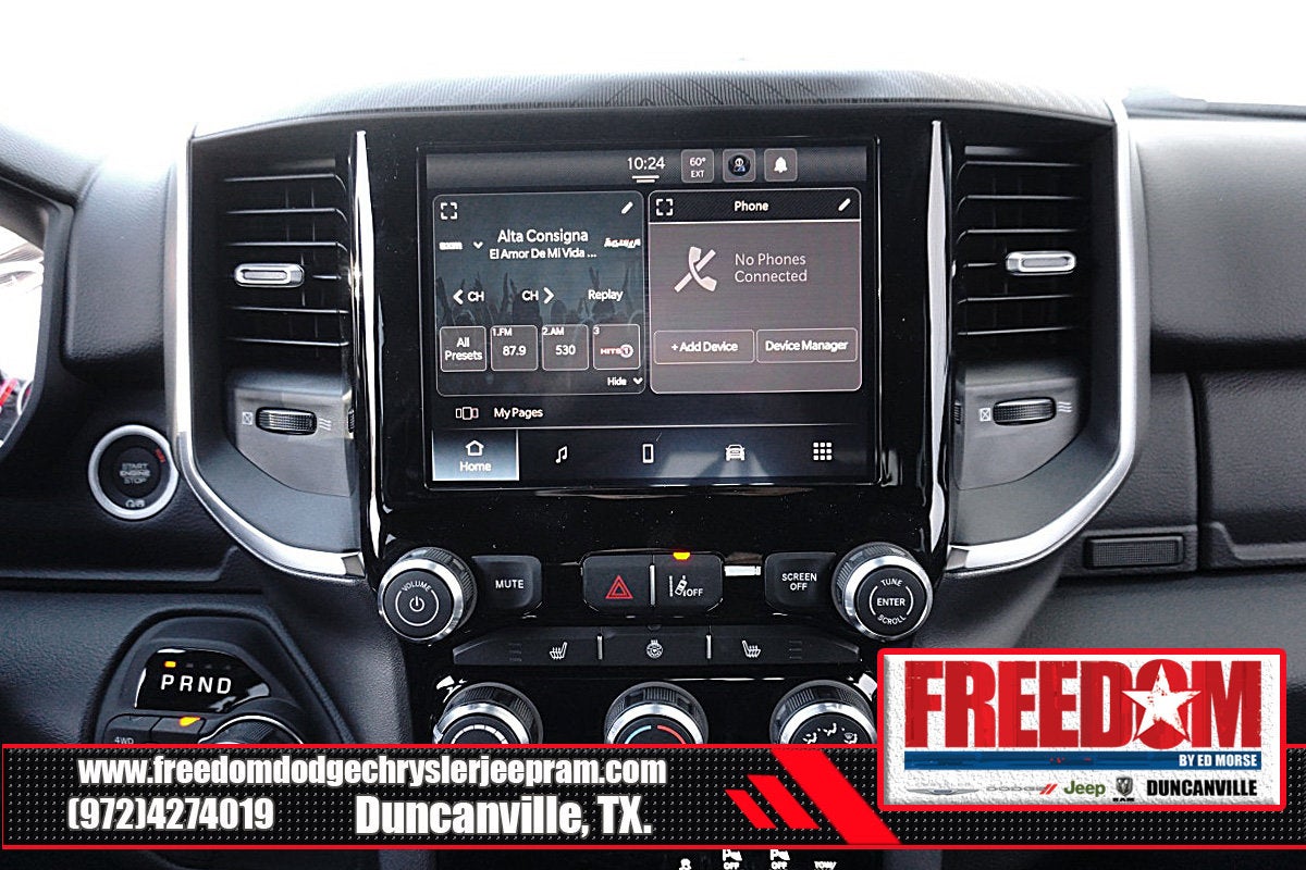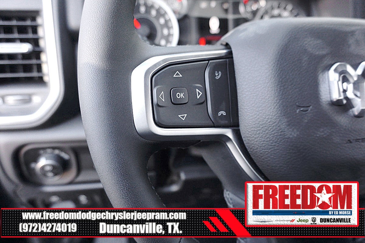 Big cash and no payments for 90 days! Our only Dealership add is GREAT CUSTOMER SERVICE. Real Deals, No Games and No Surprises. Price Includes only Rebates EVERYONE Qualifies for. We Make it Easy No Games. Equipped with Big Horn Level 1 Equipment Group (115V Auxiliary Power Outlet, 2nd Row in Floor Storage Bins, 3 Rear Seat Head Restraints, 4 Way Front Headrests, 400W Inverter, Auto Power-Folding Mirrors, Auto-Dimming Exterior Driver Mirror, Auto-Dimming Rear-View Mirror, Black Exterior Mirrors, Black Premium Power Mirrors, Body Color Fender Flares, Bucket Seats, Center Console Parts Module, Convex Wide-Angle Exterior Mirror Insert, Deluxe Cloth Bucket Seats, Exterior Mirrors Courtesy Lamps, Exterior Mirrors with Heating Element, Exterior Mirrors with Supplemental Signals, Front Seat Back Map Pockets, Full Length Floor Console, Glove Box Lamp, Heated Front Seats, Heated Steering Wheel, Leather Wrapped Steering Wheel, Manual Adjust 4-Way Front Passenger Seat, Power 2-Way Driver Lumbar Adjust, Power Adjust 8-Way Driver Seat, Power Adjustable Pedals, Rear 60/40 Folding Seat, Rear Center Armrest, Rear Dome with on/Off Switch Lamp, Rear Power Sliding Window, Rear Window Defroster, SiriusXM Radio Service, SiriusXM Satellite Radio, Steering Wheel Mounted Audio Controls, Sun Visors with Illuminated Vanity Mirrors, and Universal Garage Door Opener), Quick Order Package 23R Lone Star (Lone Star Badge), Sport Appearance Package (Black Interior Accents, Body Color Door Handles, Body Color Front Bumper, Body Color Rear Bumper with Step Pads, Body Color Tailgate Handle, Grille Surround 1 Body Color Texture 1 Black, and RAM Grille Badge - Chrome), 3.21 Rear Axle Ratio, 4-Wheel Disc Brakes, 48V Belt Starter Generator, 4G LTE Wi-Fi Hot Spot, 6 Speakers, ABS brakes, Air Conditioning, Alloy wheels, AM/FM radio, Apple CarPlay, Apple CarPlay/Android Auto, Auto High-beam Headlights, Brake assist, Bumpers: chrome, Cloth Bucket Seats, Compass, Connectivity - US/Canada, Delay-off headlights, Driver door bin, Dual front impact airbags, Dual front side impact airbags, Electronic Stability Control, Front anti-roll bar, Front Bucket Seats, Front Center Armrest w/Storage, Front fog lights, Front License Plate Bracket, Front reading lights, Front wheel independent suspension, Fully automatic headlights, Global Telematics Box Module, Google Android Auto, GPS Antenna Input, Heated door mirrors, Illuminated entry, Integrated Center Stack Radio, Integrated Voice Command with Bluetooth®, Low tire pressure warning, Manual Adjust 4-Way Driver Seat, Manual Folding Exterior Mirrors, Occupant sensing airbag, Outside temperature display, Overhead airbag, Overhead console, Panic alarm, ParkView Rear Back-Up Camera, Passenger door bin, Passenger vanity mirror, Power door mirrors, Power steering, Power windows, Radio data system, Radio: Uconnect 5 W with 8.4 Display, Rear anti-roll bar, Rear step bumper, Remote keyless entry, Speed control, Supplier Part Tracking (J-1), Tachometer, Telescoping steering wheel, Tilt steering wheel, Traction control, Trip computer, USB Host Flip, Variably intermittent wipers, Voltmeter, and Wheels: 18 x 8 Cast-Aluminum Painted Freedom uses very reasonable effort to ensure the accuracy of information, we are not responsible for any errors or omissions contained on these pages. Please verify any information in question with Freedom Chrysler Dodge Jeep Ram * Images, prices, and options shown, including vehicle color, trim, options, pricing and other specifications are subject to availability, incentive offerings, current pricing and credit worthiness. * MSRP is the Manufacture Price includes: $1000 - 2026 Southwest BC State of Texas Regional Bonus Cash . Exp. 03/31/2026 $3500 - 2026 National Retail Consumer Cash . Exp. 03/31/2026 $500 - 2026 National 2026 Military Bonus Cash . Exp. 01/04/2027 $750 - 2026 Southwest BC Retail Bonus Cash . Exp. 03/3