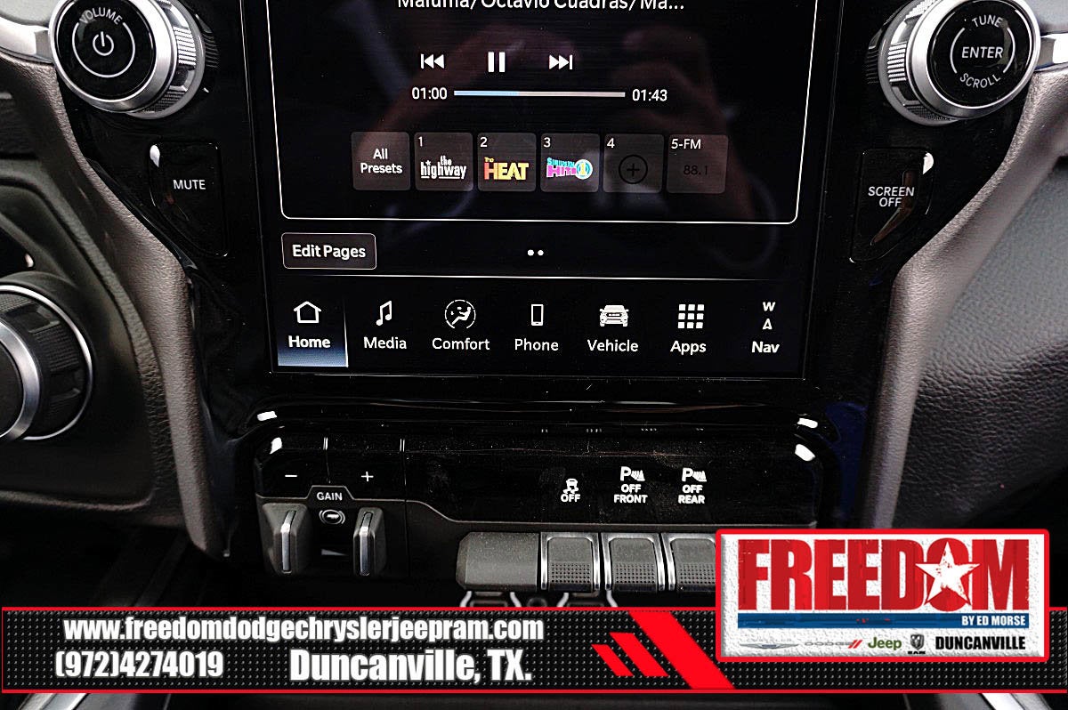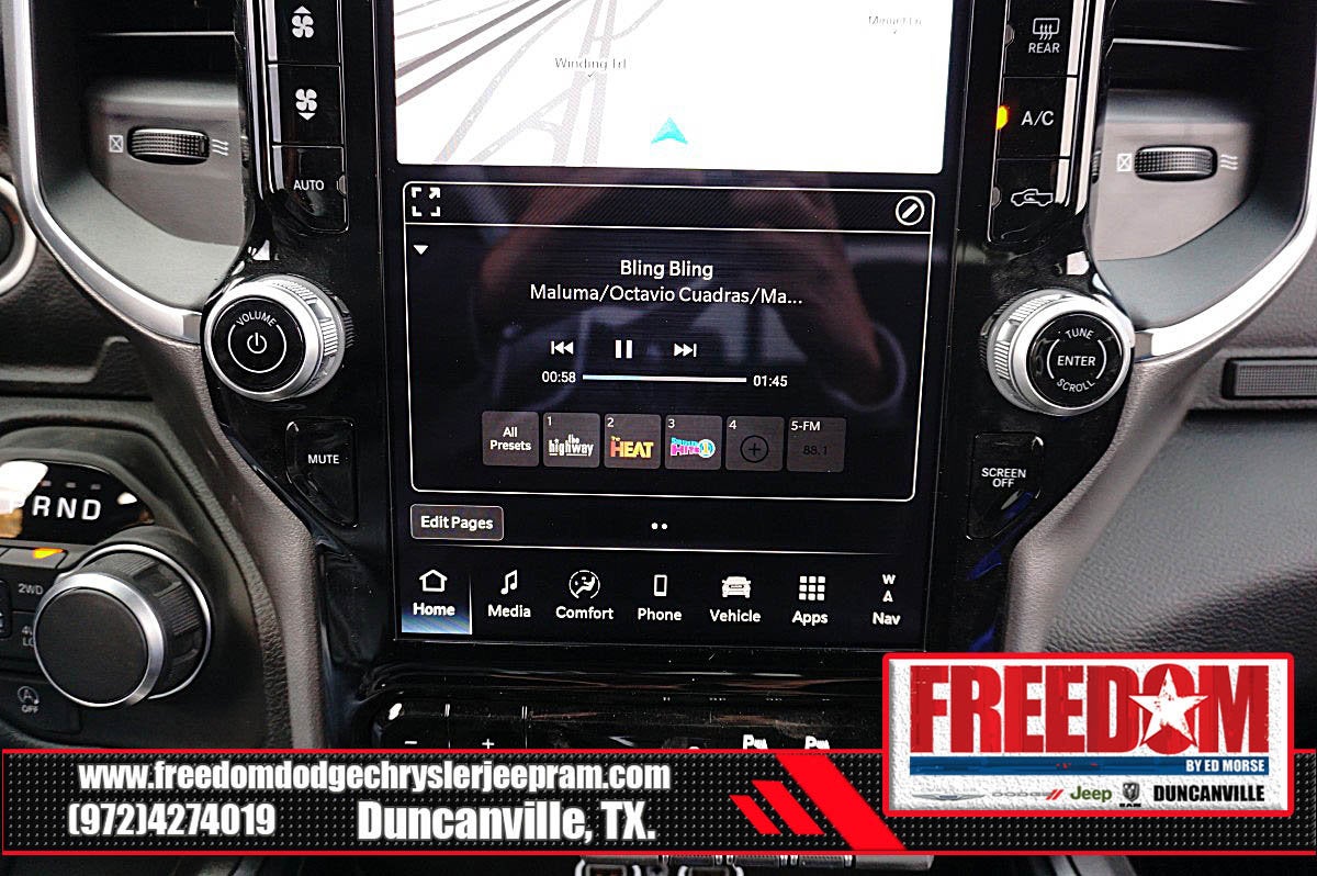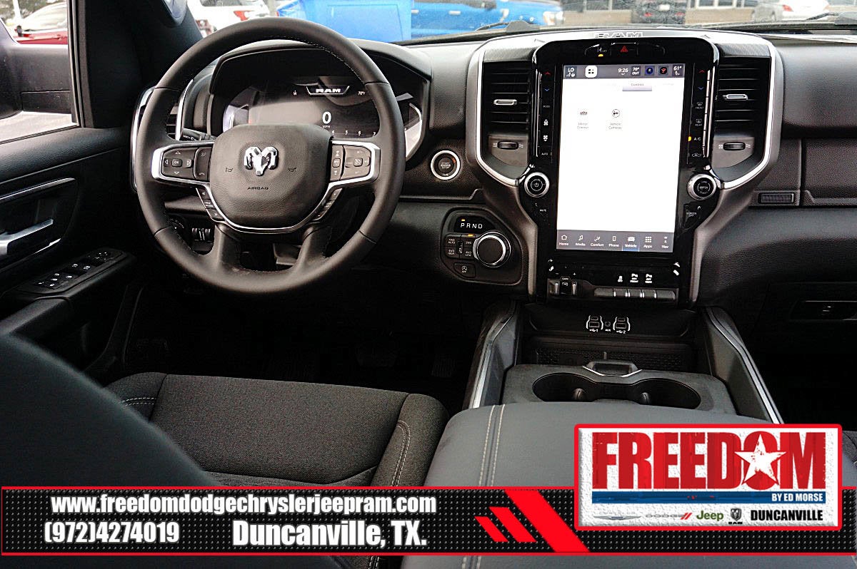 Big cash and no payments for 90 days! Our only Dealership add is GREAT CUSTOMER SERVICE. Real Deals, No Games and No Surprises. Price Includes only Rebates EVERYONE Qualifies for. We Make it Easy No Games. Equipped with Big Horn Level 2 Equipment Group (115V Auxiliary Power Outlet, 115V Auxiliary Rear Power Outlet, 12 Touchscreen Display, 2nd Row in Floor Storage Bins, 3 Rear Seat Head Restraints, 4 Way Front Headrests, 400W Inverter, 4G LTE Wi-Fi Hot Spot, 9 Amplified Speakers with Subwoofer, Air Conditioning ATC with Dual Zone Control, Apple CarPlay, Auto Power-Folding Mirrors, Auto-Dimming Exterior Driver Mirror, Auto-Dimming Rear-View Mirror, Black Exterior Mirrors, Black Premium Power Mirrors, Body Color Fender Flares, Bucket Seats, Center Console Parts Module, Cluster 7.0 TFT Color Display, Configurable Drive Mode, Connected Travel and Traffic Services, Connectivity - US/Canada, Convex Wide-Angle Exterior Mirror Insert, Deluxe Cloth Bucket Seats, Disassociated Touchscreen Display, Exterior Mirrors Courtesy Lamps, Exterior Mirrors with Heating Element, Exterior Mirrors with Supplemental Signals, Front Seat Back Map Pockets, Full Length Floor Console, Global Telematics Box Module, Glove Box Lamp, Google Android Auto, GPS Antenna Input, GPS Navigation, HD Radio, Heated Front Seats, Heated Steering Wheel, Integrated Center Stack Radio, Integrated Voice Command with Bluetooth®, Leather Wrapped Steering Wheel, LED Dome Lamp with on/Off Switch, LED Footwell Lighting, Manual Adjust 4-Way Front Passenger Seat, Media Hub with 2 Charge Only USBs, Overhead LED Lamps, Power 2-Way Driver Lumbar Adjust, Power Adjust 8-Way Driver Seat, Power Adjustable Pedals, Premium Overhead Console, Radio: Uconnect 5 Navigation with 12.0 Display, Rear 60/40 Folding Seat, Rear Center Armrest, Rear Power Sliding Window, Rear Window Defroster, Remote Tailgate Release, Security Alarm, SiriusXM Radio Service, SiriusXM with 360L, Steering Wheel Mounted Audio Controls, Sun Visors with Illuminated Vanity Mirrors, Universal Garage Door Opener, and USB Host Flip), Night Edition (Accent Color Door Handles, Accent Color Premium Power Mirrors, Accent Color Tailgate Handle, Anti-Spin Differential Rear Axle, Black Exterior Truck Badging, Black Headlamp Bezels, Black Interior Accents, Black Painted Exterior Mirrors Caps, Black Tail Lamp Bezels, Body Color Front Bumper, Body Color Rear Bumper with Step Pads, Dual Exhaust with Black Tips, Grille Black Surround Black Mesh, RAM Grille Badge - Black, and Wheels: 20 x 9.0 Aluminum Painted Clad), Quick Order Package 21R Lone Star (Lone Star Badge), 4-Wheel Disc Brakes, 48V Belt Starter Generator, 6 Speakers, ABS brakes, Air Conditioning, Alloy wheels, AM/FM radio, Apple CarPlay/Android Auto, Auto High-beam Headlights, Brake assist, Bumpers: chrome, Cloth Bucket Seats, Cluster 12 TFT Color Display, Compass, Delay-off headlights, Driver door bin, Dual front impact airbags, Dual front side impact airbags, Electronic Stability Control, Front anti-roll bar, Front Bucket Seats, Front Center Armrest w/Storage, Front fog lights, Front License Plate Bracket, Front reading lights, Front wheel independent suspension, Fully automatic headlights, Heated door mirrors, Illuminated entry, Low tire pressure warning, Manual Adjust 4-Way Driver Seat, Manual Folding Exterior Mirrors, Manufacturer's Statement of Origin, Mopar Black Tubular Side Steps, MOPAR Front and Rear Rubber Floor Mats, Occupant sensing airbag, Outside temperature display, Overhead airbag, Overhead console, Panic alarm, ParkView Rear Back-Up Camera, Passenger door bin, Passenger vanity mirror, Power door mirrors, Power steering, Power windows, Radio data system, Radio: Uconnect 5 W with 8.4 Display, RAM Grille Badge - Chrome, Rear anti-roll bar Price includes: $1000 - 2026 Southwest BC Retail Bonus Cash . Exp. 02/02/2026 $3500 - 2026 National Retail Consumer Cash . Exp. 02/0