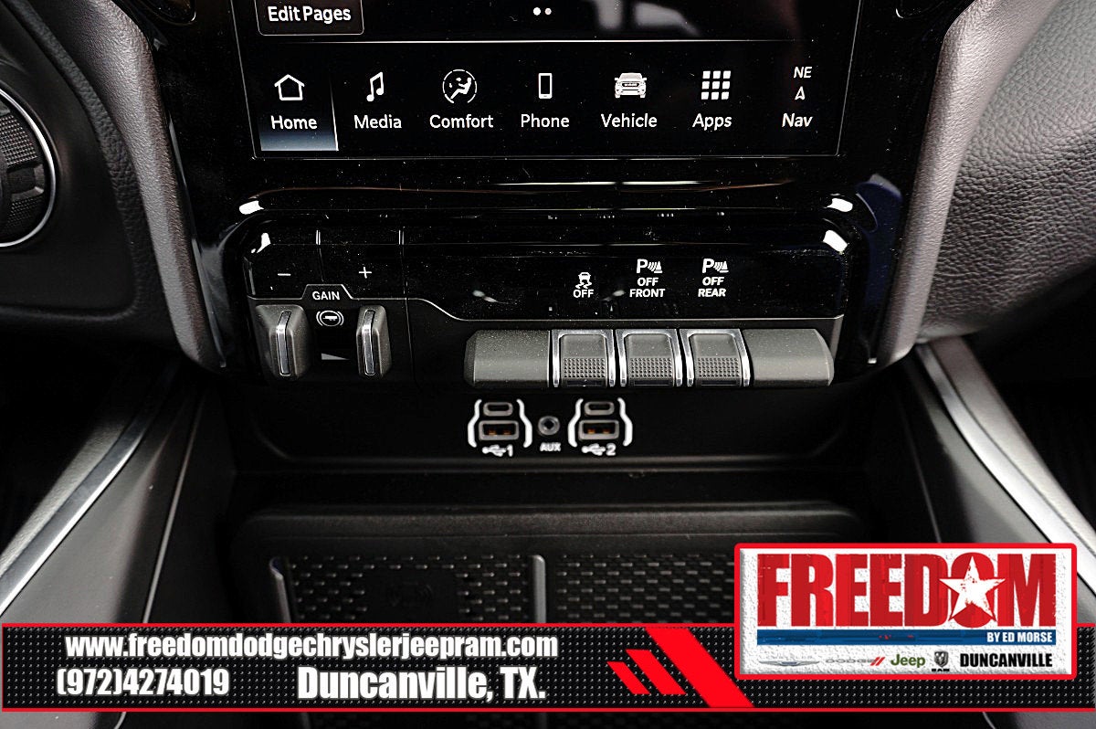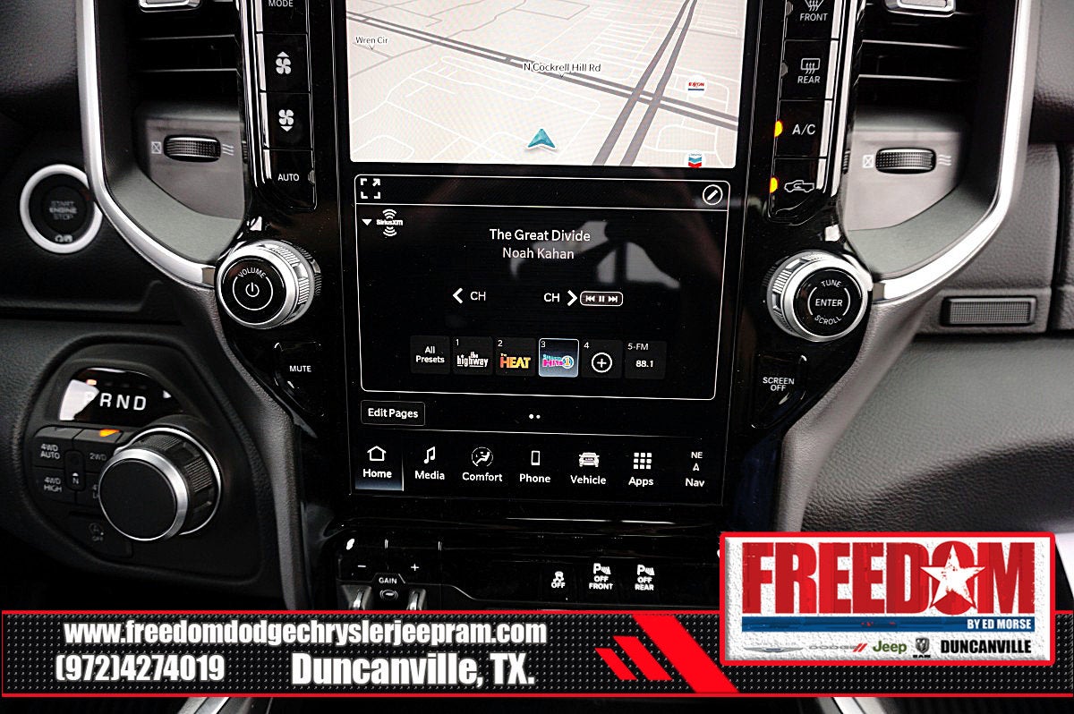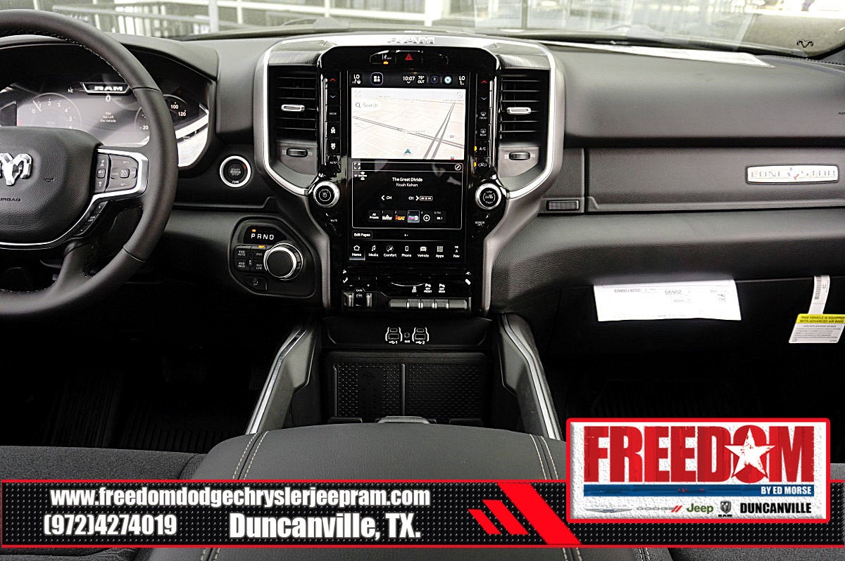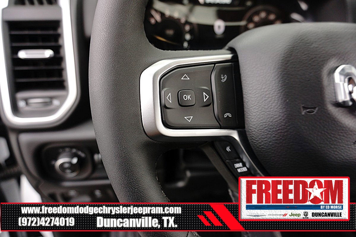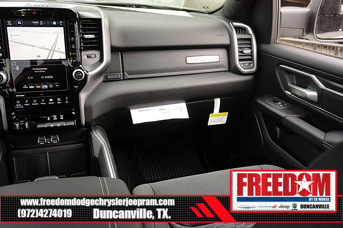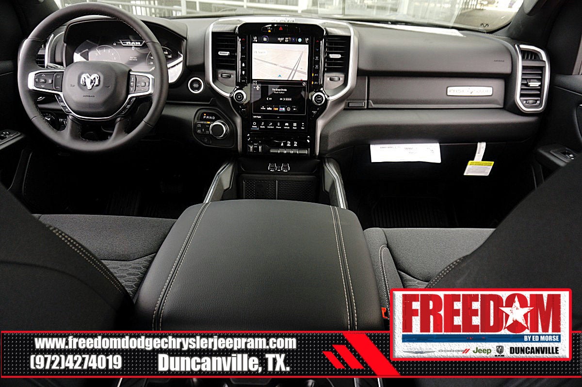 Big cash and no payments for 90 days! Our only Dealership add is GREAT CUSTOMER SERVICE. Real Deals, No Games and No Surprises. Price Includes only Rebates EVERYONE Qualifies for. We Make it Easy No Games. Equipped with Big Horn Level 2 Equipment Group (115V Auxiliary Power Outlet, 115V Auxiliary Rear Power Outlet, 12 Touchscreen Display, 2nd Row in Floor Storage Bins, 3 Rear Seat Head Restraints, 4 Way Front Headrests, 400W Inverter, 4G LTE Wi-Fi Hot Spot, 9 Amplified Speakers with Subwoofer, Air Conditioning ATC with Dual Zone Control, Apple CarPlay, Auto Power-Folding Mirrors, Auto-Dimming Exterior Driver Mirror, Auto-Dimming Rear-View Mirror, Black Exterior Mirrors, Black Premium Power Mirrors, Body Color Fender Flares, Bucket Seats, Center Console Parts Module, Cluster 7.0 TFT Color Display, Configurable Drive Mode, Connected Travel and Traffic Services, Connectivity - US/Canada, Convex Wide-Angle Exterior Mirror Insert, Deluxe Cloth Bucket Seats, Disassociated Touchscreen Display, Exterior Mirrors Courtesy Lamps, Exterior Mirrors with Heating Element, Exterior Mirrors with Supplemental Signals, Front Seat Back Map Pockets, Full Length Floor Console, Global Telematics Box Module, Glove Box Lamp, Google Android Auto, GPS Antenna Input, GPS Navigation, HD Radio, Heated Front Seats, Heated Steering Wheel, Integrated Center Stack Radio, Integrated Voice Command with Bluetooth®, Leather Wrapped Steering Wheel, LED Dome Lamp with on/Off Switch, LED Footwell Lighting, Manual Adjust 4-Way Front Passenger Seat, Media Hub with 2 Charge Only USBs, Overhead LED Lamps, Power 2-Way Driver Lumbar Adjust, Power Adjust 8-Way Driver Seat, Power Adjustable Pedals, Premium Overhead Console, Radio: Uconnect 5 Navigation with 12.0 Display, Rear 60/40 Folding Seat, Rear Center Armrest, Rear Power Sliding Window, Rear Window Defroster, Remote Tailgate Release, Security Alarm, SiriusXM Radio Service, SiriusXM with 360L, Steering Wheel Mounted Audio Controls, Sun Visors with Illuminated Vanity Mirrors, Universal Garage Door Opener, and USB Host Flip), Night Edition (Accent Color Door Handles, Accent Color Premium Power Mirrors, Accent Color Tailgate Handle, Anti-Spin Differential Rear Axle, Black Exterior Truck Badging, Black Headlamp Bezels, Black Interior Accents, Black Painted Exterior Mirrors Caps, Black Tail Lamp Bezels, Body Color Front Bumper, Body Color Rear Bumper with Step Pads, Dual Exhaust with Black Tips, Grille Black Surround Black Mesh, RAM Grille Badge - Black, and Wheels: 20 x 9.0 Aluminum Painted Clad), Quick Order Package 21R Lone Star (Lone Star Badge), 4-Wheel Disc Brakes, 48V Belt Starter Generator, 6 Speakers, ABS brakes, Air Conditioning, Alloy wheels, AM/FM radio, Apple CarPlay/Android Auto, Auto High-beam Headlights, Brake assist, Bumpers: chrome, Cloth Bucket Seats, Cluster 12 TFT Color Display, Compass, Delay-off headlights, Driver door bin, Dual front impact airbags, Dual front side impact airbags, Electronic Stability Control, Front anti-roll bar, Front Bucket Seats, Front Center Armrest w/Storage, Front fog lights, Front License Plate Bracket, Front reading lights, Front wheel independent suspension, Fully automatic headlights, Heated door mirrors, Illuminated entry, Low tire pressure warning, Manual Adjust 4-Way Driver Seat, Manual Folding Exterior Mirrors, Manufacturer's Statement of Origin, Mopar Black Tubular Side Steps, MOPAR Front and Rear Rubber Floor Mats, Occupant sensing airbag, Outside temperature display, Overhead airbag, Overhead console, Panic alarm, ParkView Rear Back-Up Camera, Passenger door bin, Passenger vanity mirror, Power door mirrors, Powe Price includes: $1000 - 2026 Southwest BC State of Texas Regional Bonus Cash . Exp. 04/30/2026 $3500 - 2026 National Retail Bonus Cash . Exp. 04/30/2026 $500 - 2026 National 2026 Military Bonus Cash . Exp. 01/04/2027 $750 - 2026 Southwest BC Retail Bonus Cash . Exp. 04/3