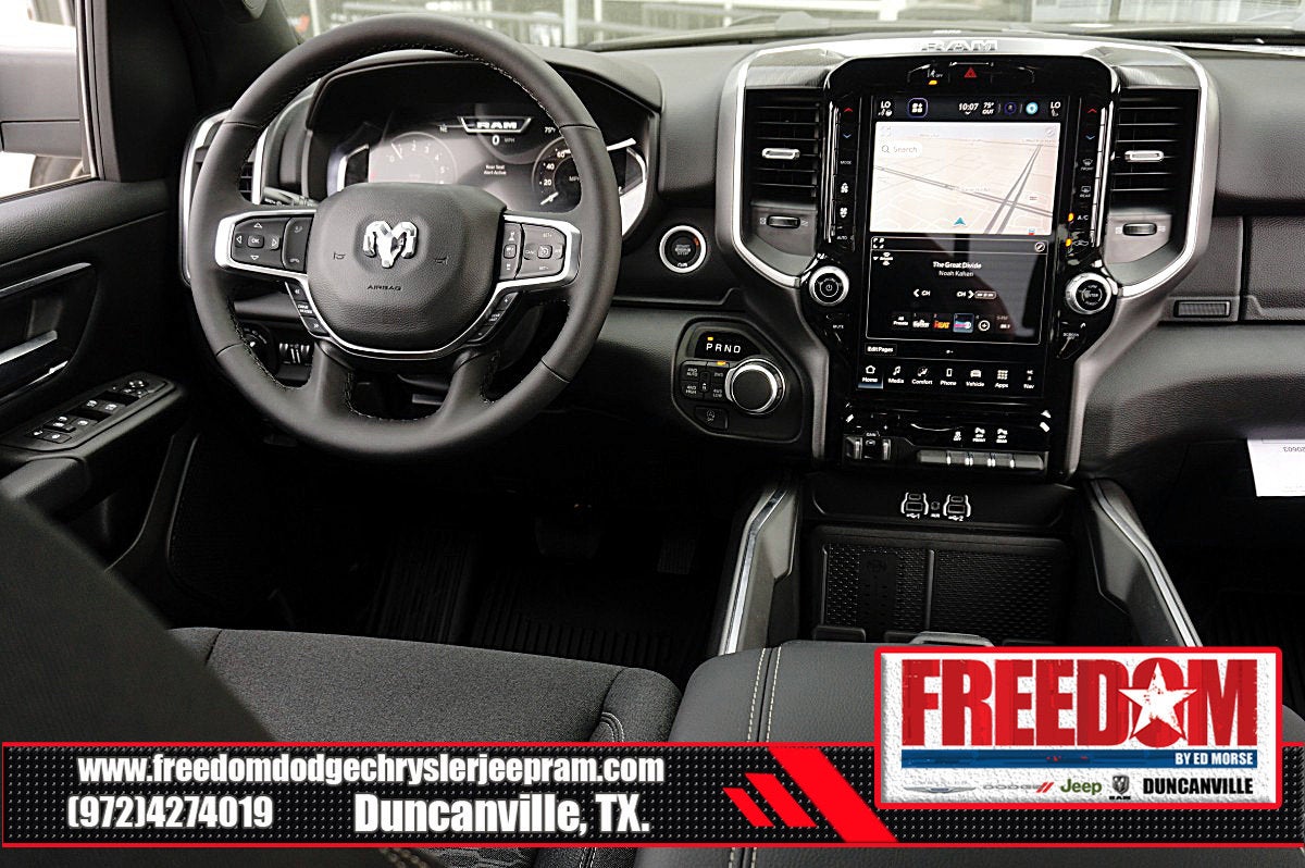 Big cash and no payments for 90 days! Our only Dealership add is GREAT CUSTOMER SERVICE. Real Deals, No Games and No Surprises. Price Includes only Rebates EVERYONE Qualifies for. We Make it Easy No Games. Equipped with Big Horn Level 2 Equipment Group (115V Auxiliary Power Outlet, 115V Auxiliary Rear Power Outlet, 12 Touchscreen Display, 2nd Row in Floor Storage Bins, 3 Rear Seat Head Restraints, 4 Way Front Headrests, 400W Inverter, 4G LTE Wi-Fi Hot Spot, 9 Amplified Speakers with Subwoofer, Air Conditioning ATC with Dual Zone Control, Apple CarPlay, Auto Power-Folding Mirrors, Auto-Dimming Exterior Driver Mirror, Auto-Dimming Rear-View Mirror, Black Exterior Mirrors, Black Premium Power Mirrors, Body Color Fender Flares, Bucket Seats, Center Console Parts Module, Cluster 7.0 TFT Color Display, Configurable Drive Mode, Connected Travel and Traffic Services, Connectivity - US/Canada, Convex Wide-Angle Exterior Mirror Insert, Deluxe Cloth Bucket Seats, Disassociated Touchscreen Display, Exterior Mirrors Courtesy Lamps, Exterior Mirrors with Heating Element, Exterior Mirrors with Supplemental Signals, Front Seat Back Map Pockets, Full Length Floor Console, Global Telematics Box Module, Glove Box Lamp, Google Android Auto, GPS Antenna Input, GPS Navigation, HD Radio, Heated Front Seats, Heated Steering Wheel, Integrated Center Stack Radio, Integrated Voice Command with Bluetooth®, Leather Wrapped Steering Wheel, LED Dome Lamp with on/Off Switch, LED Footwell Lighting, Manual Adjust 4-Way Front Passenger Seat, Media Hub with 2 Charge Only USBs, Overhead LED Lamps, Power 2-Way Driver Lumbar Adjust, Power Adjust 8-Way Driver Seat, Power Adjustable Pedals, Premium Overhead Console, Radio: Uconnect 5 Navigation with 12.0 Display, Rear 60/40 Folding Seat, Rear Center Armrest, Rear Power Sliding Window, Rear Window Defroster, Remote Tailgate Release, Security Alarm, SiriusXM Radio Service, SiriusXM with 360L, Steering Wheel Mounted Audio Controls, Sun Visors with Illuminated Vanity Mirrors, Universal Garage Door Opener, and USB Host Flip), Night Edition (Accent Color Door Handles, Accent Color Premium Power Mirrors, Accent Color Tailgate Handle, Anti-Spin Differential Rear Axle, Black Exterior Truck Badging, Black Headlamp Bezels, Black Interior Accents, Black Painted Exterior Mirrors Caps, Black Tail Lamp Bezels, Body Color Front Bumper, Body Color Rear Bumper with Step Pads, Dual Exhaust with Black Tips, Grille Black Surround Black Mesh, RAM Grille Badge - Black, and Wheels: 20 x 9.0 Aluminum Painted Clad), Quick Order Package 21R Lone Star (Lone Star Badge), 4-Wheel Disc Brakes, 48V Belt Starter Generator, 6 Speakers, ABS brakes, Air Conditioning, Alloy wheels, AM/FM radio, Apple CarPlay/Android Auto, Auto High-beam Headlights, Brake assist, Bumpers: chrome, Cloth Bucket Seats, Cluster 12 TFT Color Display, Compass, Delay-off headlights, Driver door bin, Dual front impact airbags, Dual front side impact airbags, Electronic Stability Control, Front anti-roll bar, Front Bucket Seats, Front Center Armrest w/Storage, Front fog lights, Front License Plate Bracket, Front reading lights, Front wheel independent suspension, Fully automatic headlights, Heated door mirrors, Illuminated entry, Low tire pressure warning, Manual Adjust 4-Way Driver Seat, Manual Folding Exterior Mirrors, Manufacturer's Statement of Origin, Mopar Black Tubular Side Steps, MOPAR Front and Rear Rubber Floor Mats, Occupant sensing airbag, Outside temperature display, Overhead airbag, Overhead console, Panic alarm, ParkView Rear Back-Up Camera, Passenger door bin, Passenger vanity mirror, Power door mirrors, P Price includes: $1000 - 2026 Southwest BC State of Texas Regional Bonus Cash . Exp. 03/31/2026 $3500 - 2026 National Retail Consumer Cash . Exp. 03/31/2026 $500 - 2026 National 2026 Military Bonus Cash . Exp. 01/04/2027 $750 - 2026 Southwest BC Retail Bonus Cash . Exp. 03/3