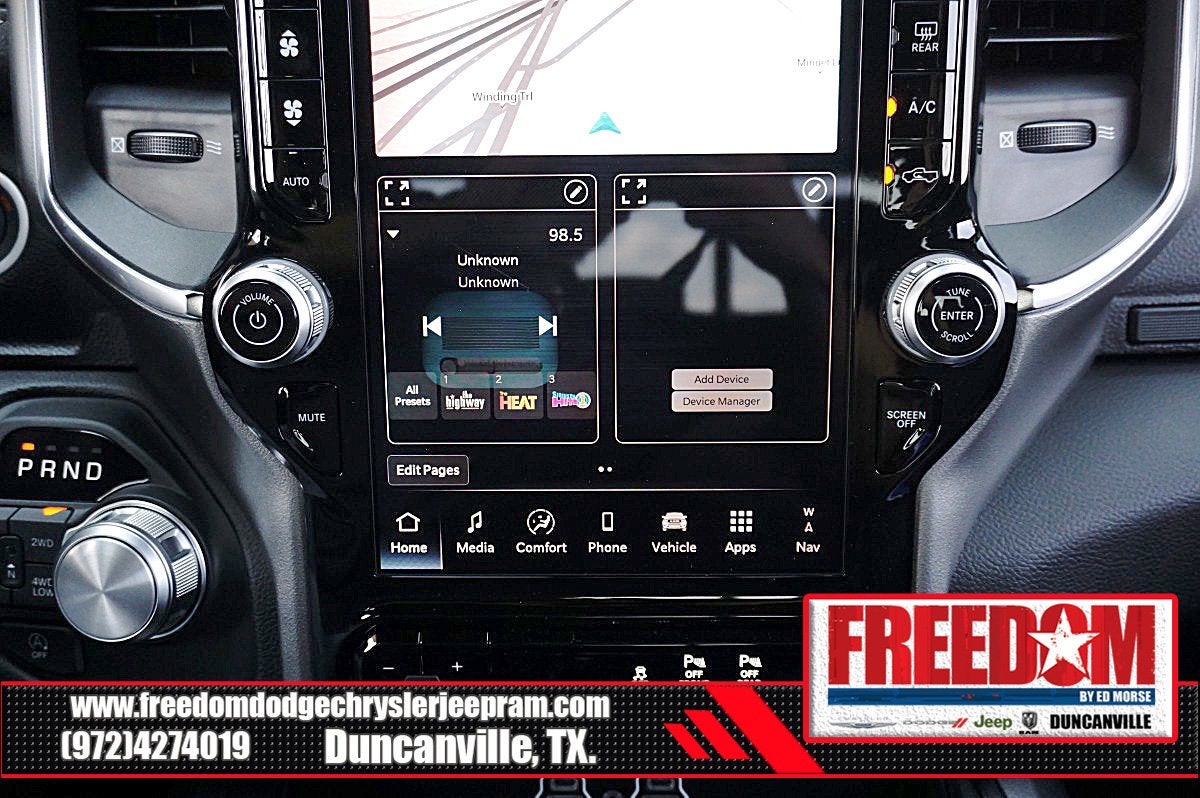Big cash and no payments for 90 days! Our only Dealership add is GREAT CUSTOMER SERVICE. Real Deals, No Games and No Surprises. Price Includes only Rebates EVERYONE Qualifies for. We Make it Easy No Games. Equipped with Laramie Level 1 Equipment Group (Rain Sensitive Windshield Wipers and Remote Tailgate Release), Laramie Southwest Edition (Accent Color Premium Power Mirrors, Auto Power-Folding Mirrors, Auto-Dimming Exterior Driver Mirror, Black Painted Exterior Mirrors Caps, Body Color Front Bumper, Body Color Rear Bumper with Step Pads, Convex Wide-Angle Exterior Mirror Insert, Dome Dual LED Reading Lamp, Dual-Pane Panoramic Sunroof, Exterior Mirrors Courtesy Lamps, Exterior Mirrors with Heating Element, Exterior Mirrors with Memory, Exterior Mirrors with Supplemental Signals, Grille Surround 3 Body Color Tex 4 Chrome, LED Dome/Reading Lamp, MOPAR Lockable Console Storage, Power Deployable Running Boards, RAM Grille Badge - Chrome, Tow Hooks, and Trailer Brake Control), Quick Order Package 21H Laramie, 10 Speakers, 3.55 Rear Axle Ratio, 33 Gallon Fuel Tank, 4-Wheel Disc Brakes, 4G LTE Wi-Fi Hot Spot, ABS brakes, Active Noise Control System, Air Conditioning, Alloy wheels, AM/FM radio: SiriusXM with 360L, Anti-Spin Differential Rear Axle, Apple CarPlay/Android Auto, Audio memory, Auto High-beam Headlights, Auto-dimming door mirrors, Auto-dimming Rear-View mirror, Automatic temperature control, Brake assist, Bumpers: chrome, Chrome Exterior Mirrors, Compass, Connected Travel and Traffic Services, Connectivity - US/Canada, Delay-off headlights, Driver door bin, Driver vanity mirror, Dual front impact airbags, Dual front side impact airbags, Electronic Stability Control, Front anti-roll bar, Front Bucket Seats, Front Center Armrest w/Storage, Front dual zone A/C, Front fog lights, Front License Plate Bracket, Front reading lights, Front wheel independent suspension, Fully automatic headlights, Garage door transmitter, GPS Navigation, Heated door mirrors, Heated front seats, Heated rear seats, Heated steering wheel, Illuminated entry, Integrated Center Stack Radio, Integrated Voice Command with Bluetooth®, Leather steering wheel, Leather Trimmed Bucket Seats, Low tire pressure warning, Memory seat, Navigation System, Occupant sensing airbag, Off-Road Information Pages, Outside temperature display, Overhead airbag, Overhead console, Panic alarm, ParkView Rear Back-Up Camera, Passenger door bin, Passenger vanity mirror, Power door mirrors, Power driver seat, Power passenger seat, Power steering, Power windows, Radio data system, Radio: Uconnect 5 Navigation with 12.0 Display, Rear anti-roll bar, Rear reading lights, Rear seat center armrest, Rear step bumper, Remote keyless entry, Security system, SiriusXM Radio Service, SiriusXM with 360L, Speed control, Split folding rear seat, Steering wheel mounted audio controls, Tachometer, Telescoping steering wheel, Tilt steering wheel, Traction control, Trip computer, Turn signal indicator mirrors, USB Host Flip, Variably intermittent wipers, Ventilated front seats, Voltmeter, and Wheels: 20 x 9 Premium Paint/Polish Freedom uses very reasonable effort to ensure the accuracy of information, we are not responsible for any errors or omissions contained on these pages. Please verify any information in question with Freedom Chrysler Dodge Jeep Ram * Images, prices, and options shown, including vehicle color, trim, options, pricing and other specifications are subject to availability, incentive offerings, current pricing and credit worthiness. * MSRP is the Manufacturer's Suggested Retail Price (MSRP) of the vehicle. It does not include any taxes, fees or other charges. Pricing and availability may vary based on a variety of factors, including options, dealer, specials, fees, and financing qualifications. Consult your dealer for actual pri Price includes: $3500 - 2026 National Retail Consumer Cash . Exp. 02/0