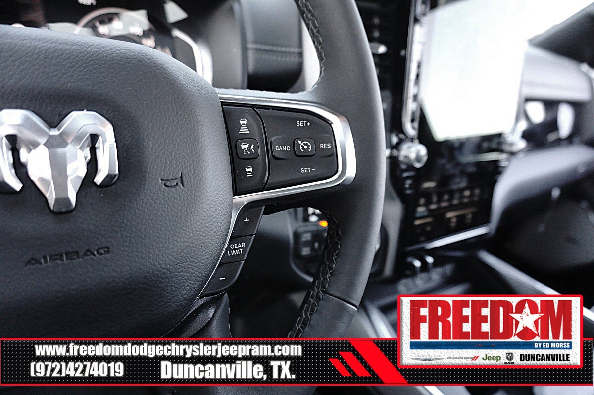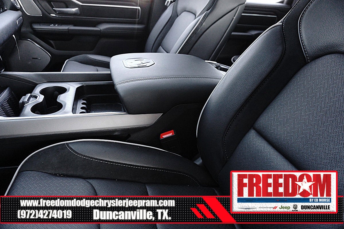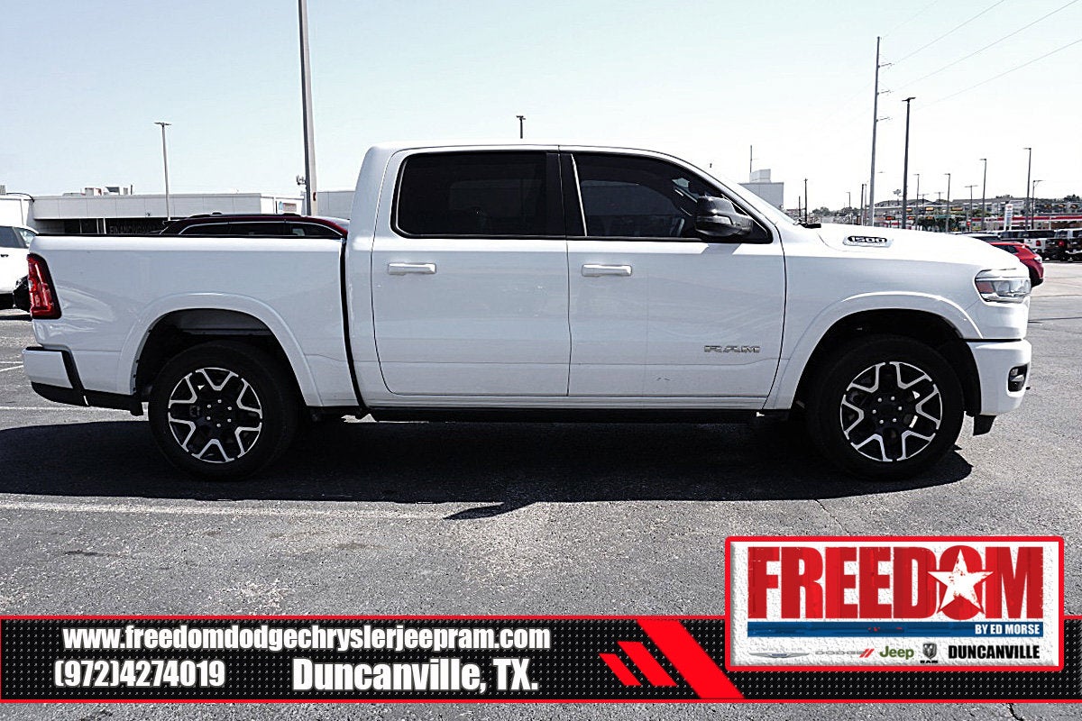 Big cash and no payments for 90 days! Our only Dealership add is GREAT CUSTOMER SERVICE. Real Deals, No Games and No Surprises. Price Includes only Rebates EVERYONE Qualifies for. We Make it Easy No Games. Equipped with Laramie Level 2 Equipment Group (14.4 Touchscreen Display, 4G LTE Wi-Fi Hot Spot, Cluster 12 TFT Color Display, Connected Travel and Traffic Services, Connectivity - US/Canada, Front Passenger Interactive Display, GPS Navigation, Harman/Kardon 19 Speaker Premium Sound, Integrated Center Stack Radio, Integrated Voice Command with Bluetooth®, Power Tailgate, Radio: Uconnect 5 Nav with 14.4 Display, Rain Sensitive Windshield Wipers, SiriusXM Radio Service, SiriusXM with 360L, and USB Host Flip), Laramie Southwest Edition (Accent Color Premium Power Mirrors, Auto Power-Folding Mirrors, Auto-Dimming Exterior Driver Mirror, Black Painted Exterior Mirrors Caps, Body Color Front Bumper, Body Color Rear Bumper with Step Pads, Convex Wide-Angle Exterior Mirror Insert, Dome Dual LED Reading Lamp, Dual-Pane Panoramic Sunroof, Exterior Mirrors Courtesy Lamps, Exterior Mirrors with Heating Element, Exterior Mirrors with Memory, Exterior Mirrors with Supplemental Signals, Grille Surround 3 Body Color Tex 4 Chrome, LED Dome/Reading Lamp, MOPAR Lockable Console Storage, Power Deployable Running Boards, RAM Grille Badge - Chrome, Tow Hooks, and Trailer Brake Control), Quick Order Package 21H Laramie, 10 Speakers, 3.55 Rear Axle Ratio, 4-Wheel Disc Brakes, ABS brakes, Active Noise Control System, Air Conditioning, Alloy wheels, AM/FM radio: SiriusXM with 360L, Anti-Spin Differential Rear Axle, Apple CarPlay/Android Auto, Audio memory, Auto High-beam Headlights, Auto-dimming door mirrors, Auto-dimming Rear-View mirror, Automatic temperature control, Brake assist, Bumpers: chrome, Chrome Exterior Mirrors, Compass, Delay-off headlights, Driver door bin, Driver vanity mirror, Dual front impact airbags, Dual front side impact airbags, Electronic Stability Control, Front anti-roll bar, Front Bucket Seats, Front Center Armrest w/Storage, Front dual zone A/C, Front fog lights, Front License Plate Bracket, Front reading lights, Front wheel independent suspension, Fully automatic headlights, Garage door transmitter, Heated door mirrors, Heated front seats, Heated rear seats, Heated steering wheel, Illuminated entry, Leather steering wheel, Leather Trimmed Bucket Seats, Low tire pressure warning, Manufacturer's Statement of Origin, Memory seat, Navigation System, Occupant sensing airbag, Off-Road Information Pages, Outside temperature display, Overhead airbag, Overhead console, Panic alarm, ParkView Rear Back-Up Camera, Passenger door bin, Passenger vanity mirror, Power door mirrors, Power driver seat, Power passenger seat, Power steering, Power windows, Radio data system, Radio: Uconnect 5 Navigation with 12.0 Display, Rear anti-roll bar, Rear reading lights, Rear seat center armrest, Rear step bumper, Remote keyless entry, Security system, Speed control, Split folding rear seat, Steering wheel mounted audio controls, Tachometer, Telescoping steering wheel, Tilt steering wheel, Traction control, Trip computer, Turn signal indicator mirrors, Variably intermittent wipers, Ventilated front seats, Voltmeter, and Wheels: 20 x 9 Premium Paint/Polish Freedom uses very reasonable effort to ensure the accuracy of information, we are not responsible for any errors or omissions contained on these pages. Please verify any information in question with Freedom Chrysler Dodge Jeep Ram * Images, prices, and options shown, including vehicle color, trim, options, pricing and other specifications are subject to availability, incentive offerings, current pricing and credit worthiness. * MSRP is the Manufacturer's Suggested Retail Price (MSRP) of the vehicle. It does not include any taxes, fees or other charges. Price includes: $3500 - 2026 National Retail Consumer Cash . Exp. 02/0